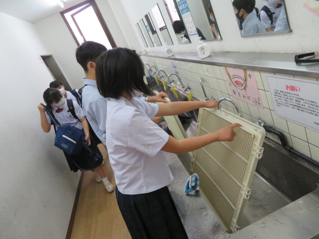 また、教室のエアコンのフィルターの清掃をしてくれている生徒もいました。ありがとうございます。