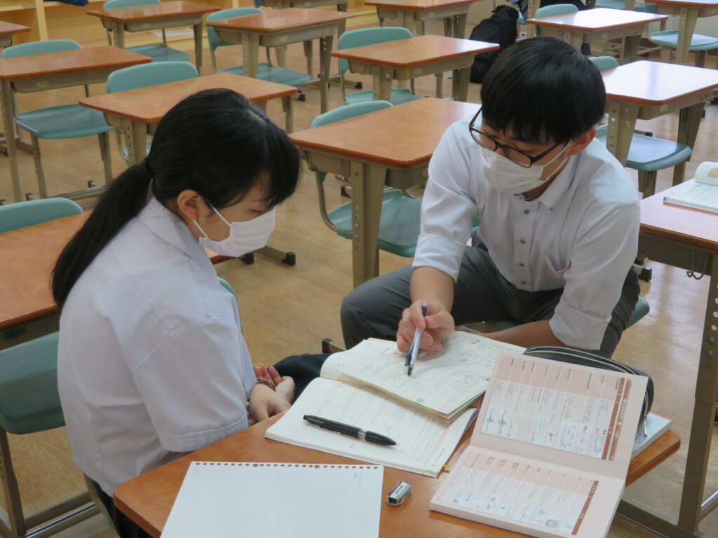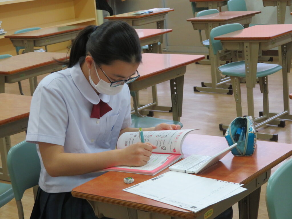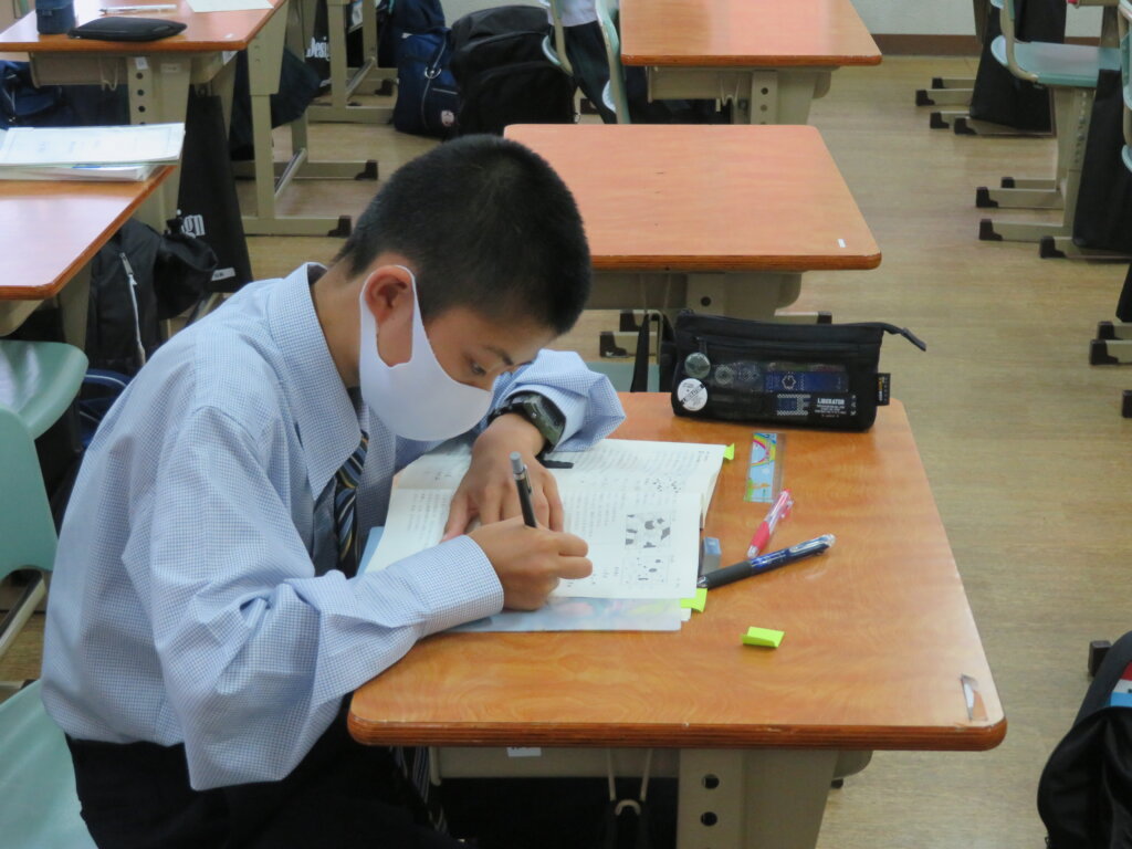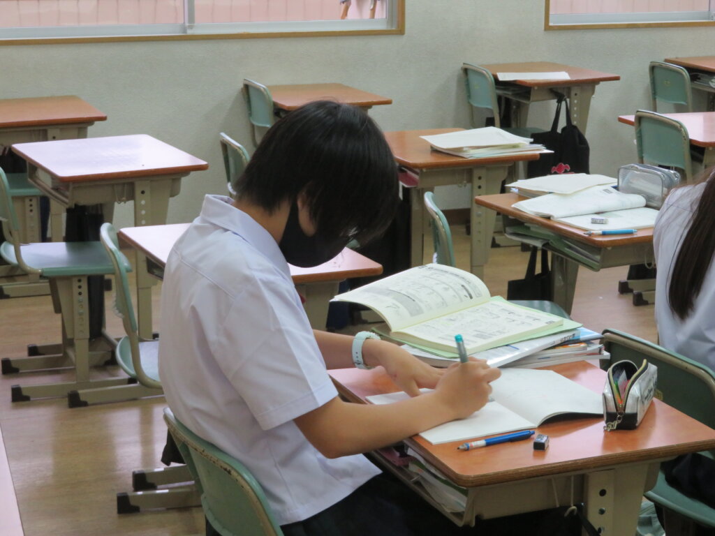 テスト前ということもあり、教室で黙々と学習していました。中高一貫の高校生も中学棟に質問しに来ていました。
