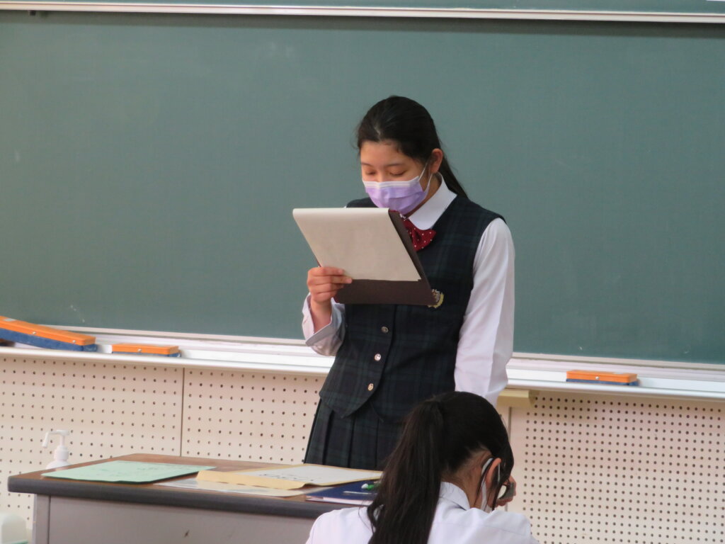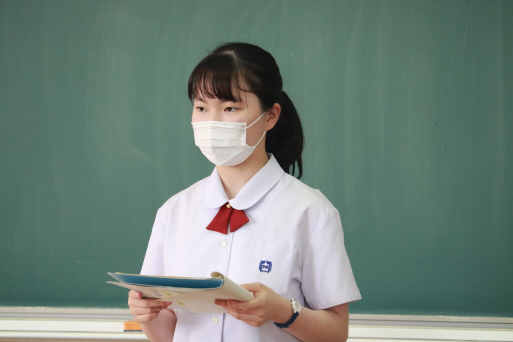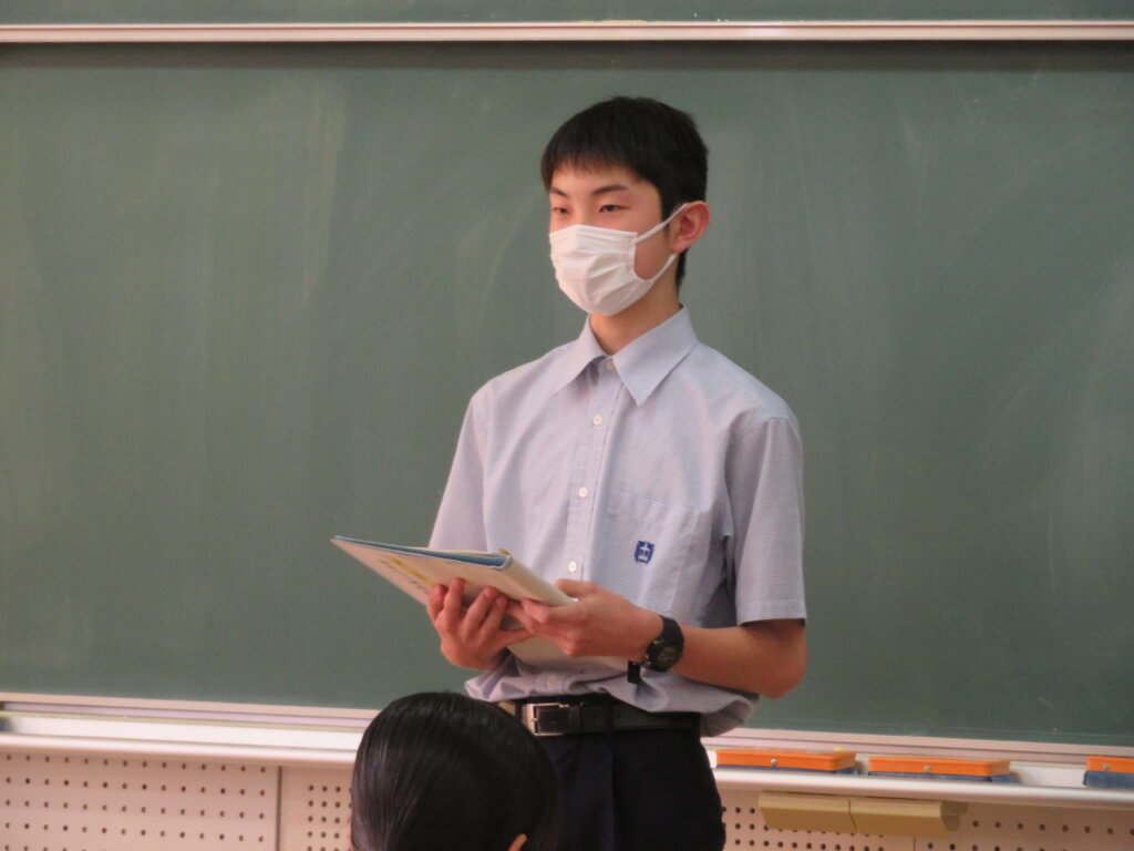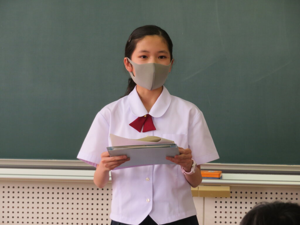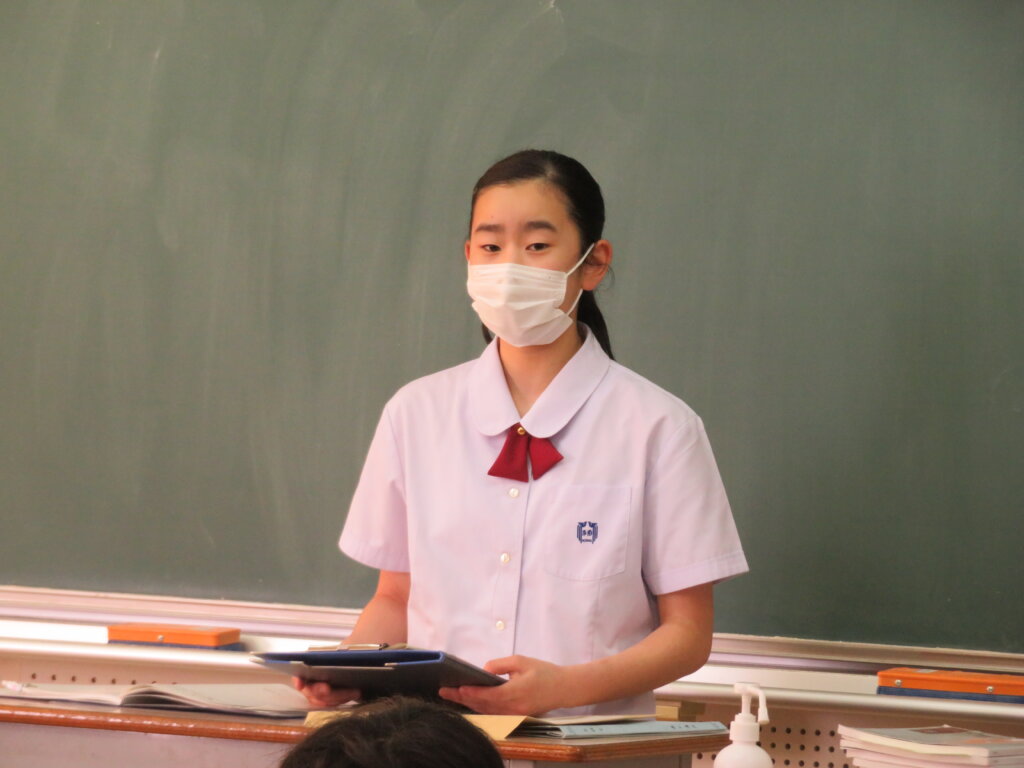 生徒会役員の皆さんが各学級で年間テーマを決定するにあたっての注意事項など説明をしてくれました。