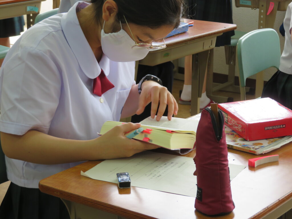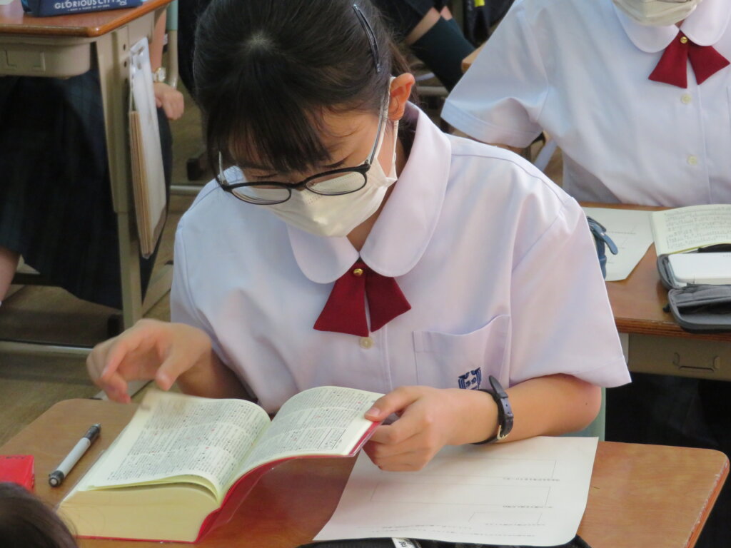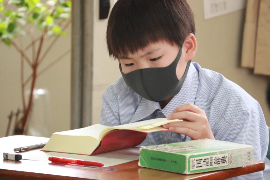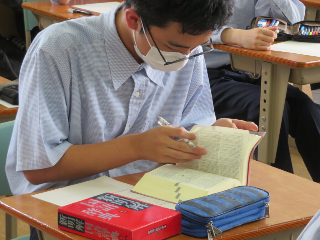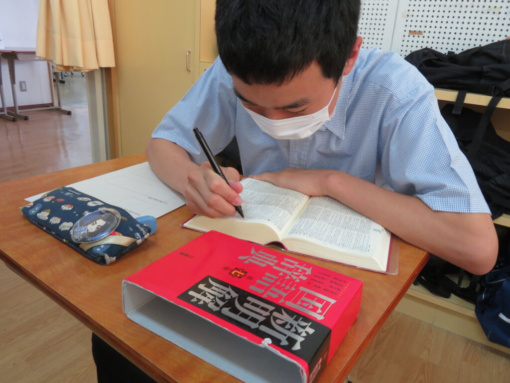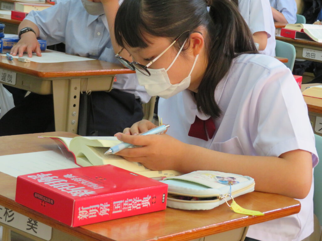 説明を聞いた後は各個人で国語辞典等を用いて年間テーマの漢字1字とスローガンを決めました。