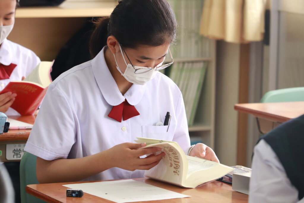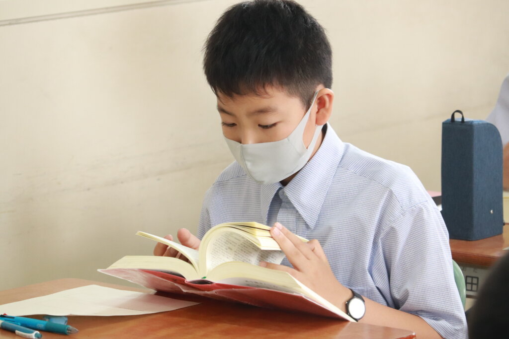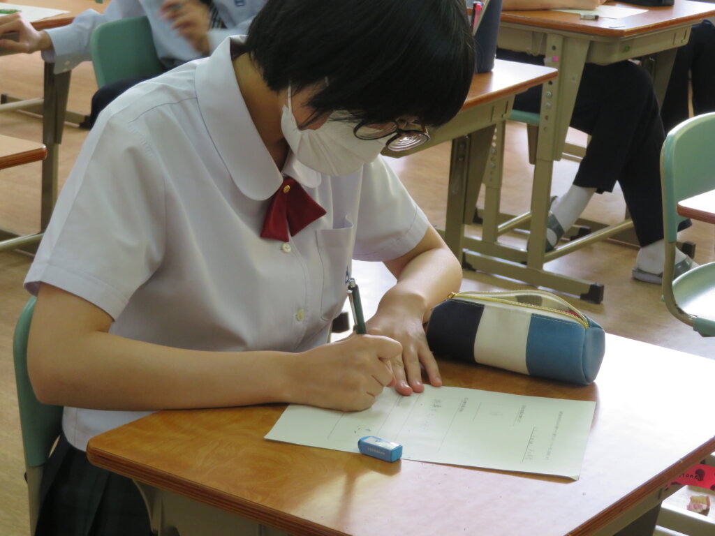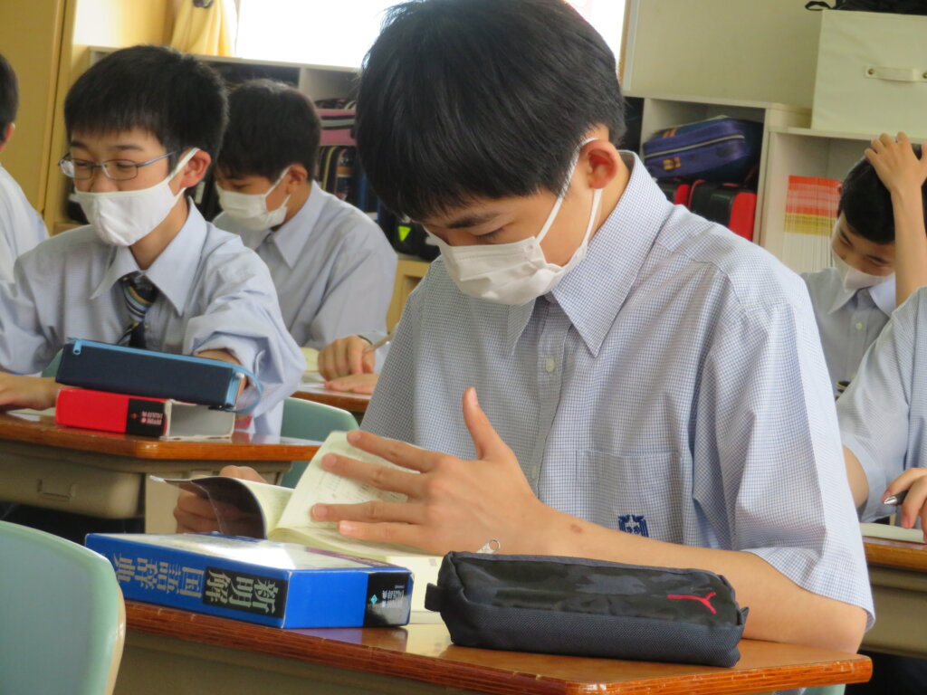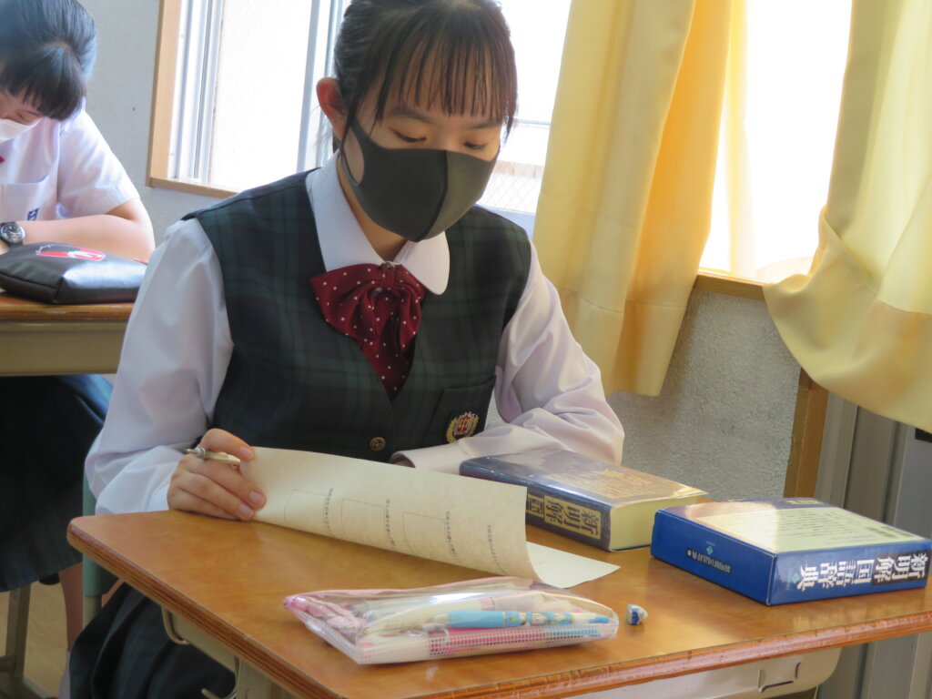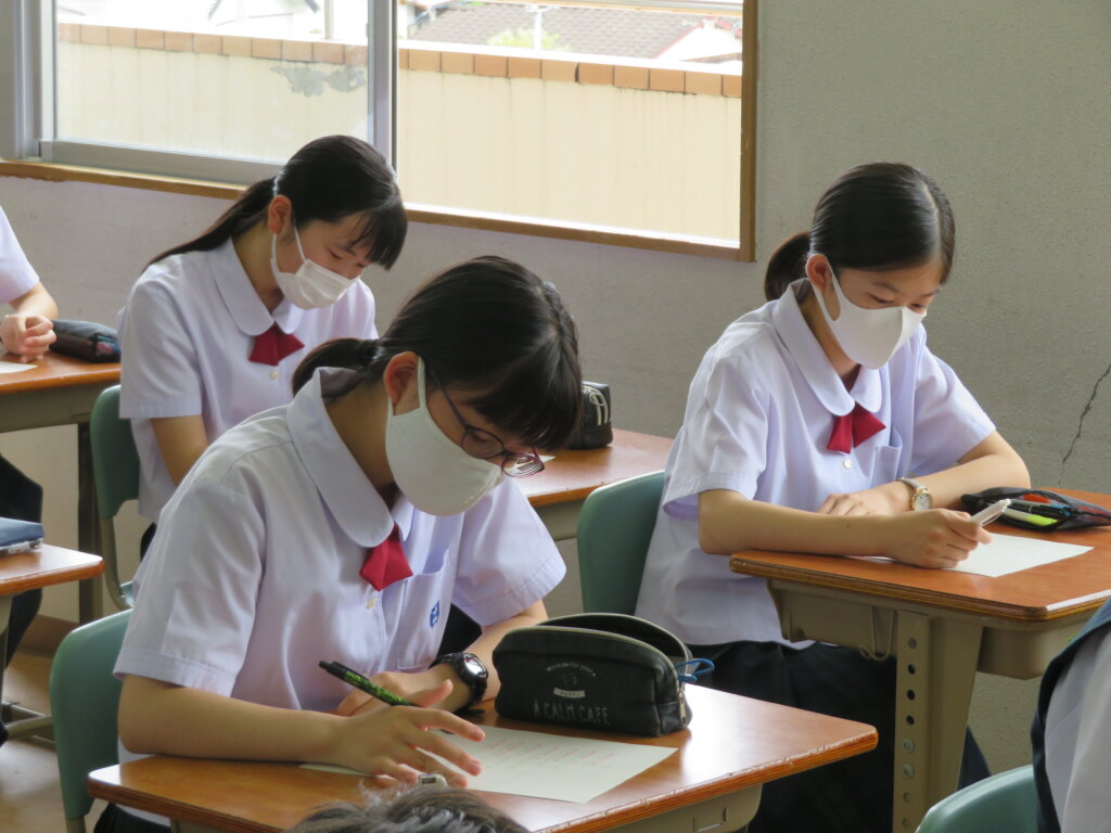 説明を聞いた後は各個人で国語辞典等を用いて年間テーマの漢字1字とスローガンを決めました。