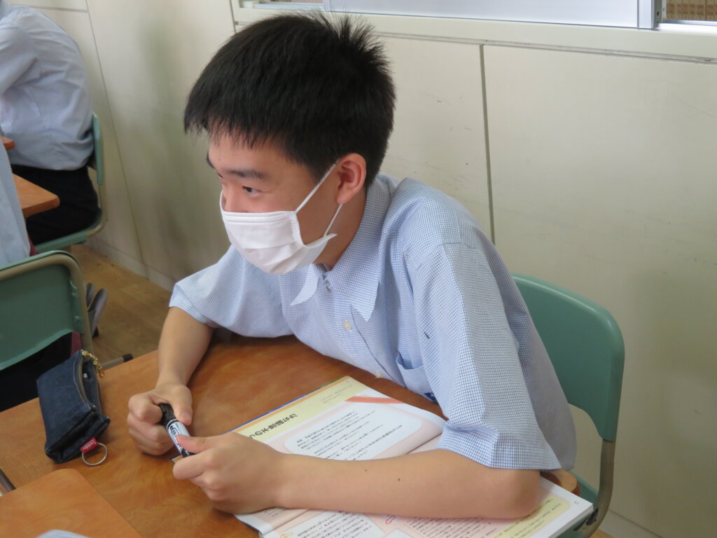 J3-Aは、「ありがとうの不思議な力」を題材に、ありがとうという言葉にどんな力があるのか意見を出し合っていました。