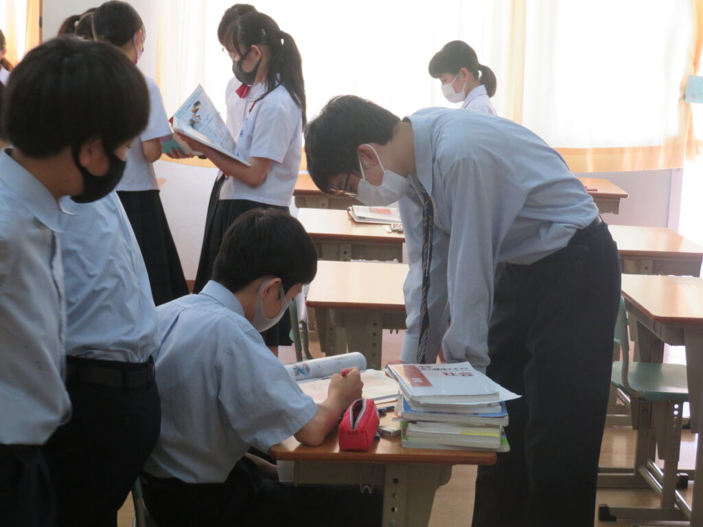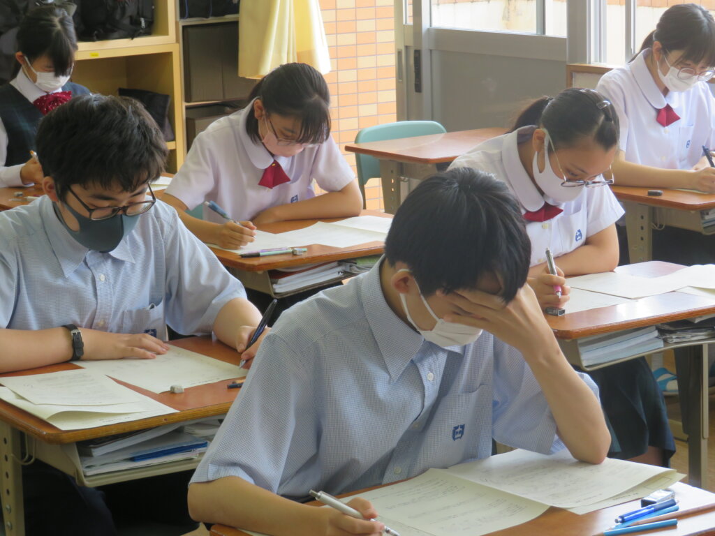 休み時間各教室を覗いてみると、友人と一緒に問題を確認し合ったり、自分でまとめたノートで最終確認をしたり、時間ぎりぎりまで学習する姿が見られました。