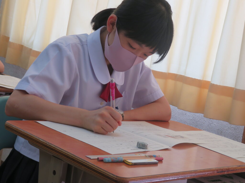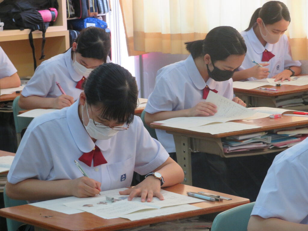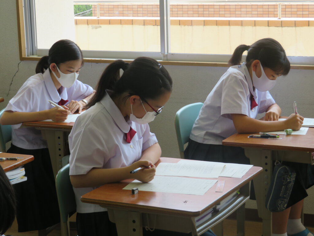 本日、第2回定期考査2日目です。J1・J2生は、美術・地歴・英G。J3生は、美術・公民・英Gが行われました。