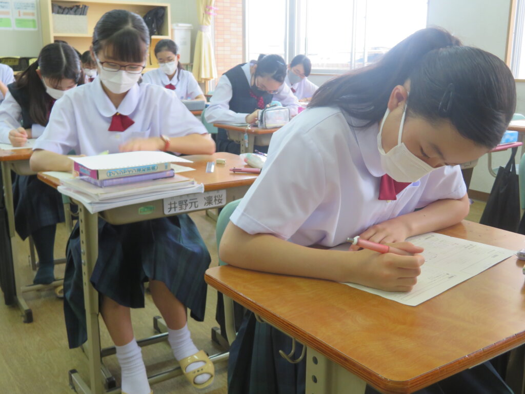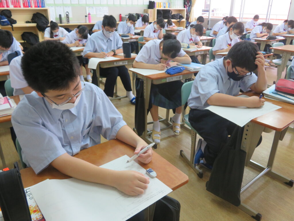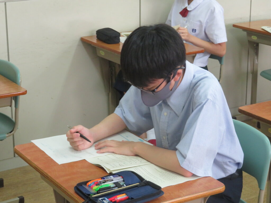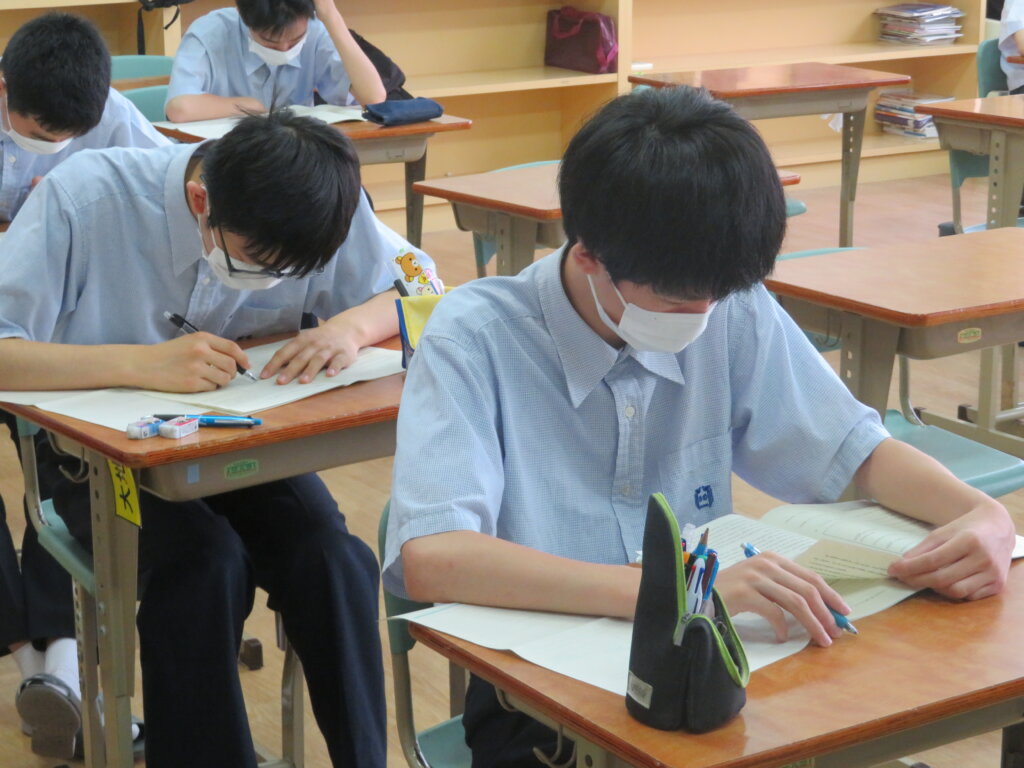 3年生は来月3日(土)に実施される進研模試の過去問題を解いていました。初めて受ける高1模試に