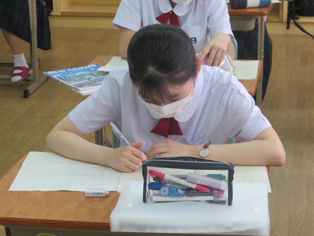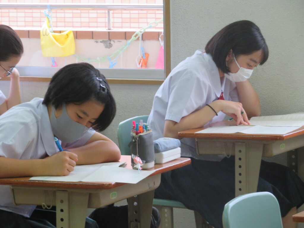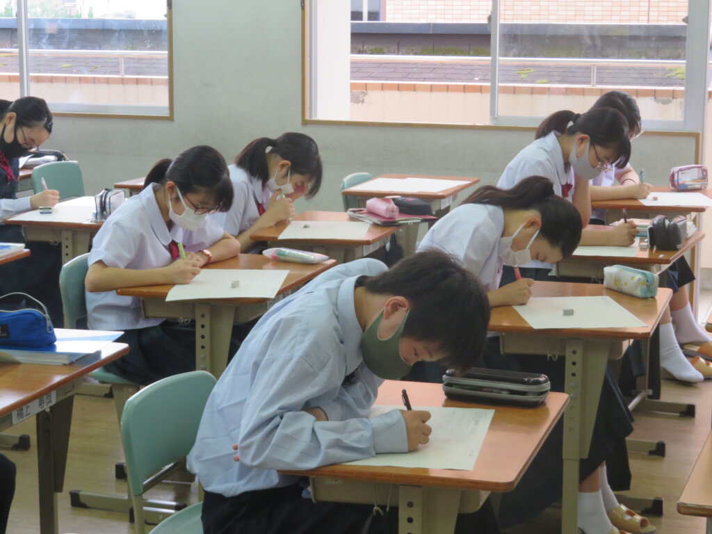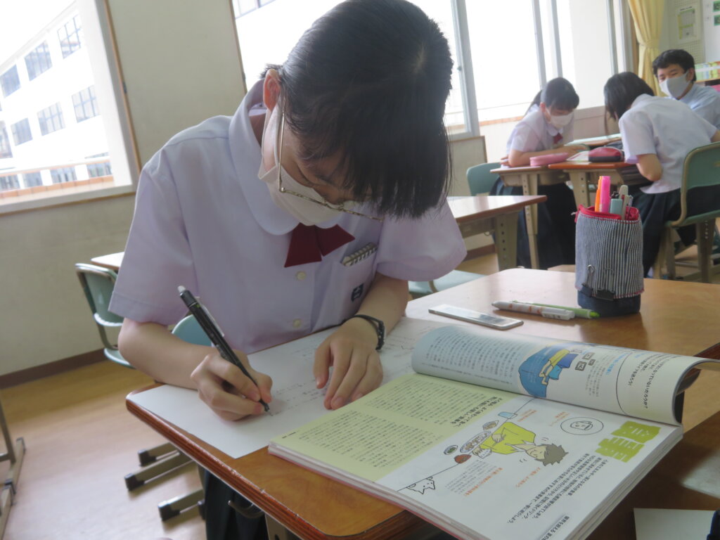3年生は来月3日(土)に実施される進研模試の過去問題を解いていました。初めて受ける高1模試に