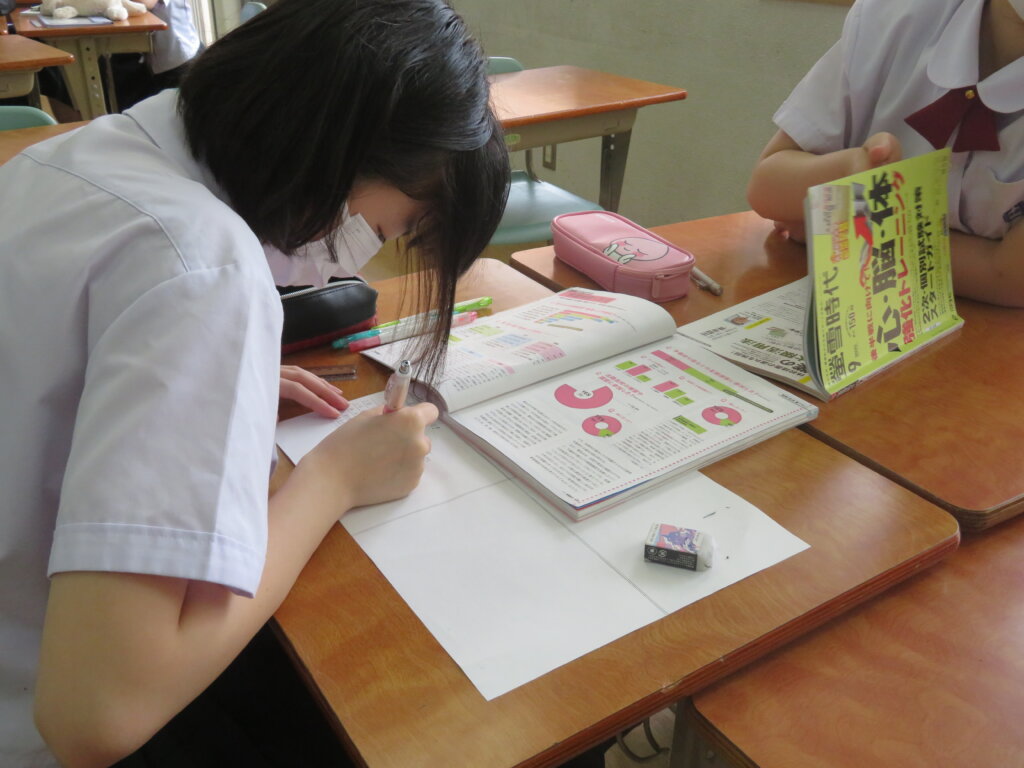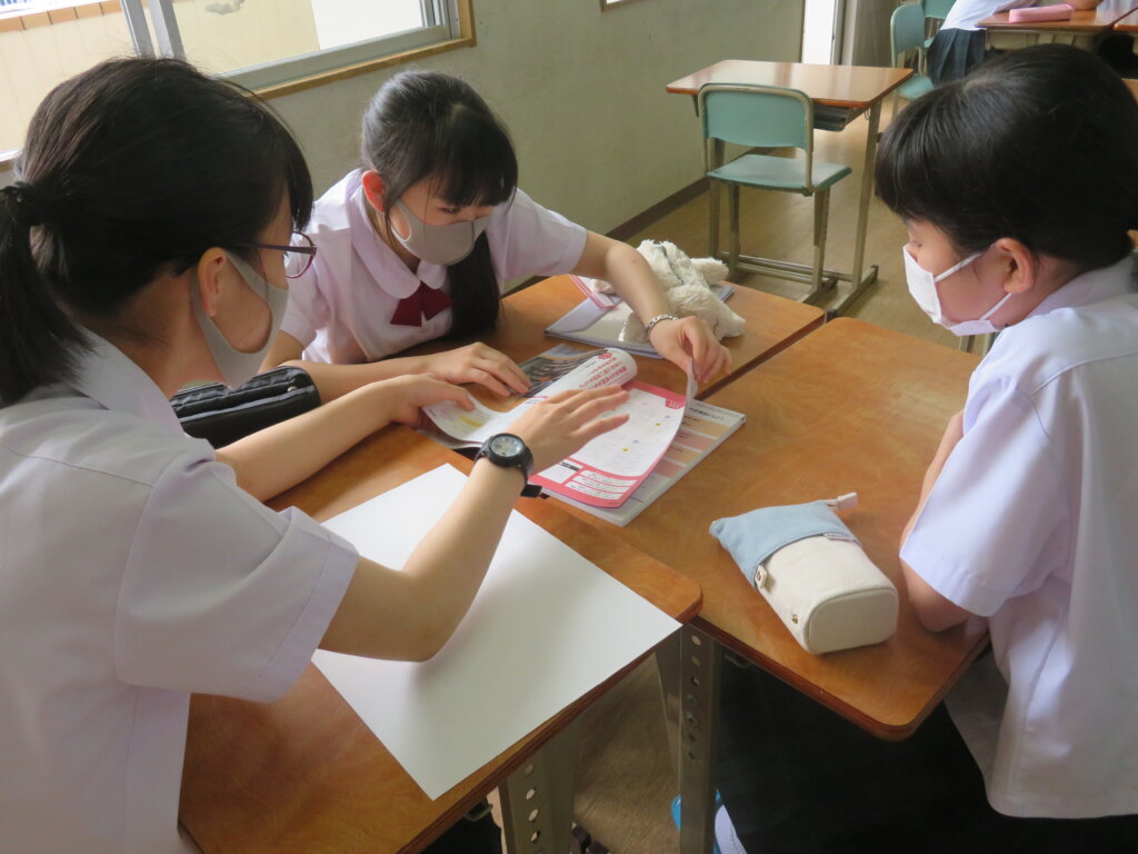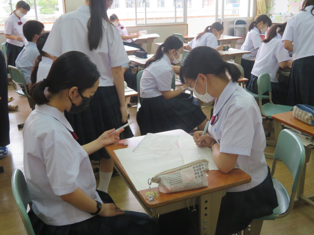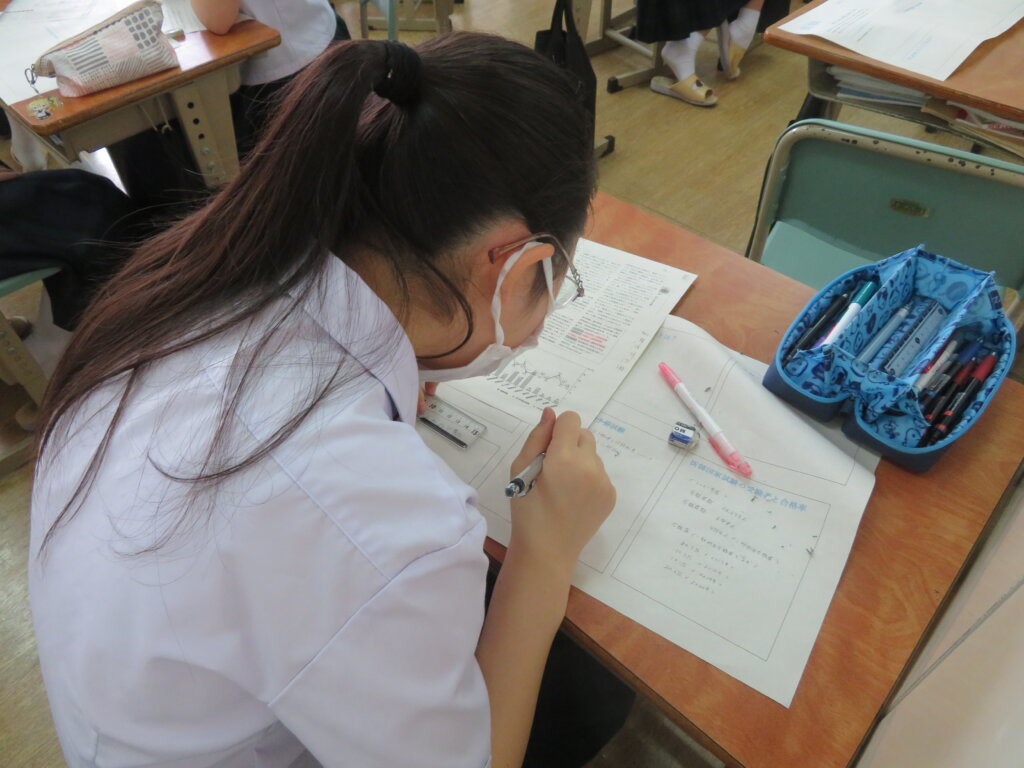 総合学習の時間では、各クラスで職業調べや進路学習を行っていました。