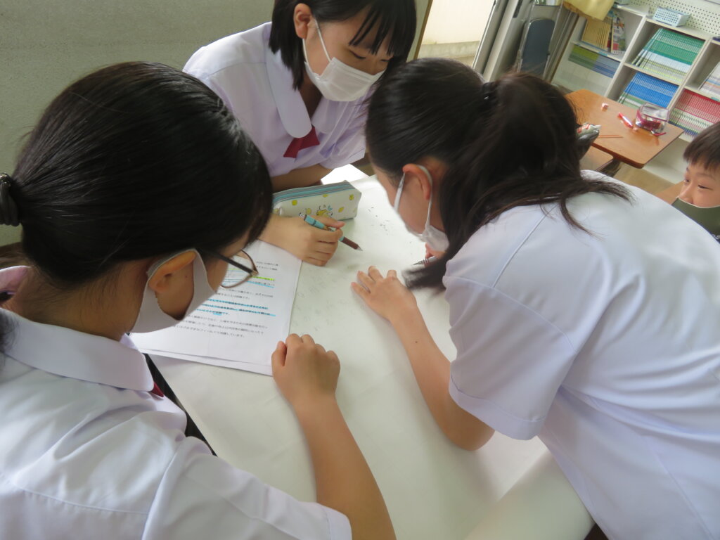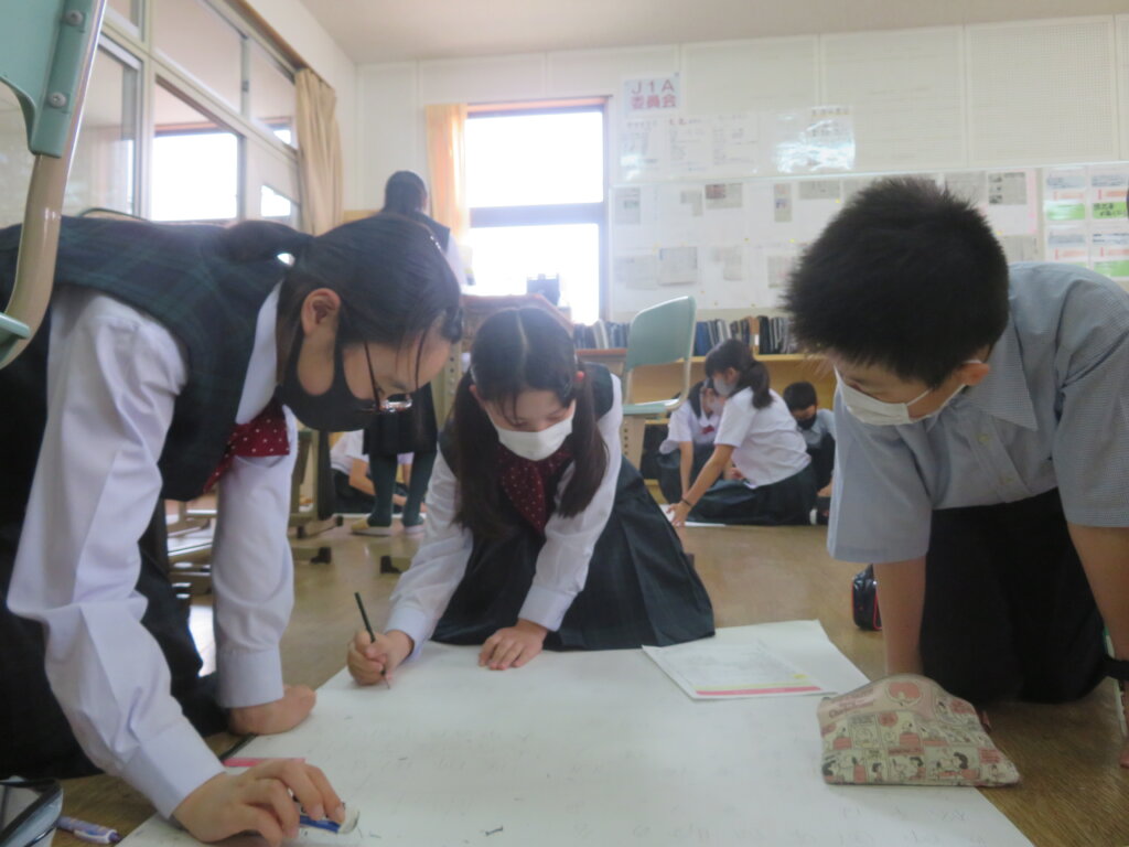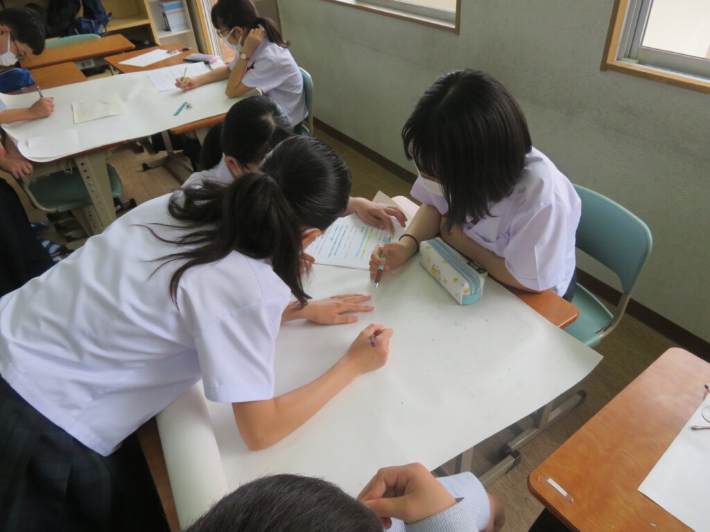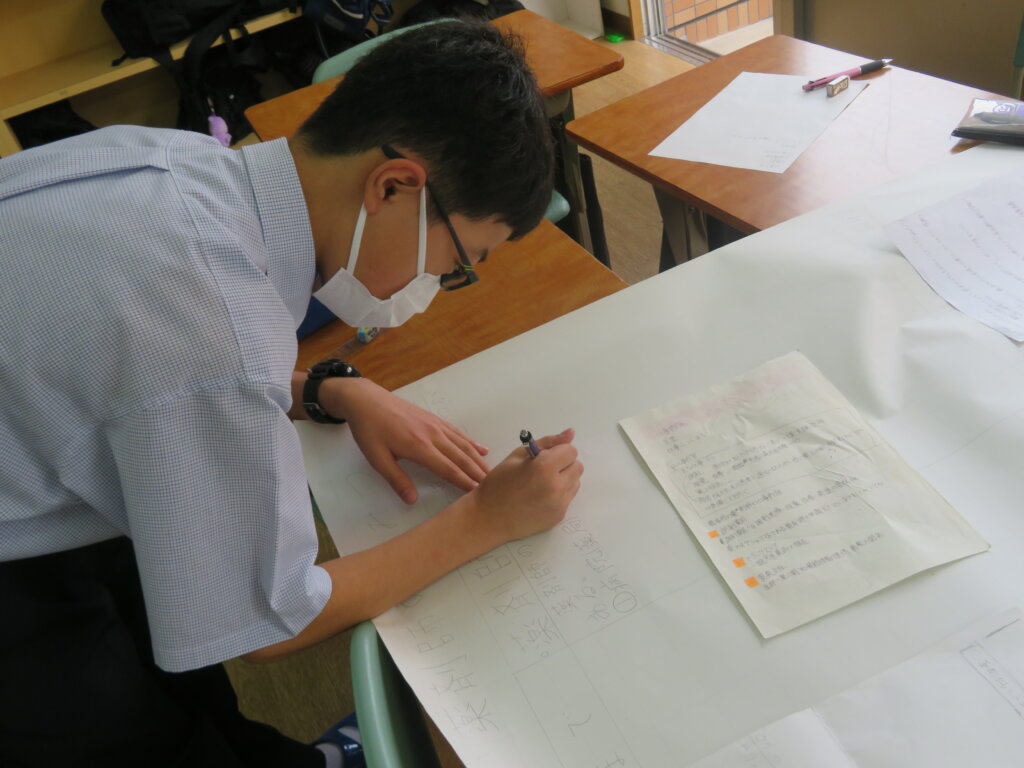 総合学習の時間では、各クラスで職業調べや進路学習を行っていました。
