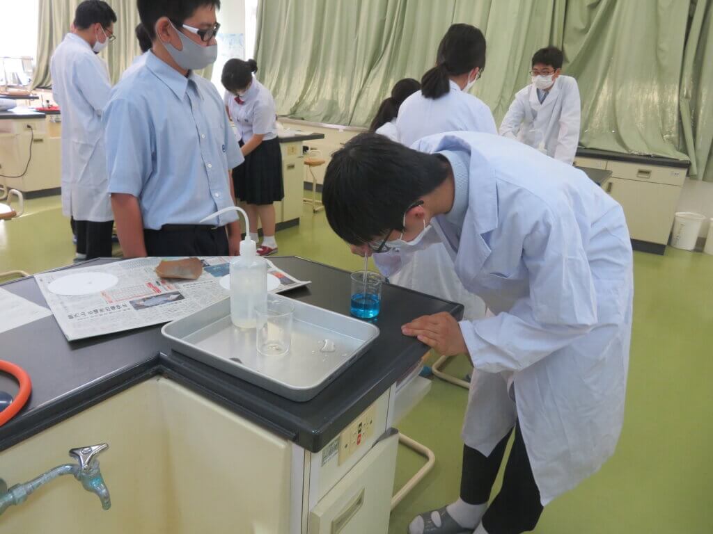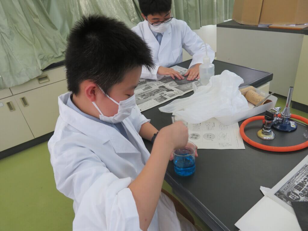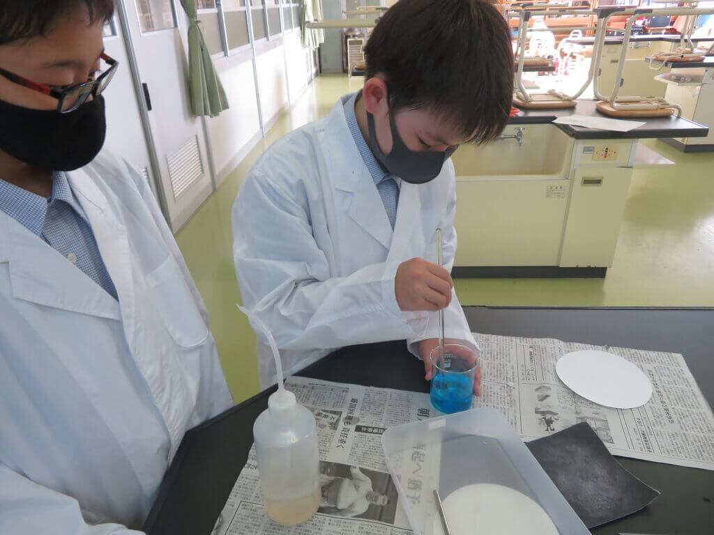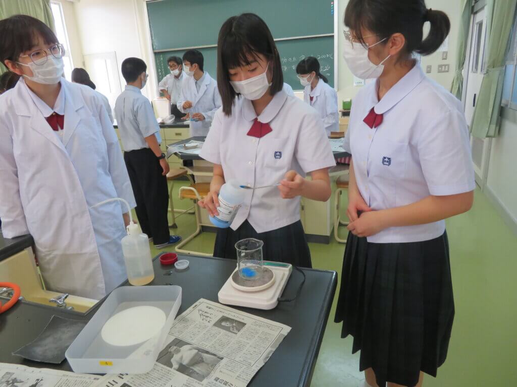 J1生は、初めて白衣を着ての実験です!部活に行く前に、嬉しそうに白衣を見せてくれました!これからたくさん白衣を着て、いろんな実験をしてください!