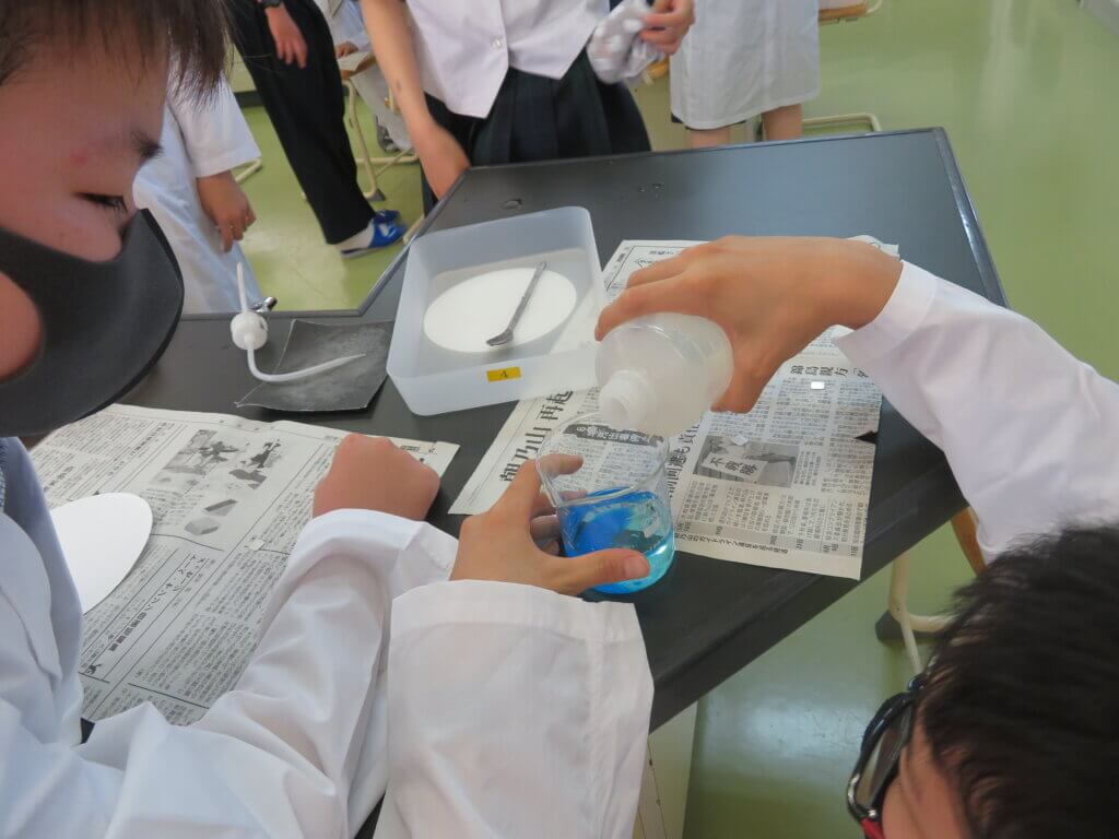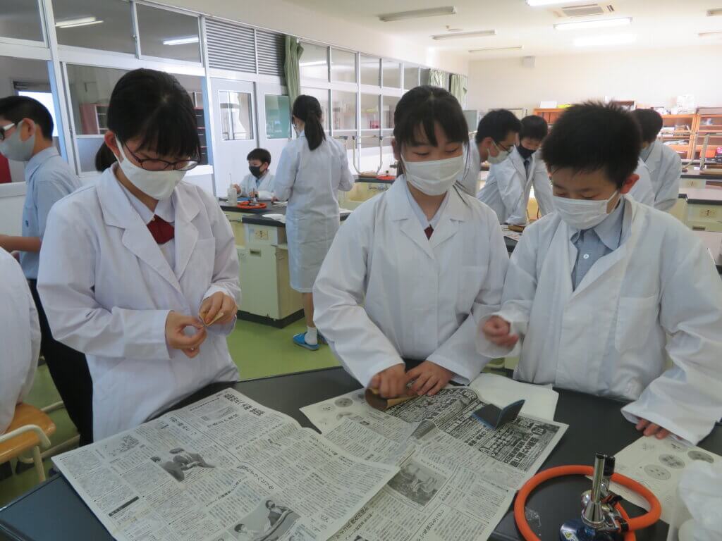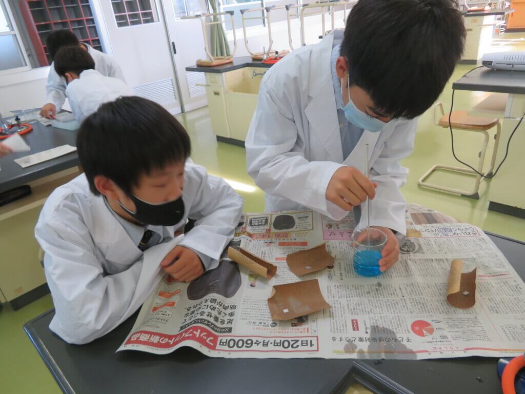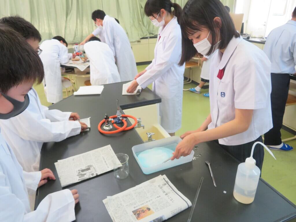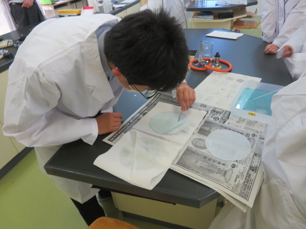 J1生は、初めて白衣を着ての実験です!部活に行く前に、嬉しそうに白衣を見せてくれました!これからたくさん白衣を着て、いろんな実験をしてください!