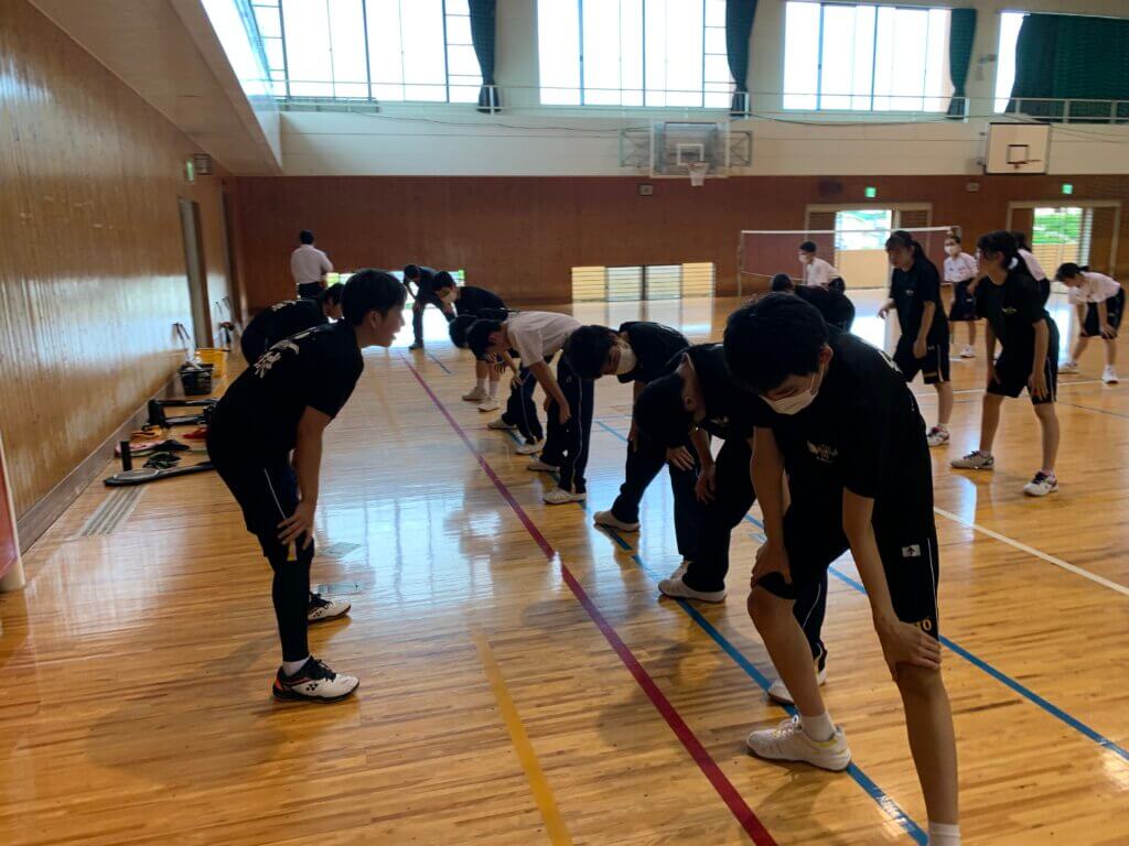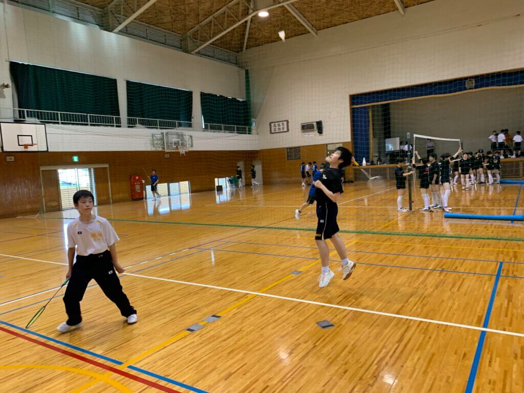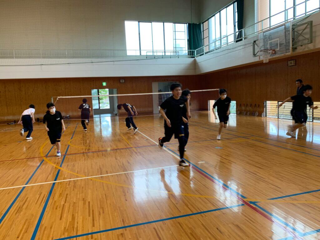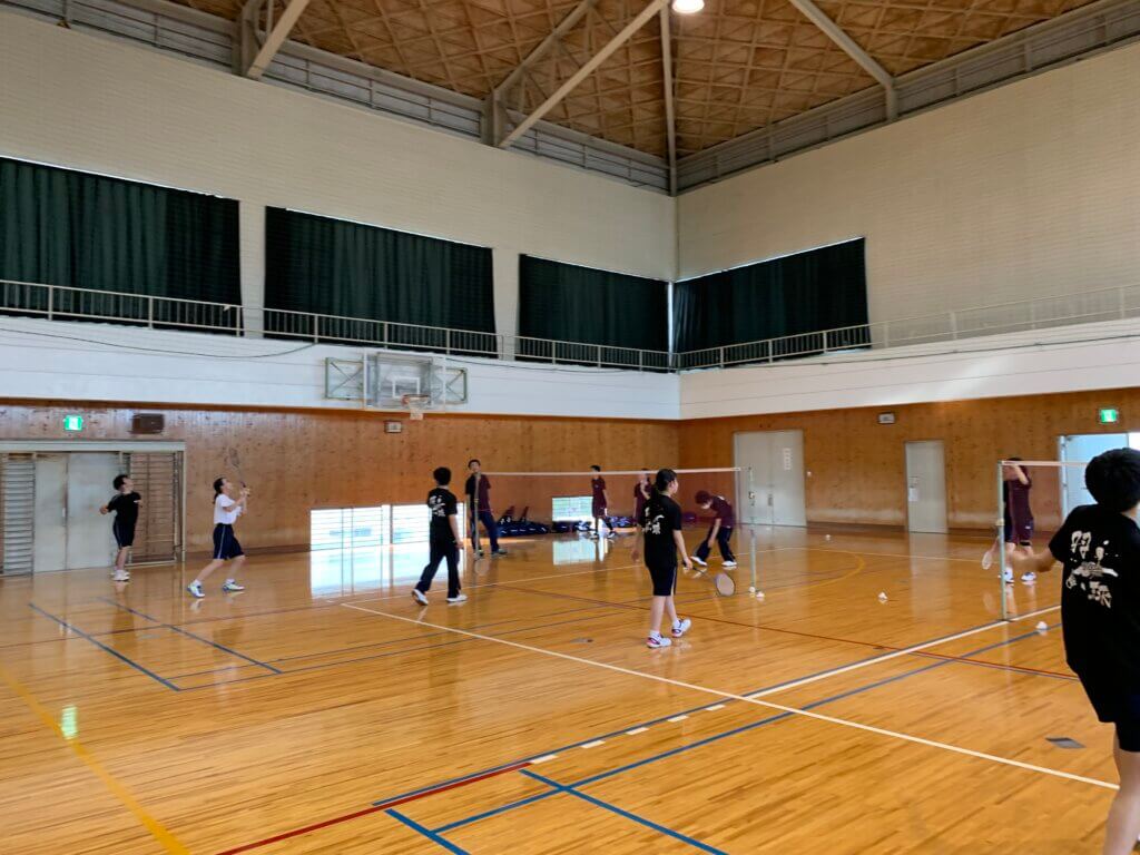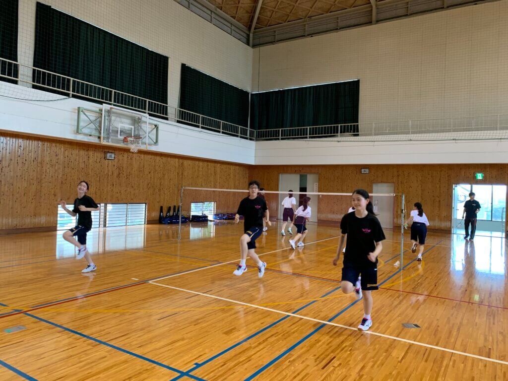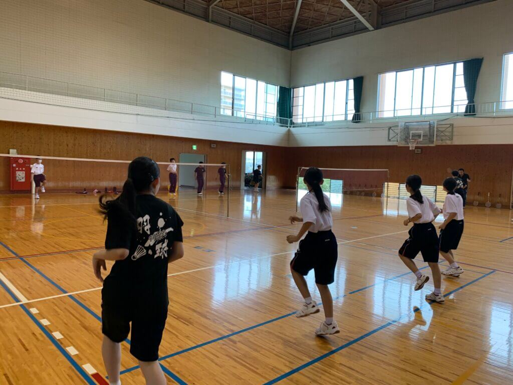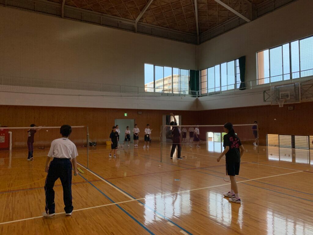 本日は、部活動の様子を写真にて紹介します。体育館を覗いてみると、バドミントン部、バスケットボール部、テニス部が活動していました。
