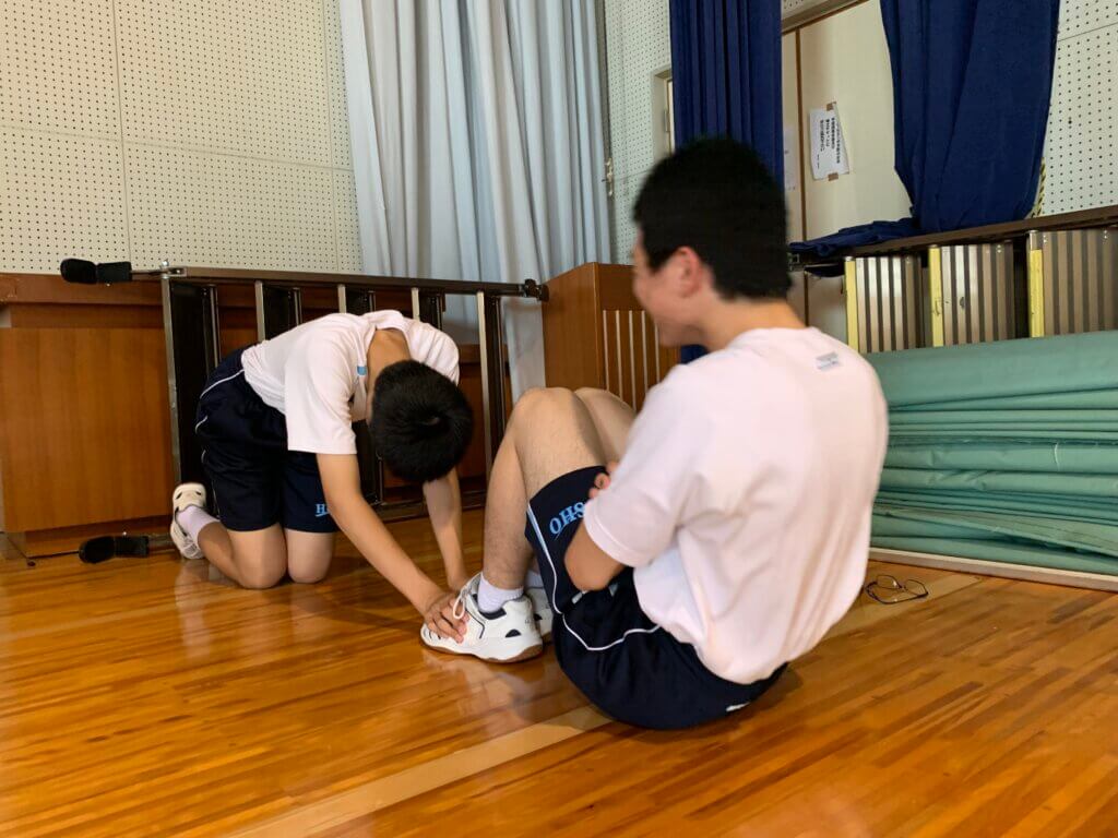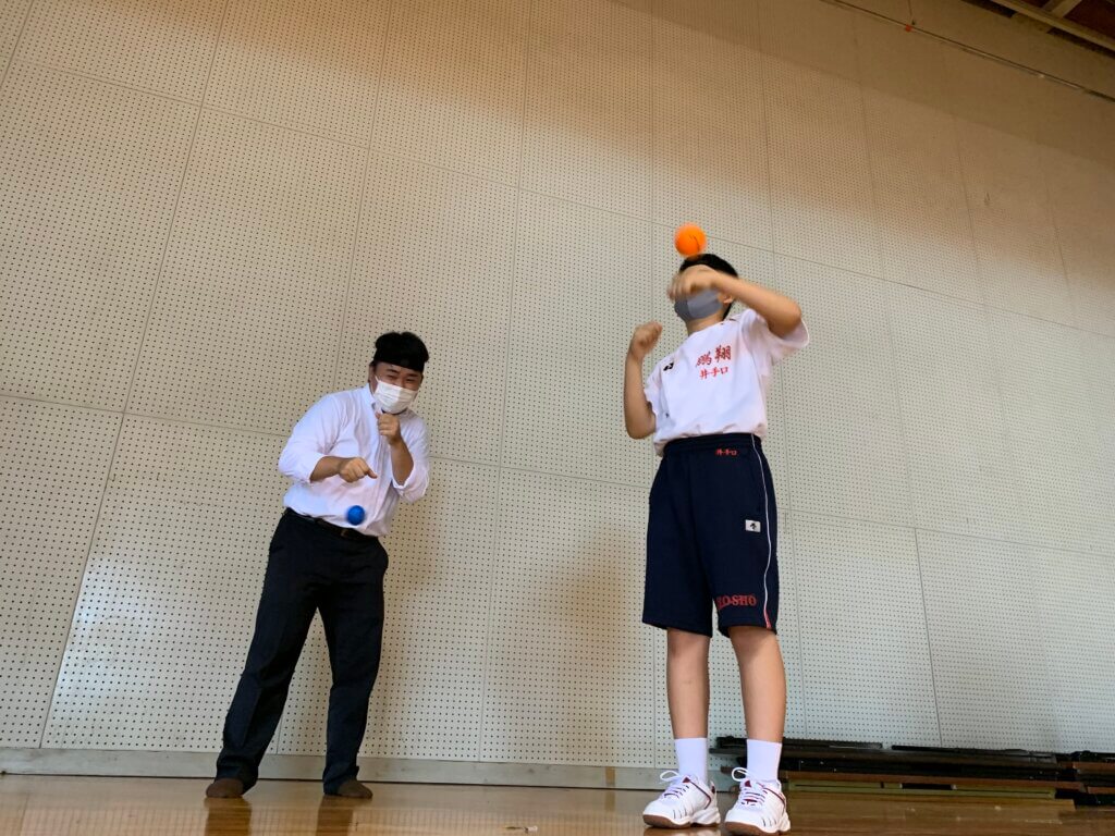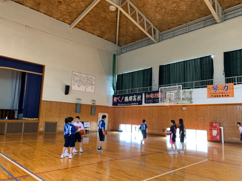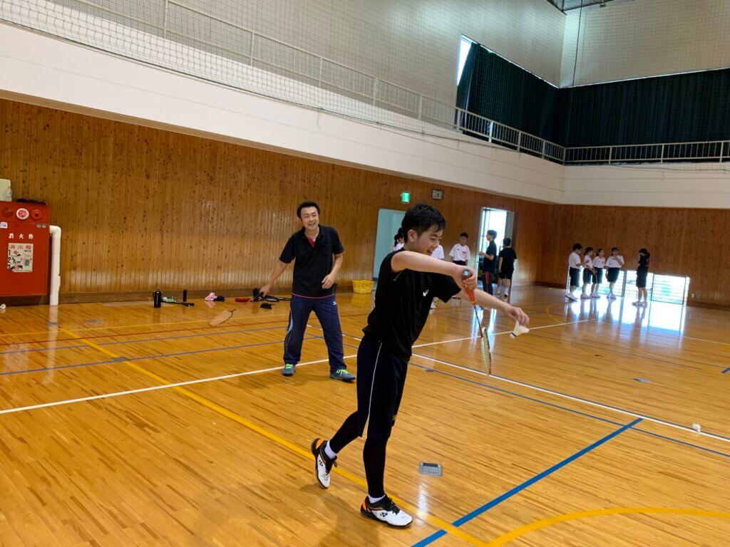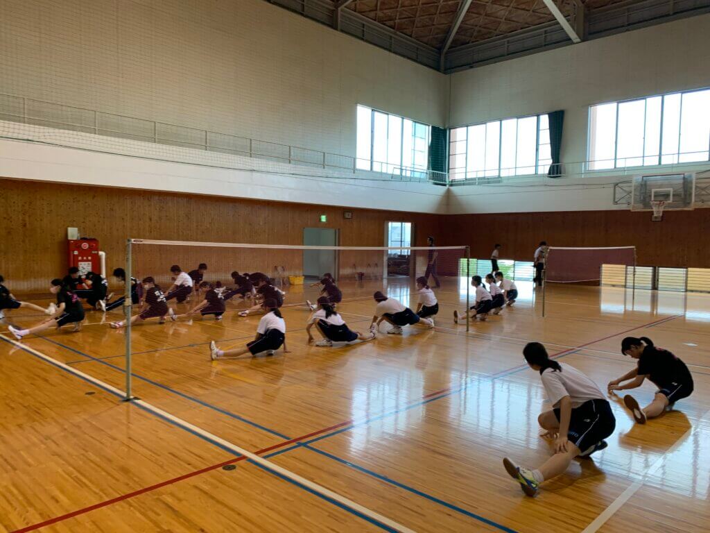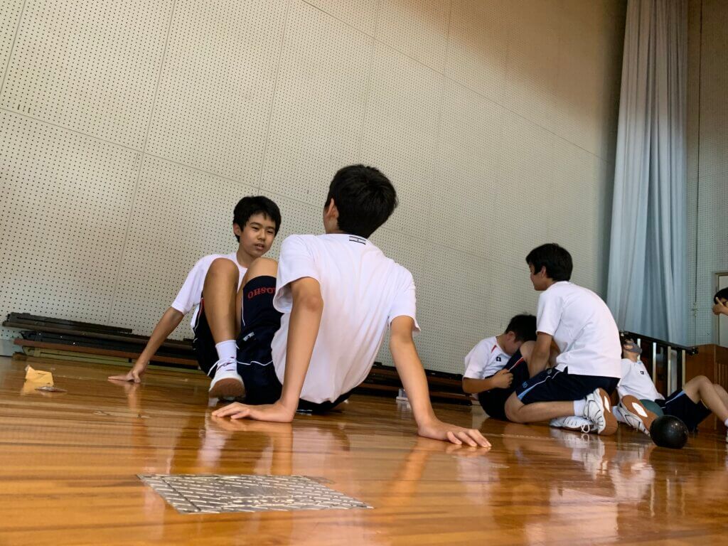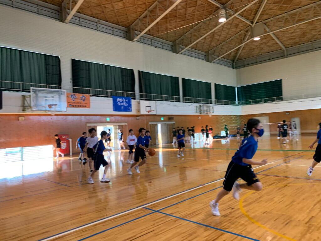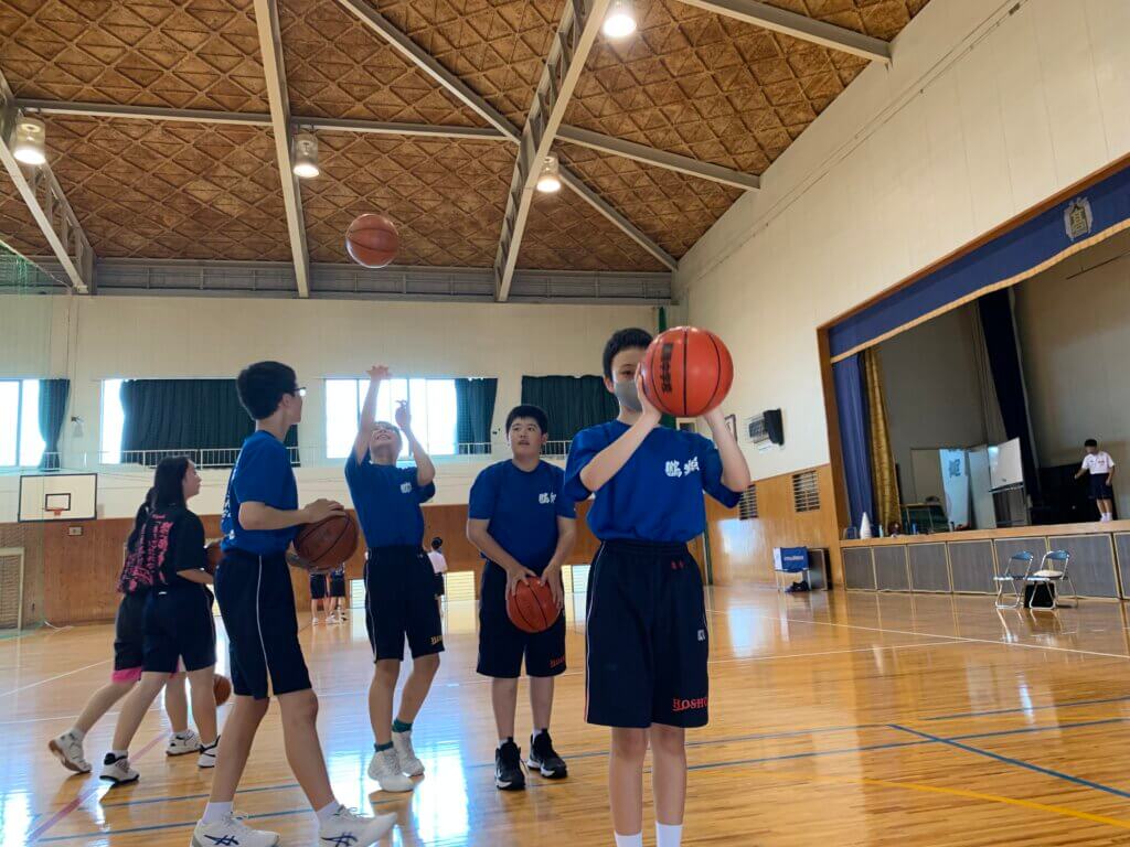 本日は、部活動の様子を写真にて紹介します。体育館を覗いてみると、バドミントン部、バスケットボール部、テニス部が活動していました。