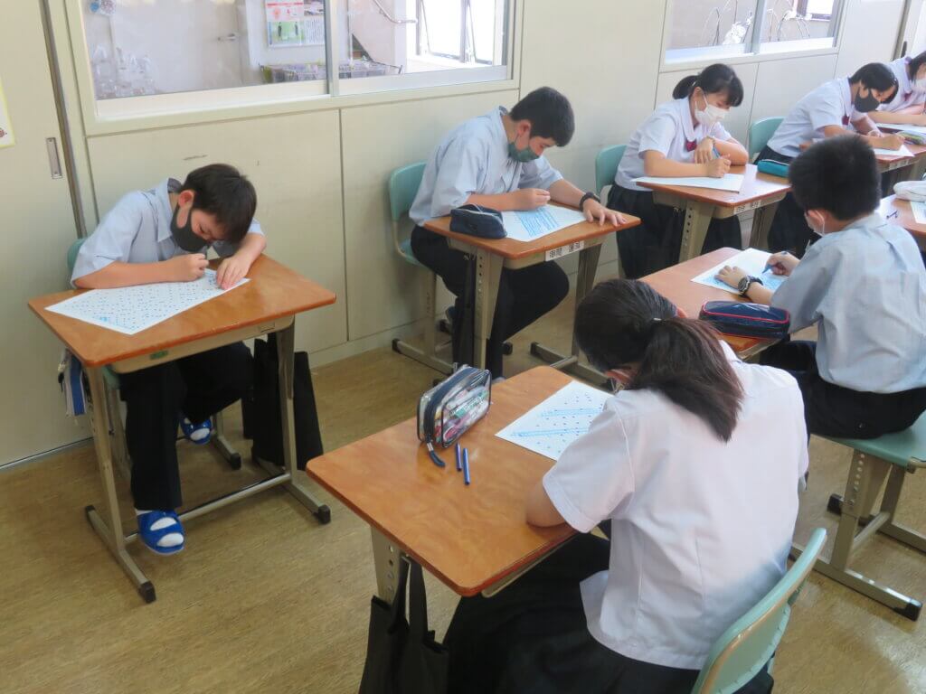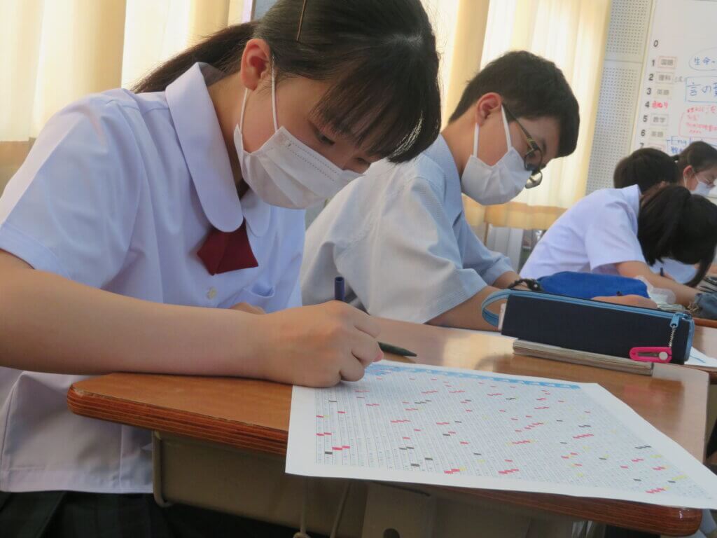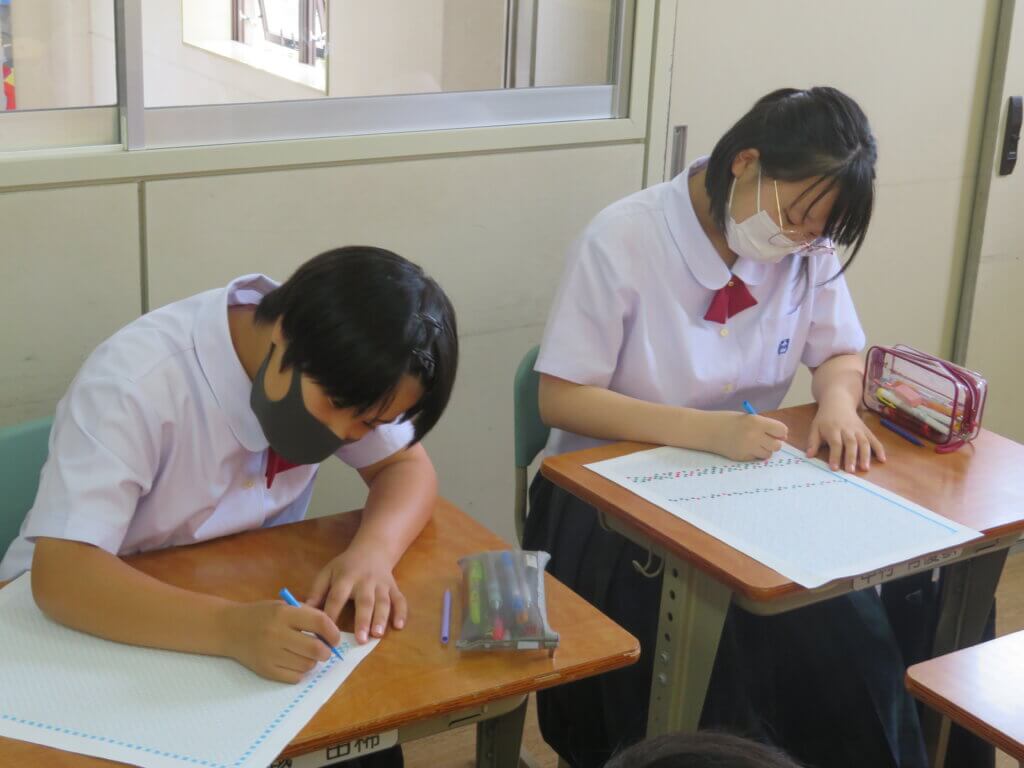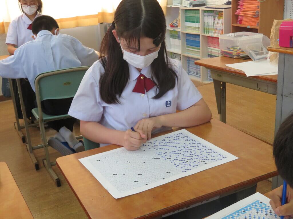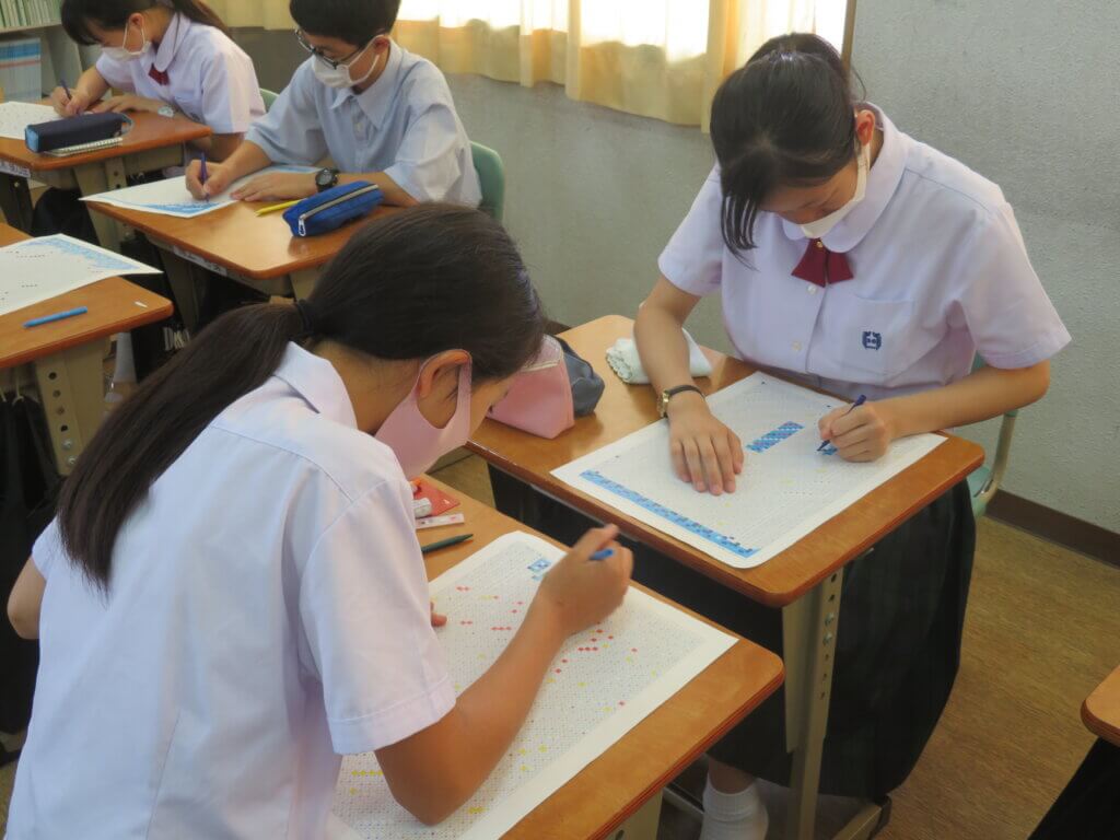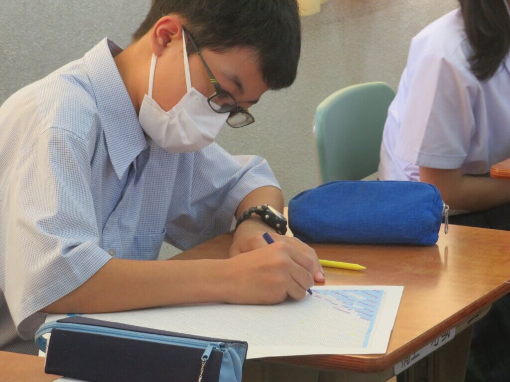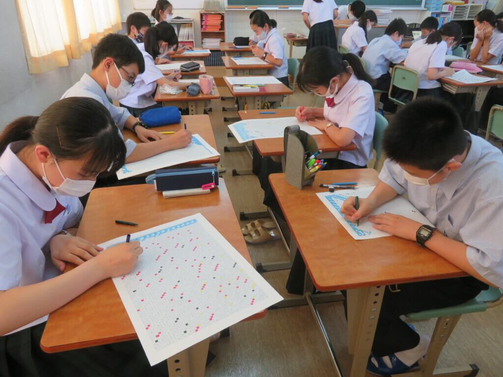 本日は、J1-A文化発表会準備の様子を写真にて紹介します。なにやら真剣に小さなマス目の色を塗っています。