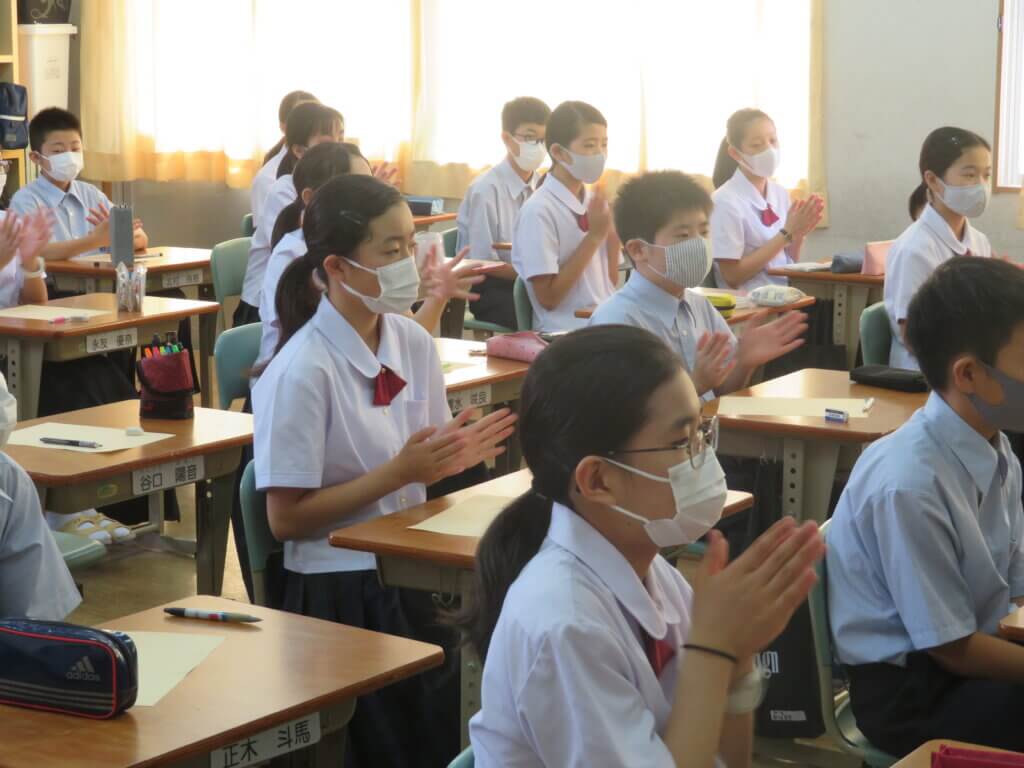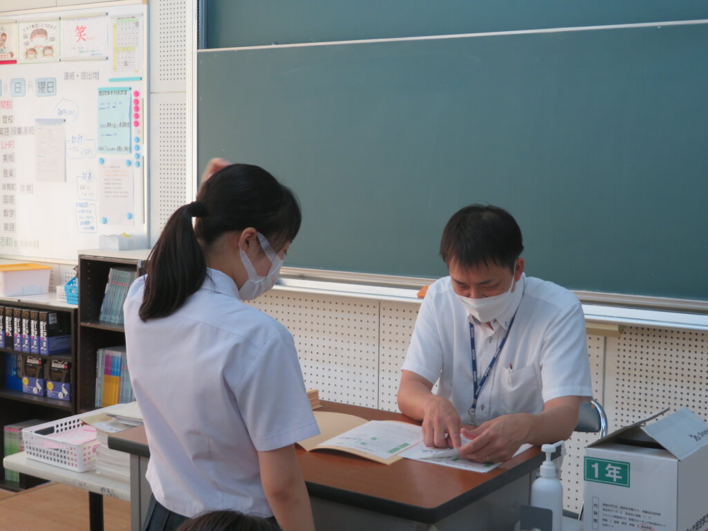 また、今日は容儀検査を行いました。 身だしなみを整えることはとても大切です。 チェックを受けてしまった生徒は、再検査で合格できるようにしましょう。それでは、明日も朝の健康観察・検温を忘れずに、元気に登校してきてください!
