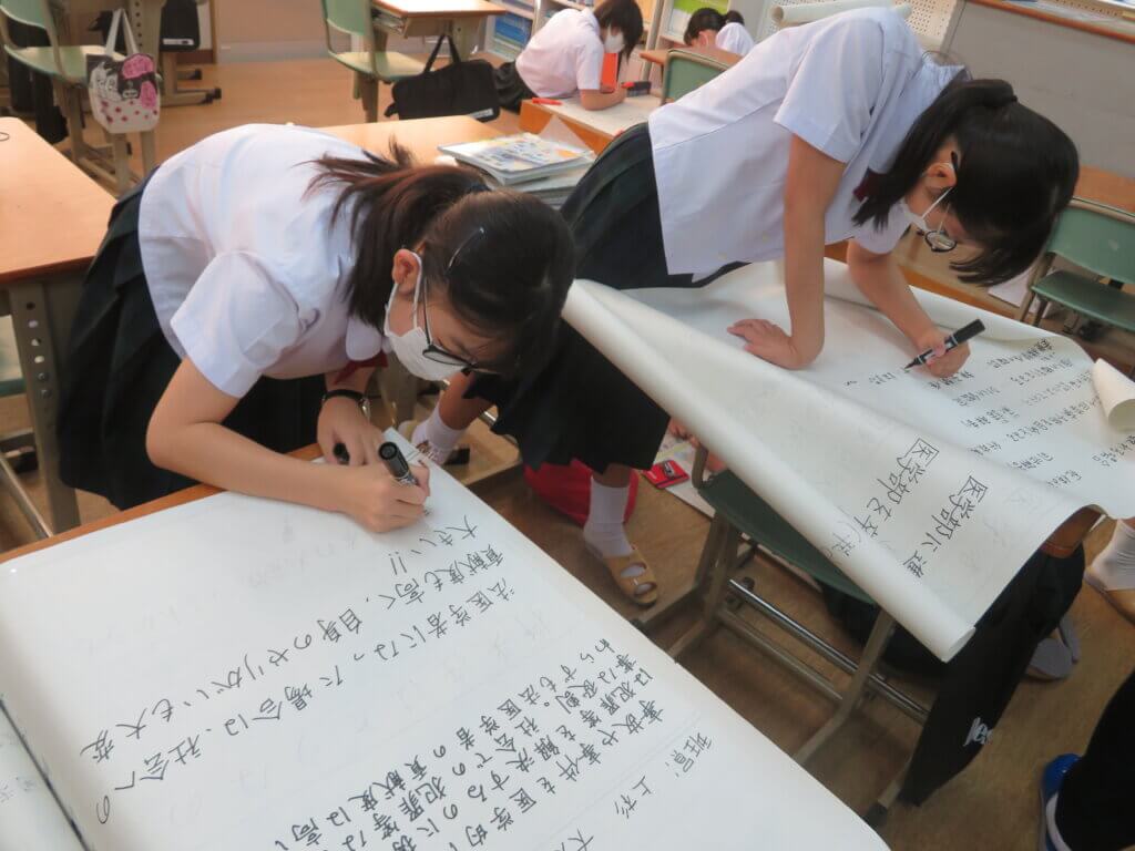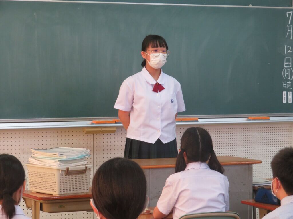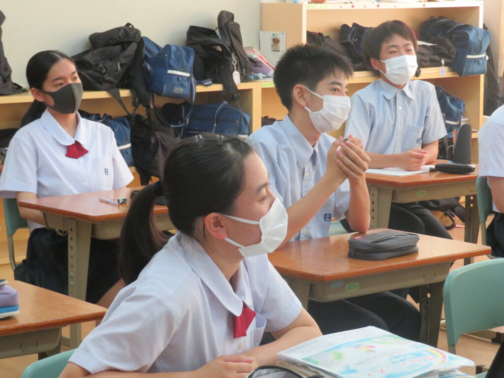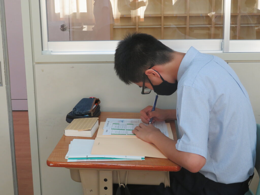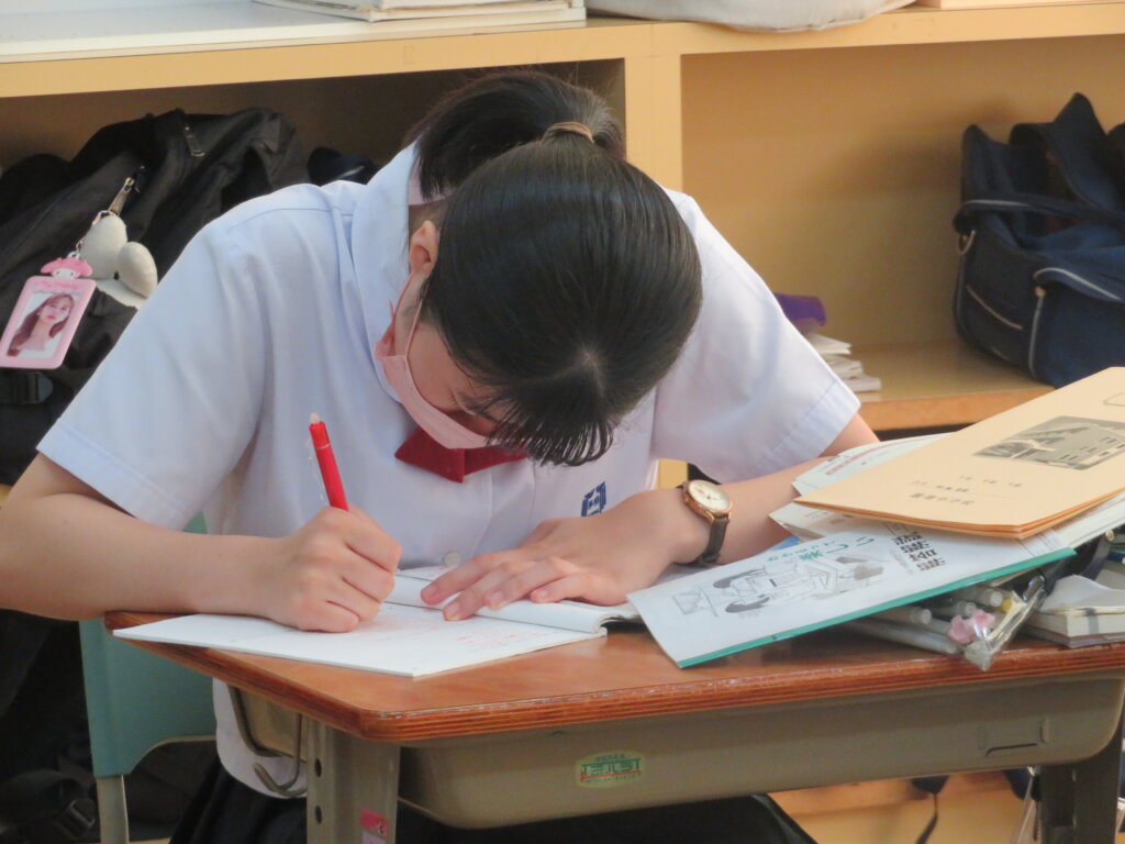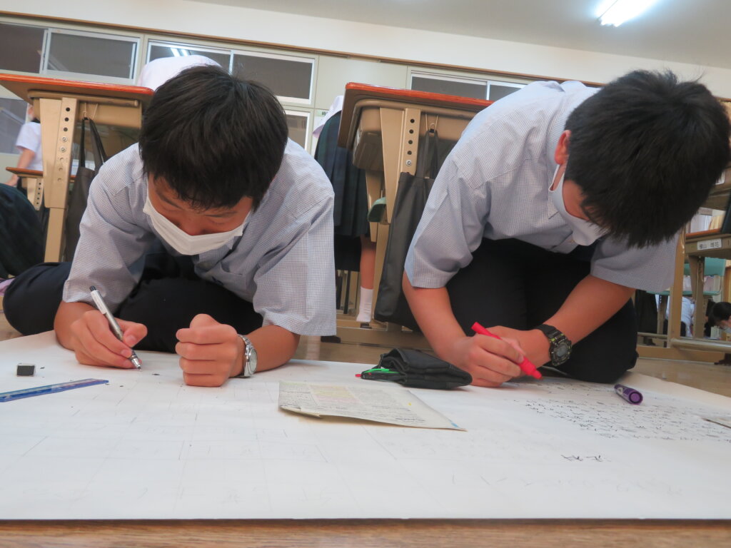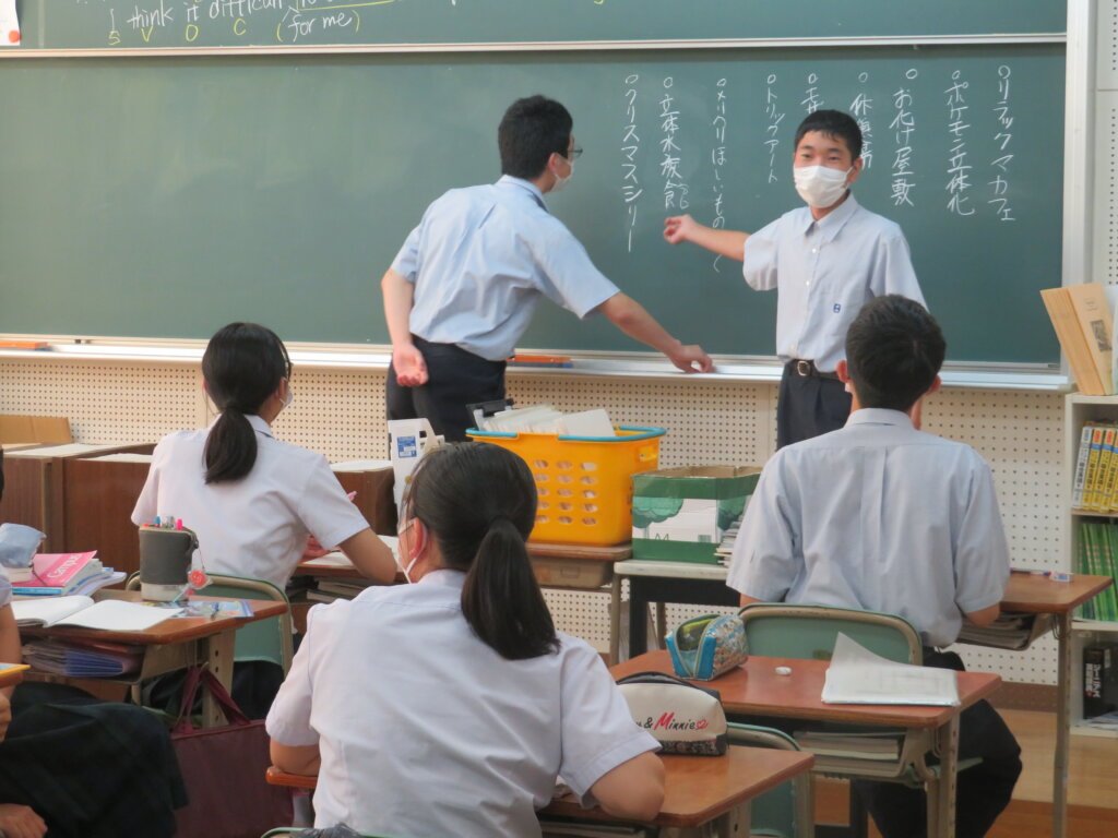 本日1限目、各学級をのぞいてみると、文化発表会に向け準備をしているクラスや、体育大会リーダー選出のため演説をしているクラス、面談をしているクラスがありました。