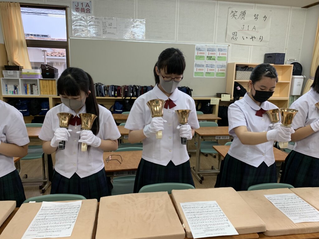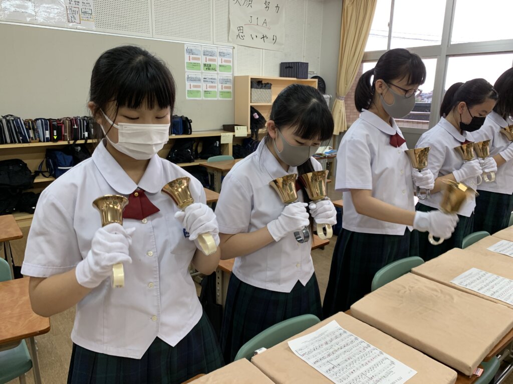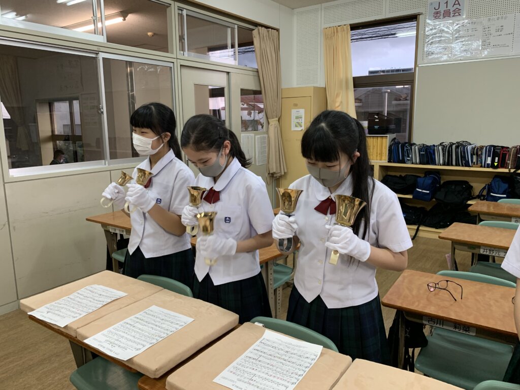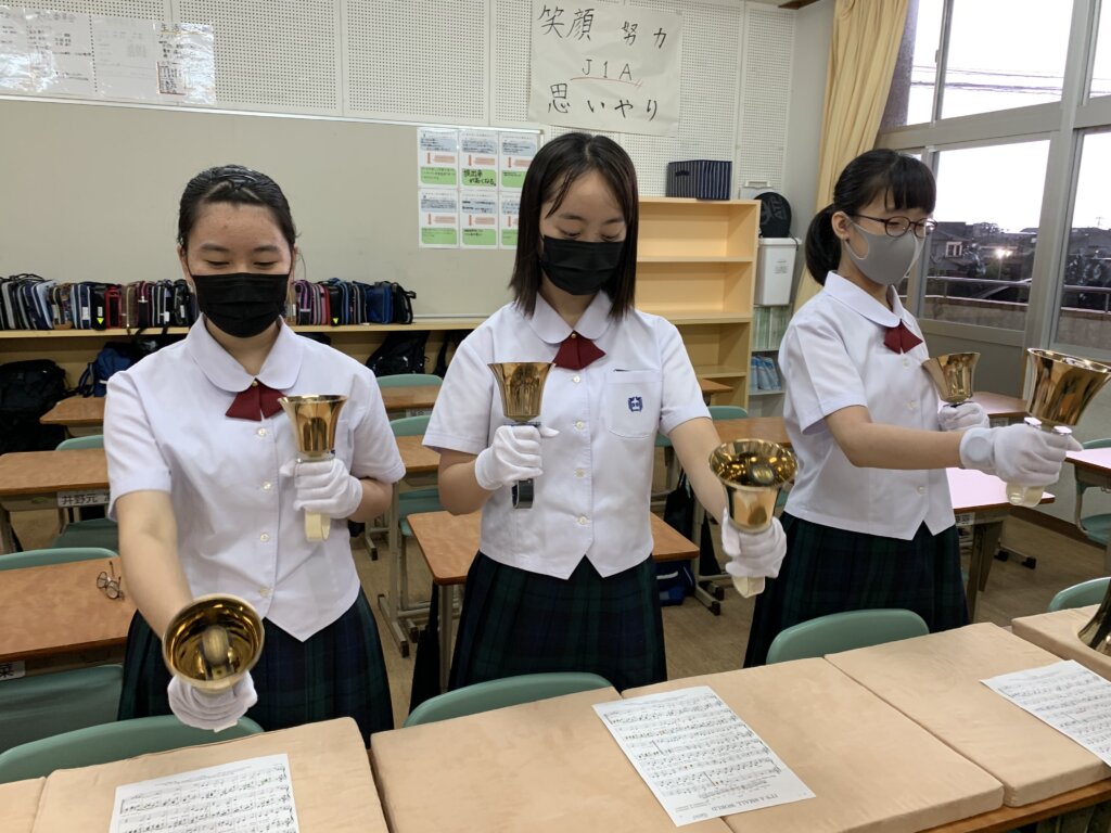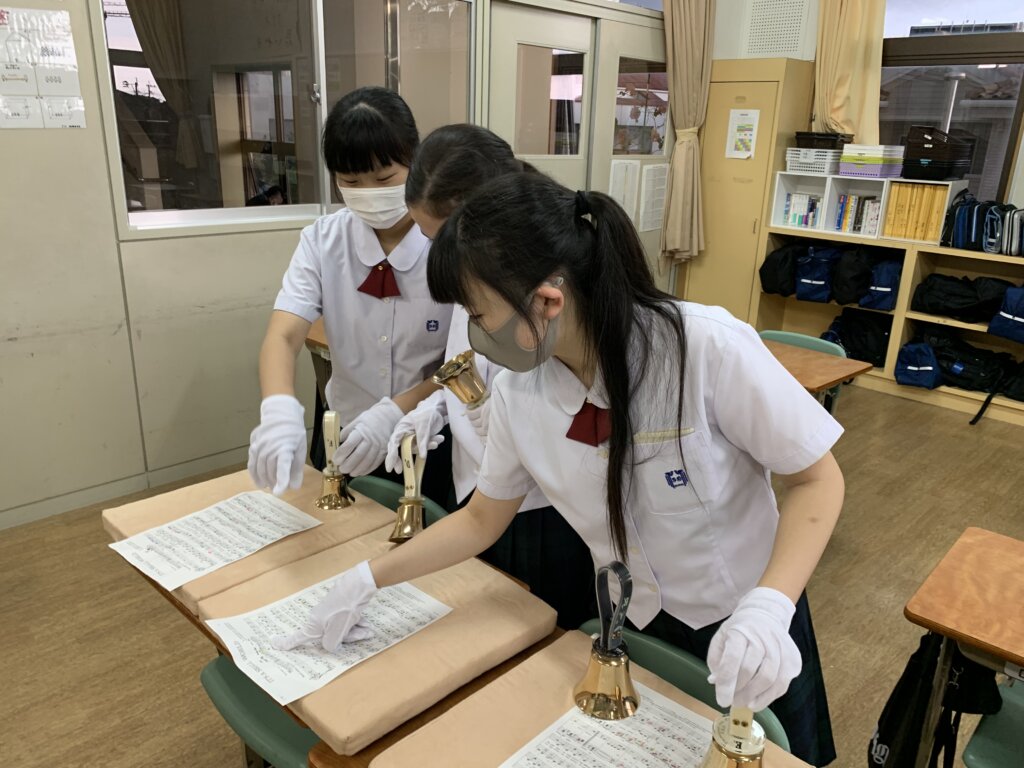 本日は、ハンドベル練習の様子を写真にて紹介します。 7月22日(木)にあります第1回特待生チャレンジテスト&第2回学校説明会に向けて、新しい曲を練習しています。 素敵な音色を奏でられるよう一生懸命練習していますので、当日楽しみにしていてください♪