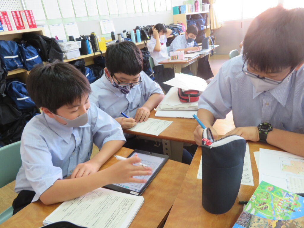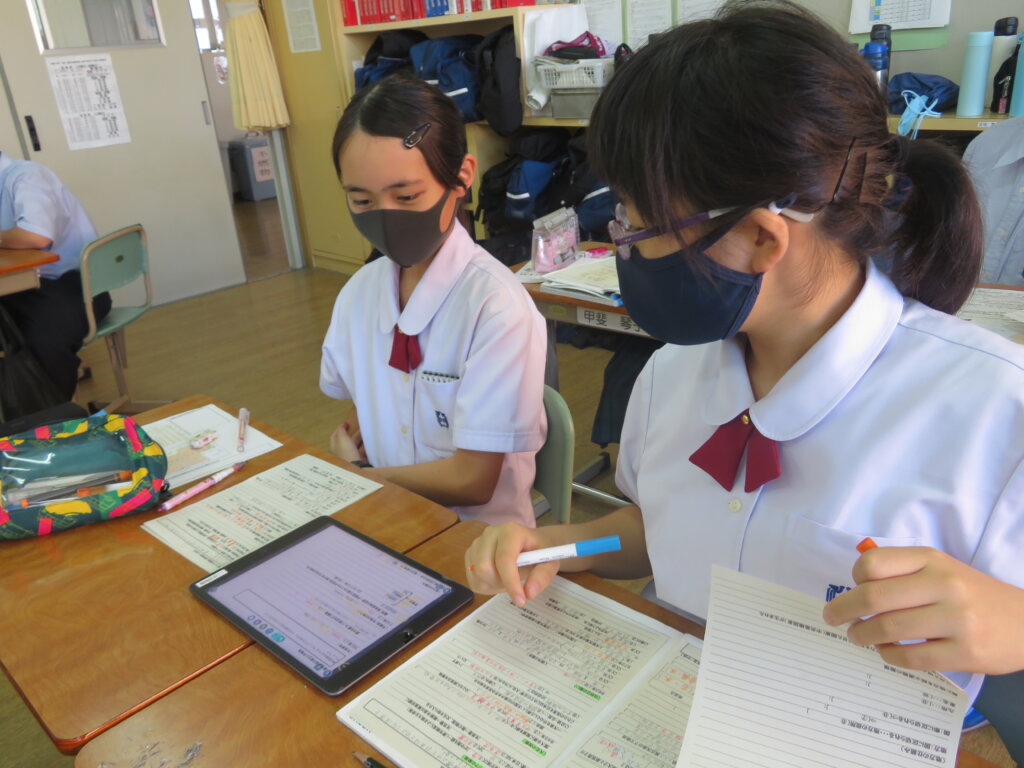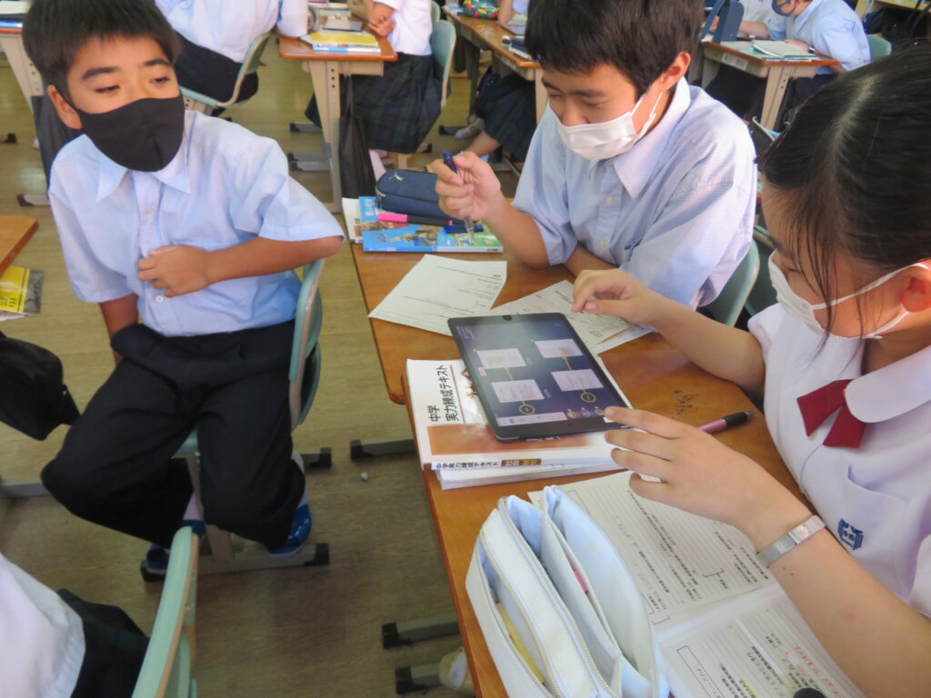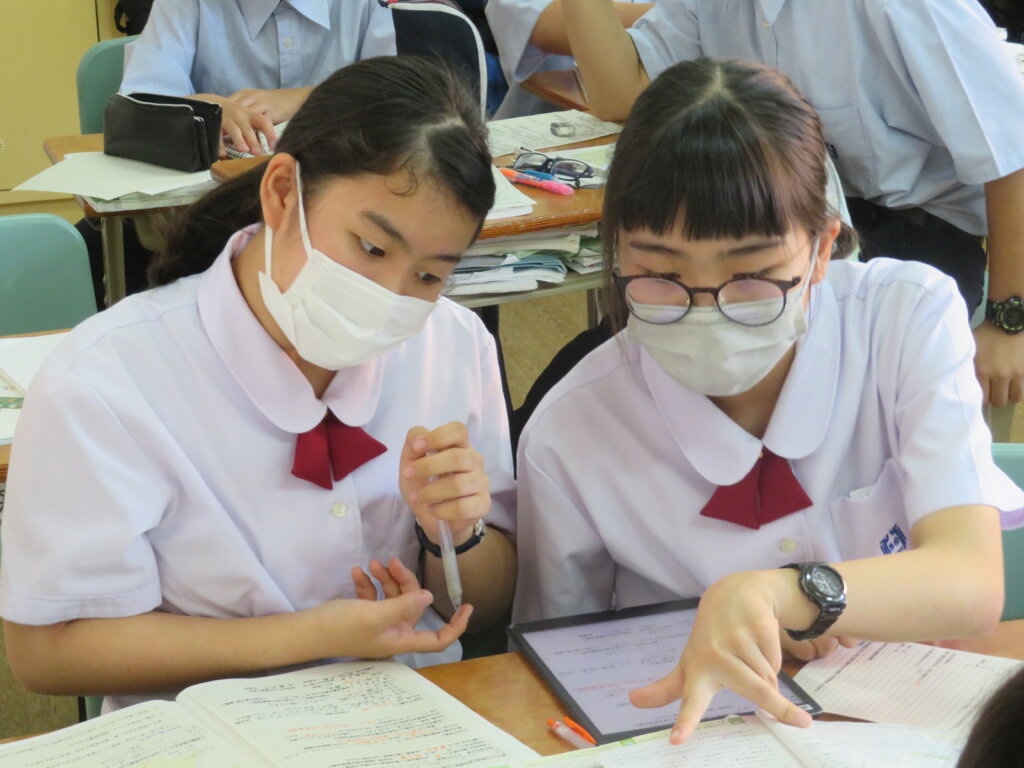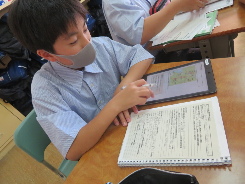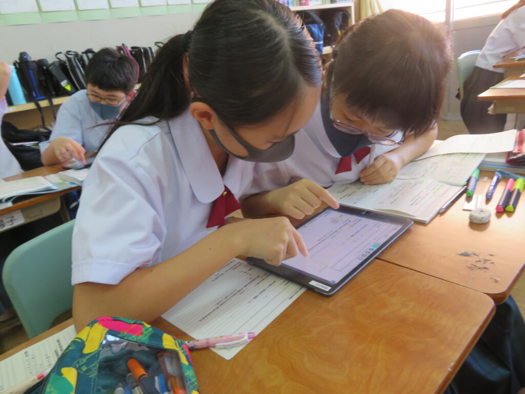 教室を覗いてみると、タブレットを使用し歴史の授業が行われていました。