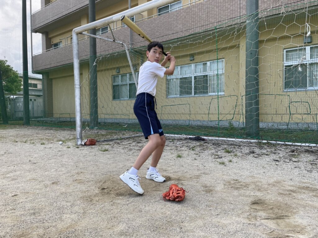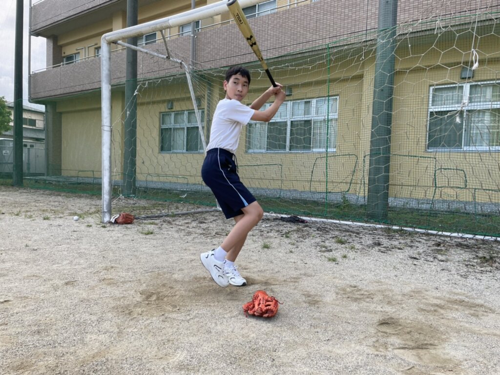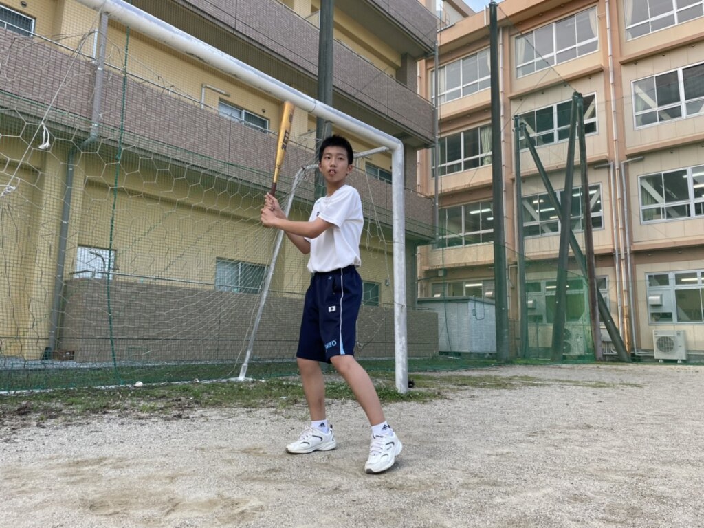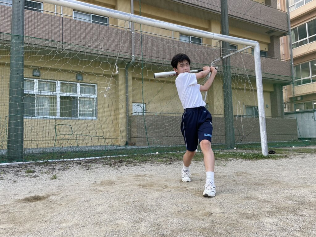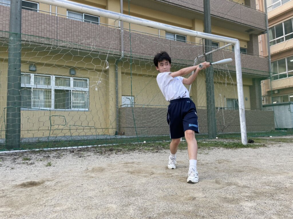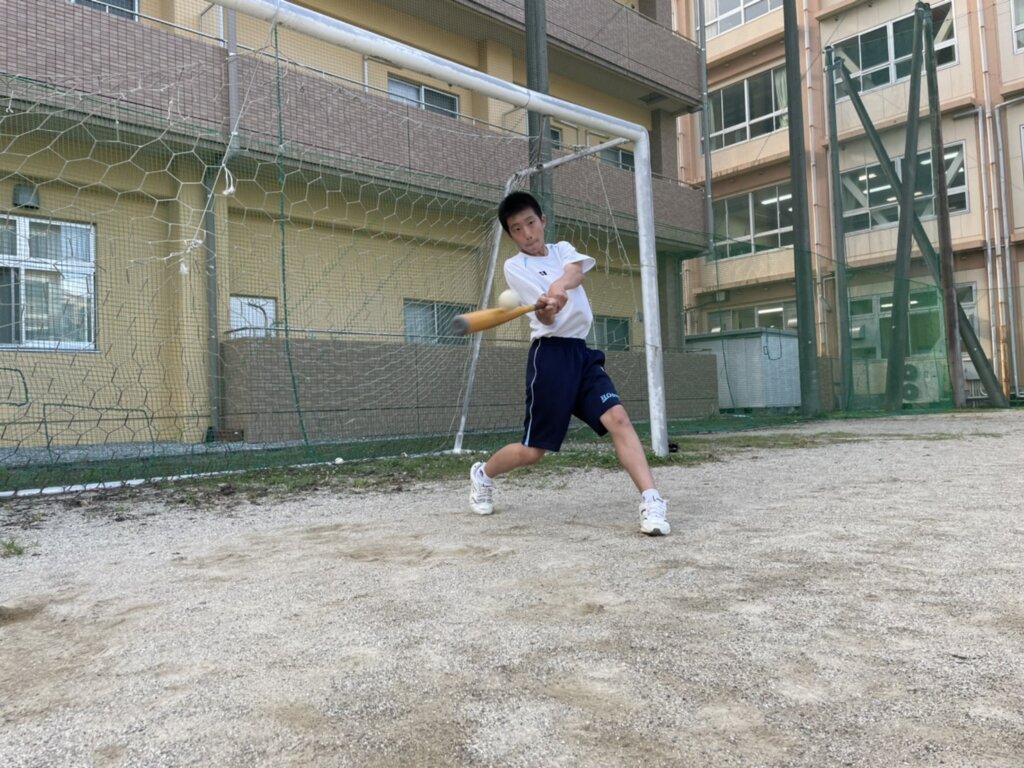 今日は部活の日です。グラウンドでは野球部が練習しています。ティーバッティングをしていました。