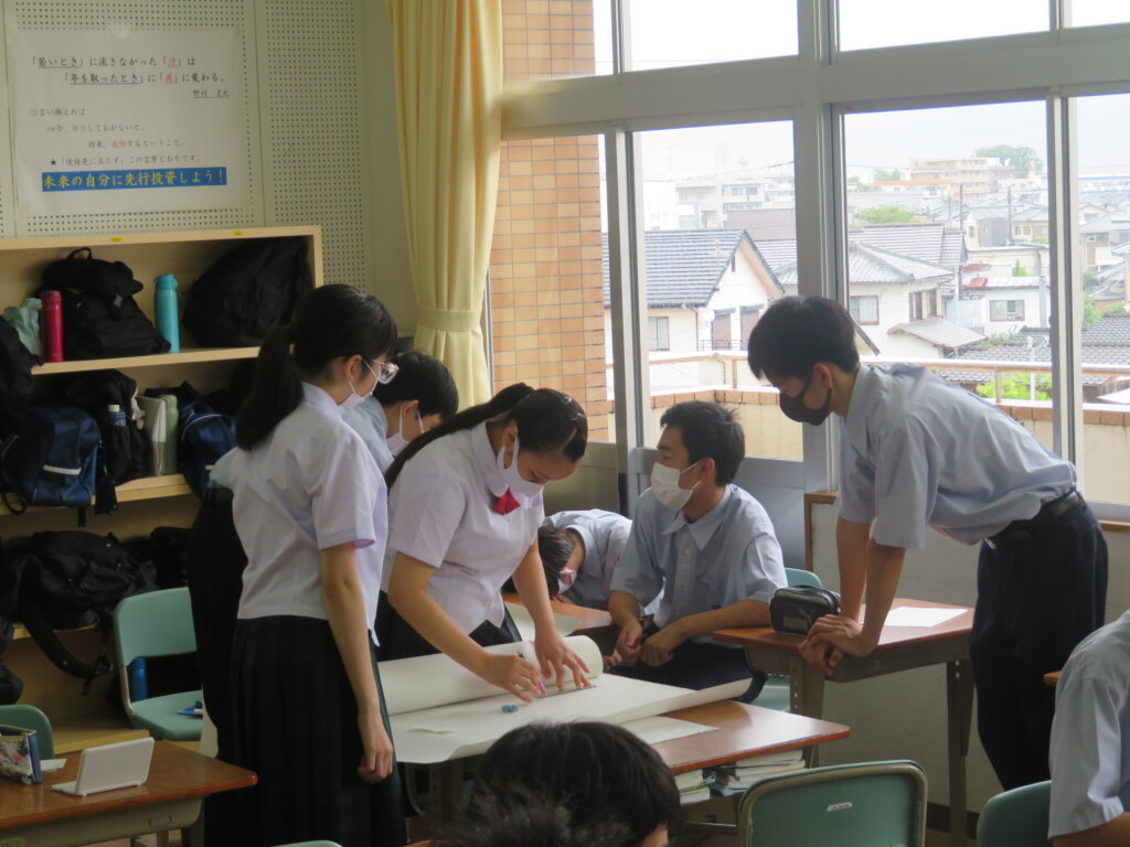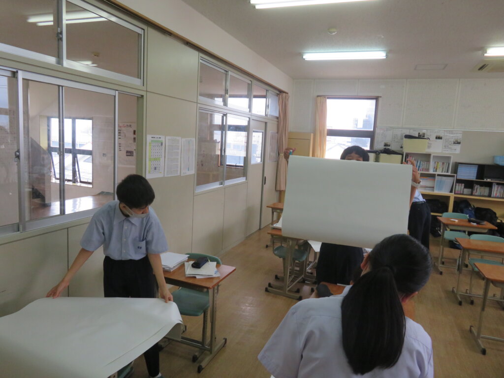 本日1限目のLHRの時間、各学級、文化発表会の準備や体育大会の準備をしていました。その様子を写真にて紹介します。 明日は、1学期終業式になります。下校時間は、12:00頃を予定しています。いい締めくくりをし、夏期課外全力疾走で頑張りましょう!