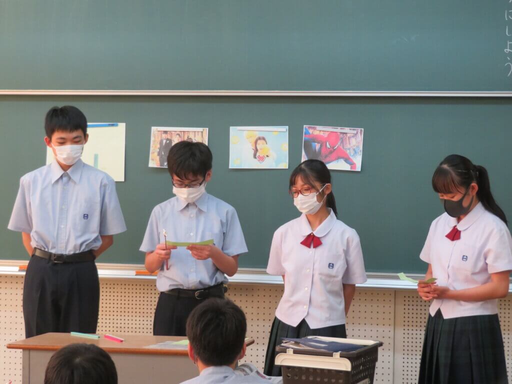 相手に分かりやすく伝えることは難しいですが、自分たちで考え一生懸命伝えようと頑張っていました。間違うことを恥ずかしがらずに英語を話すことが大切です。またプレゼンテーションをする機会があります。間違うことを恐れずに、楽しく英語を話してくれると嬉しいです!