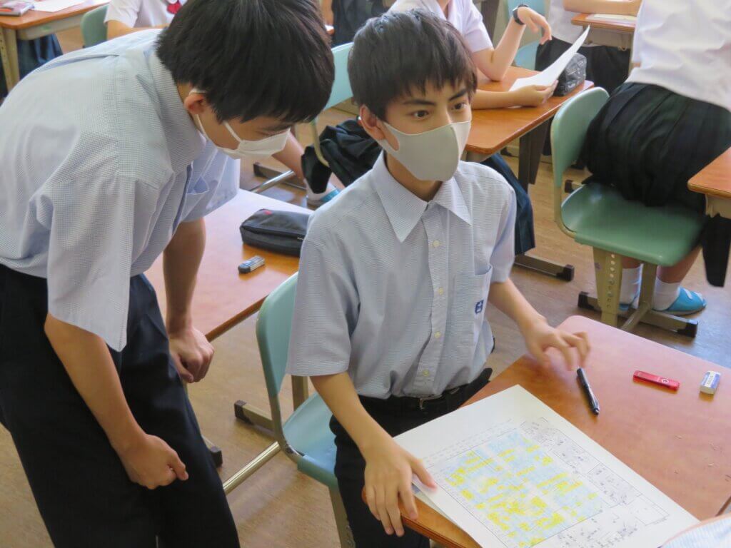 J2-Aは、文化発表会に向けて、各グループに分かれて話し合いや、担任の福永先生と打ち合わせをしていました。