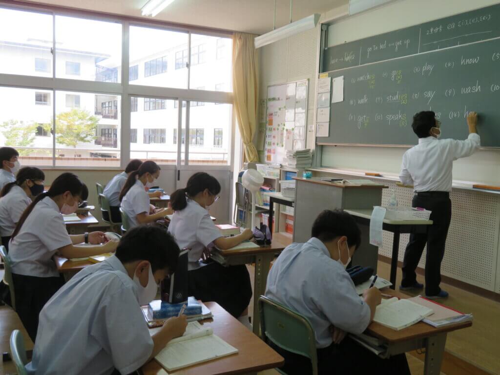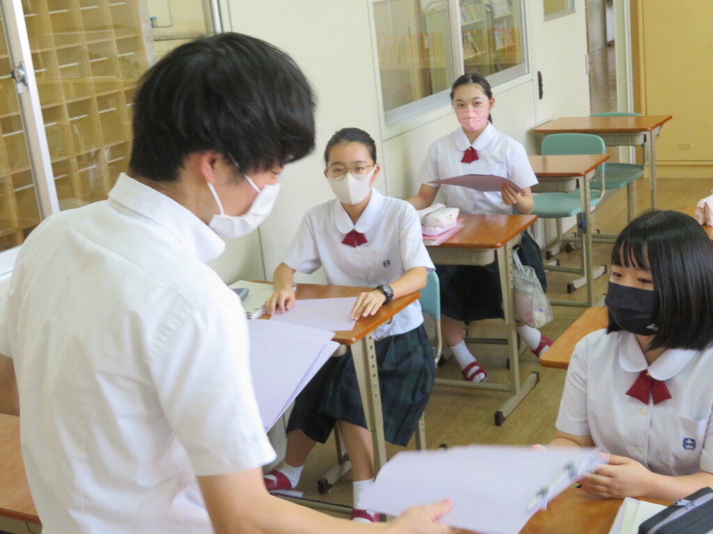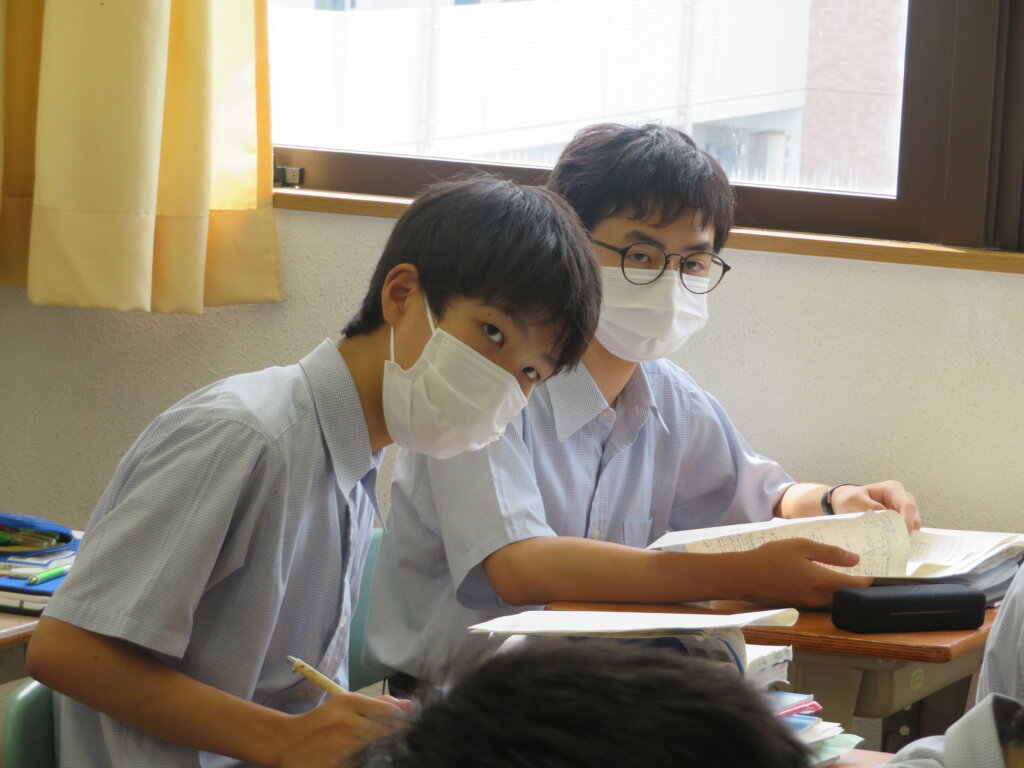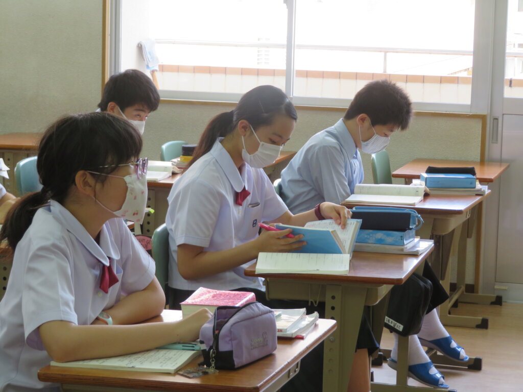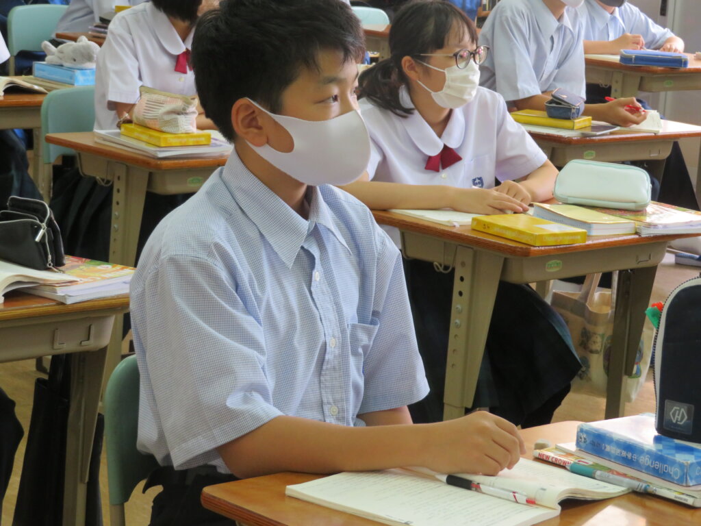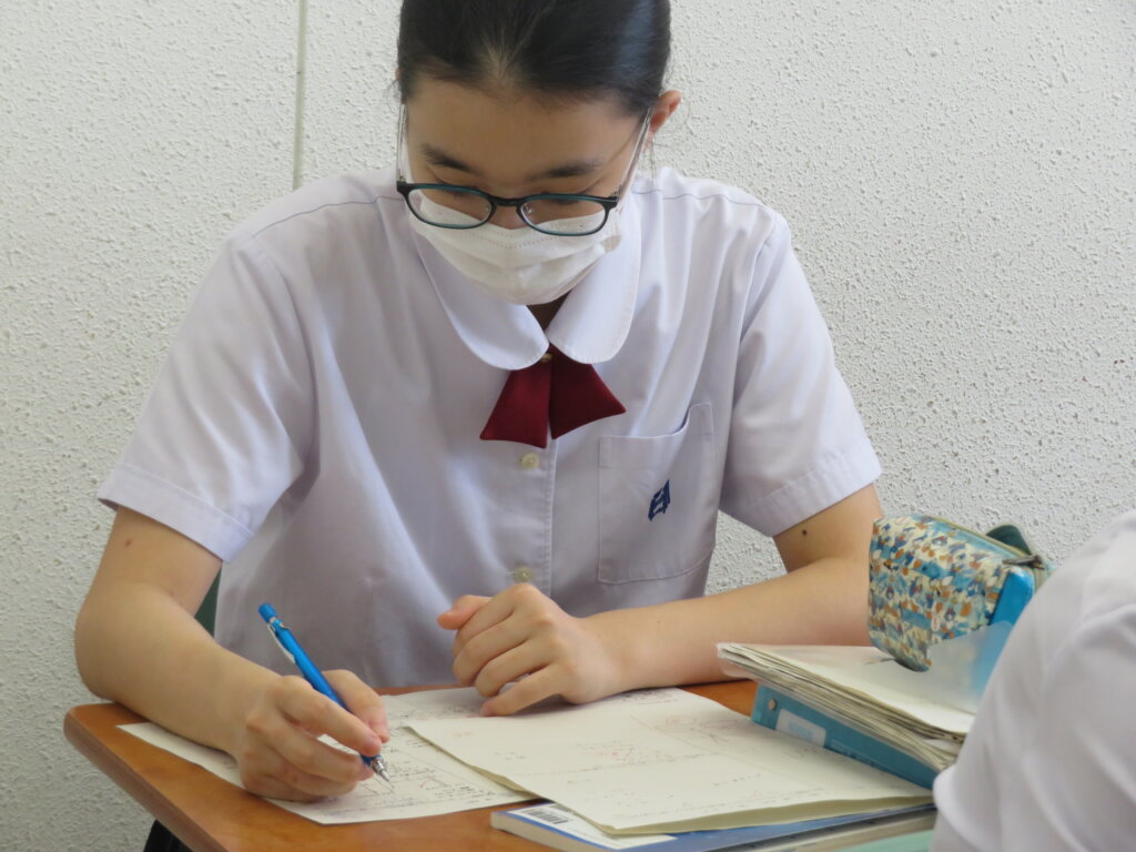本日1限目、J1-Aは書道でした。年間テーマの「笑」を書いています。いつもは、姿勢や筆の持ち方等こまかく指導をしていただきますが、今日は遊び心をもち自分らしく楽しく書いてみよう!ということで、立って書いたり、筆の上を持ち書いたりしていました。