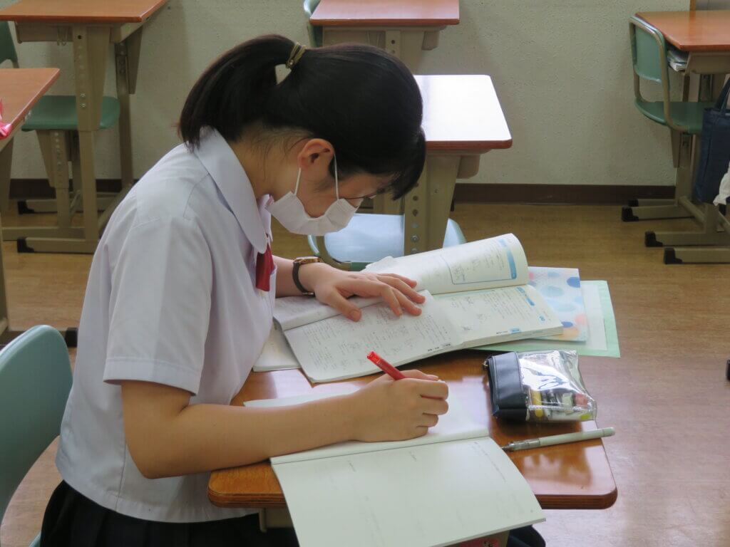 放課後は教室で自学自習をしている生徒、リーダー練習や体育大会の準備をしている生徒などそれぞれが時間を有効活用しています。