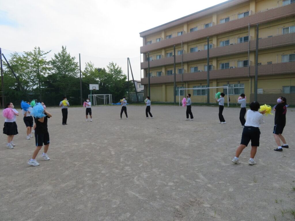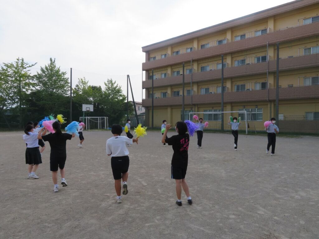 グラウンドでは体育大会のリーダー練習が行われていました。限られた練習時間の中で精一杯活動しています!!