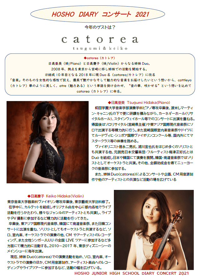 9月14日(火)、文化発表会の2日目午後に予定をしてます、HOSHO DIARY コンサート 2021の紹介をします。