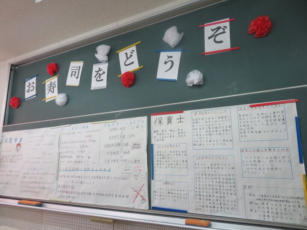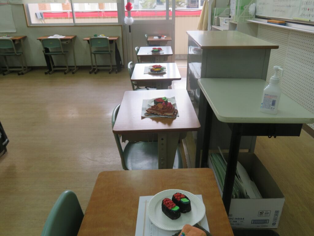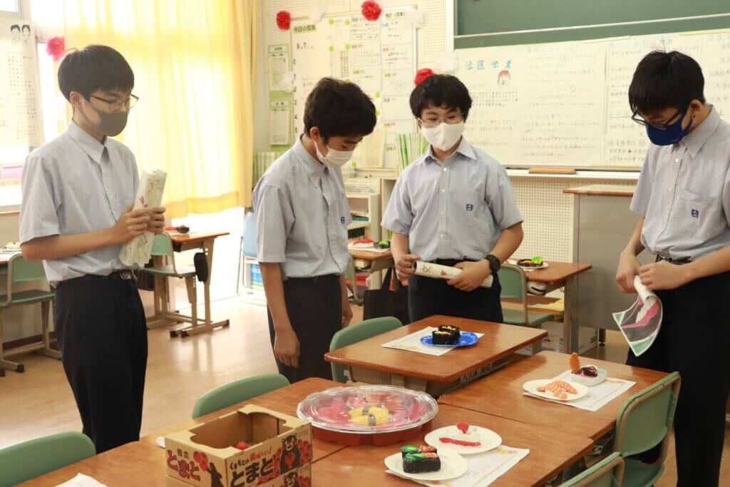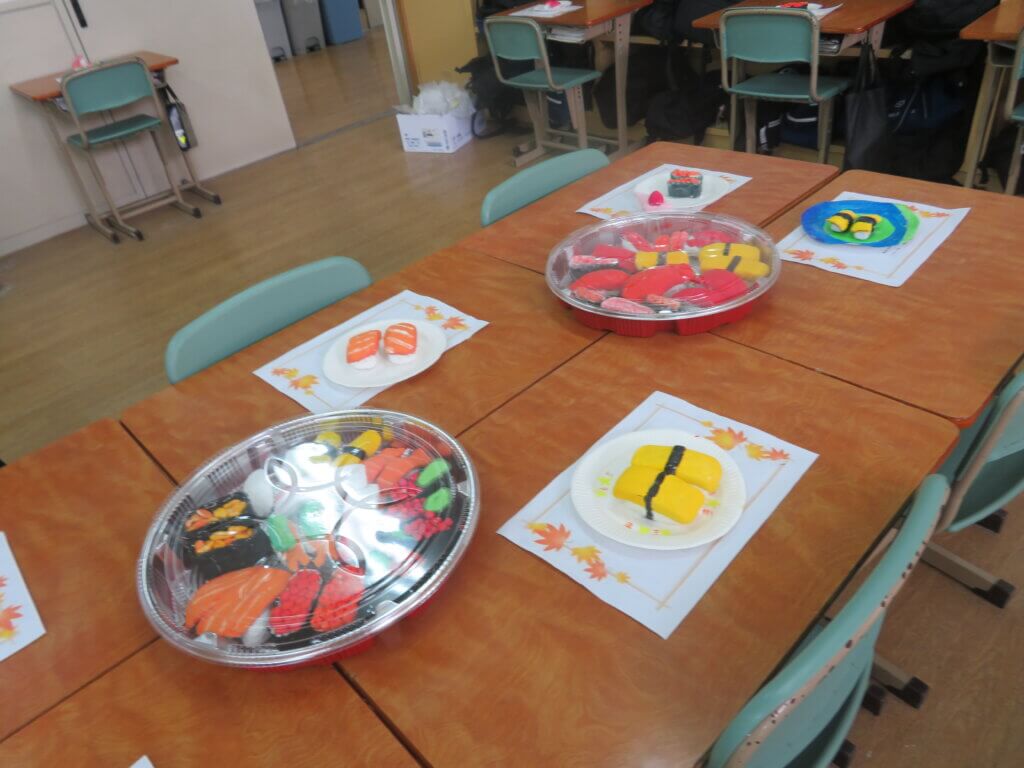J1-Bは、紙粘土でお寿司を作りました!それぞれ個性があふれていて、美味しそうです!