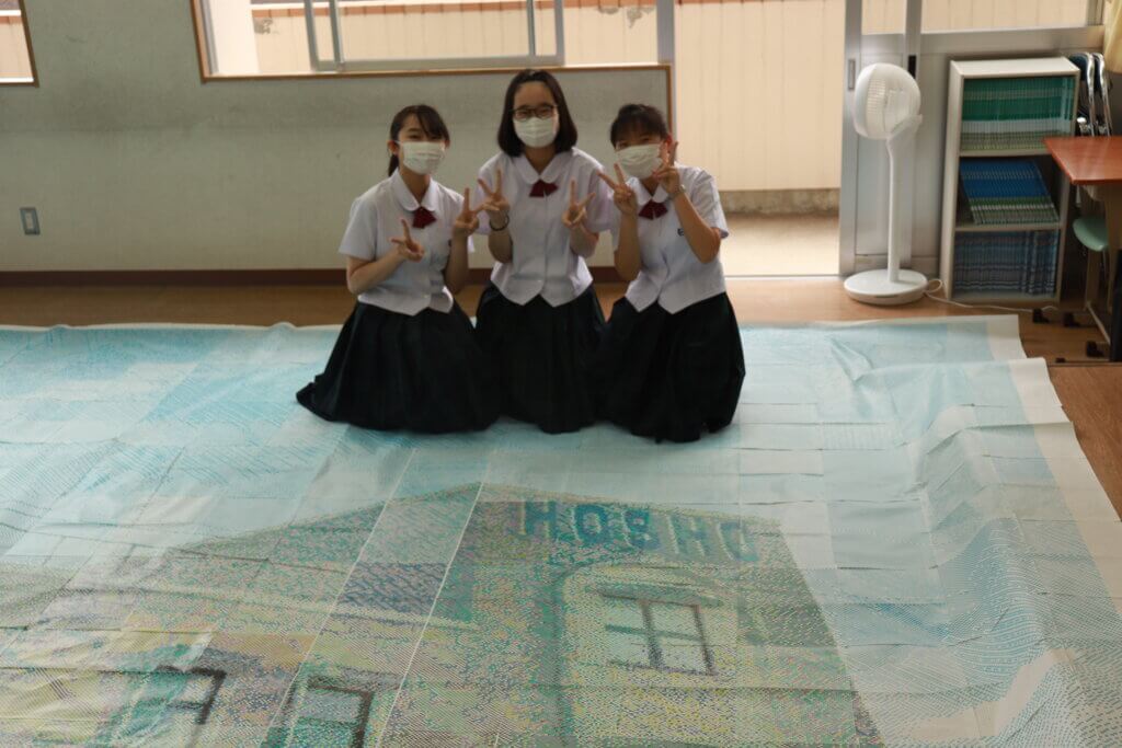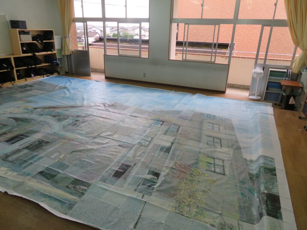 J1-Aは、モザイクアートです!みんなで協力して作りあげました!約400枚をつなぎ合わせたモザイクアートは、迫力満点です!
