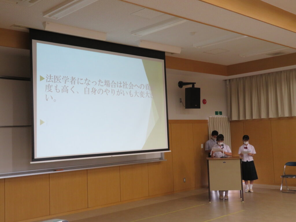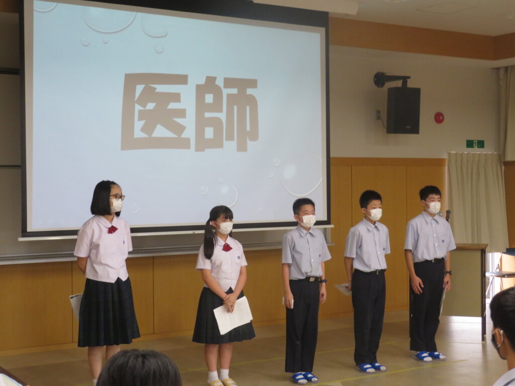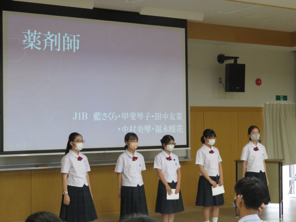 次に、各クラス発表です。J1は、職業調べを発表しました。