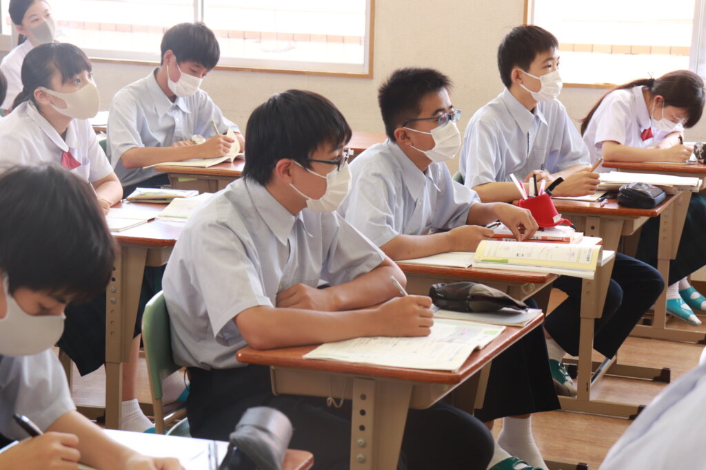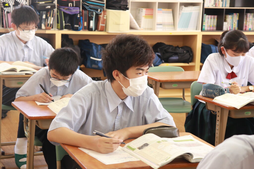 今日も集中して授業を受ける姿がありました。1年生は2学期から習熟度に分かれた授業が始まり、習熟度に合った授業展開がされています。2、3年生もそれぞれの習熟度で集中して授業を受けています。