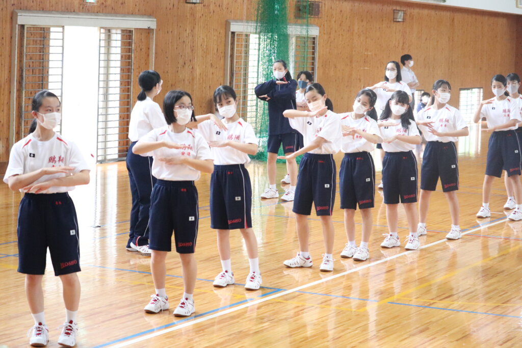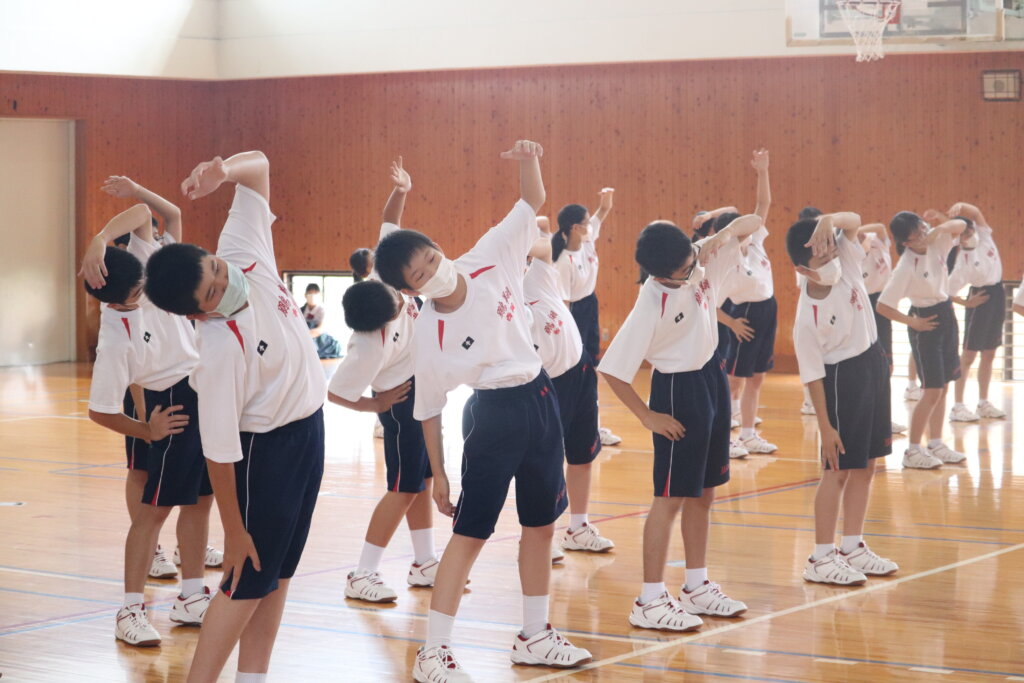 まず、準備体操を行い、次に、団別集団演技の練習です。いよいよ本番も近くなり、ラストスパート!両団とも気合十分です!