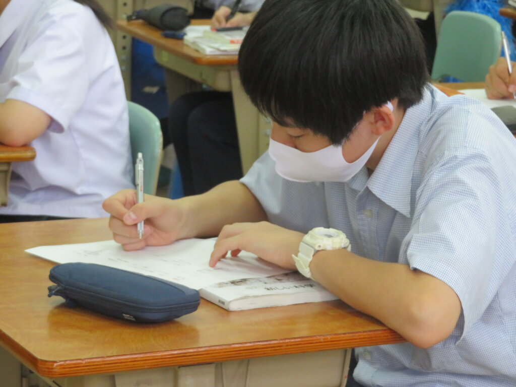 返り点や書き下しの仕方を学んでいます。高校の漢文の勉強につながる大切な内容となっています。