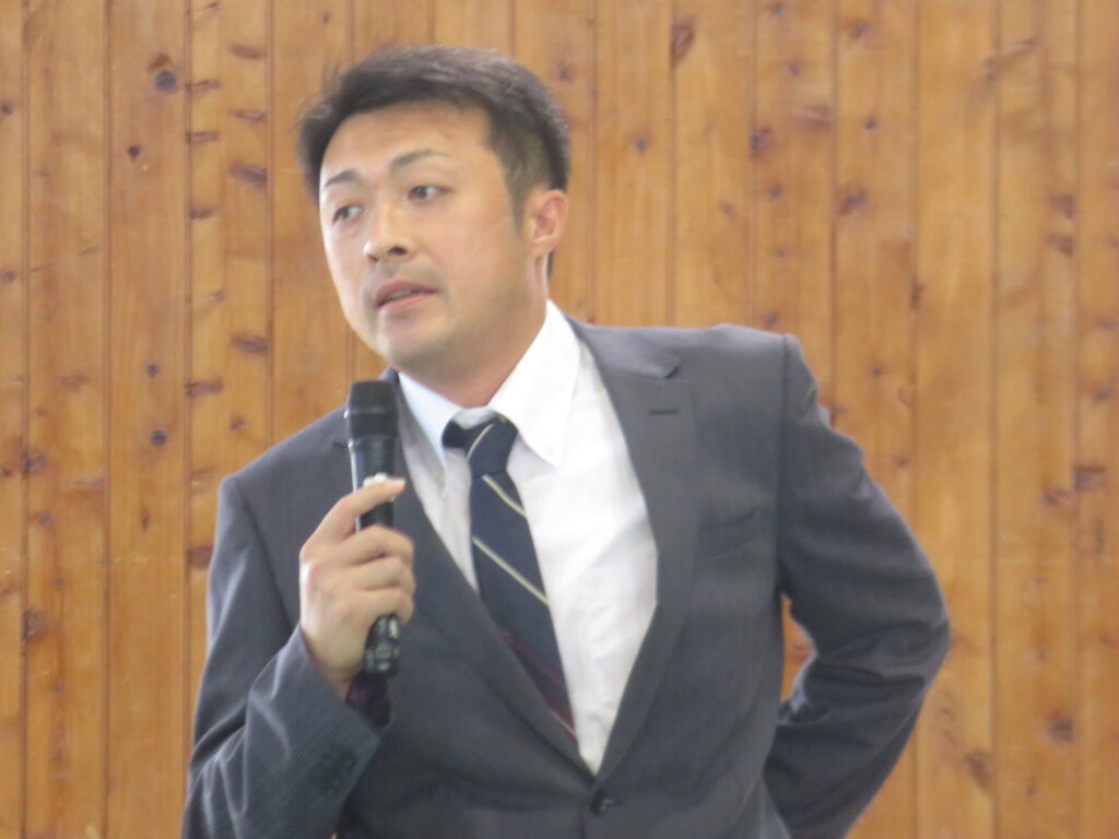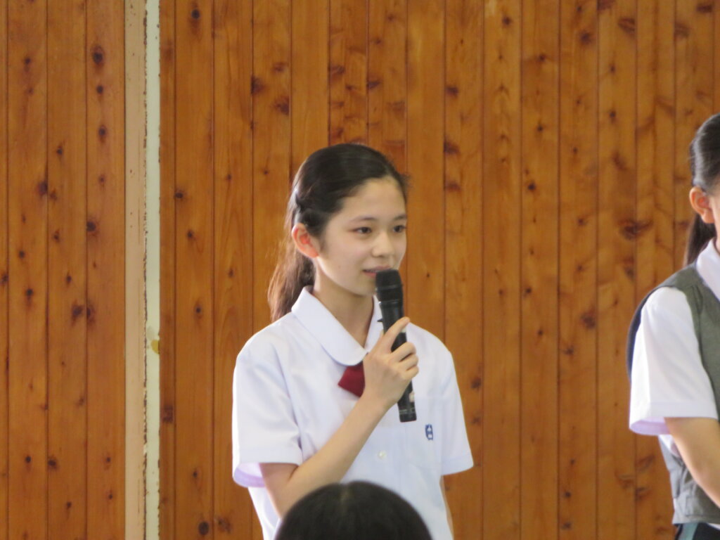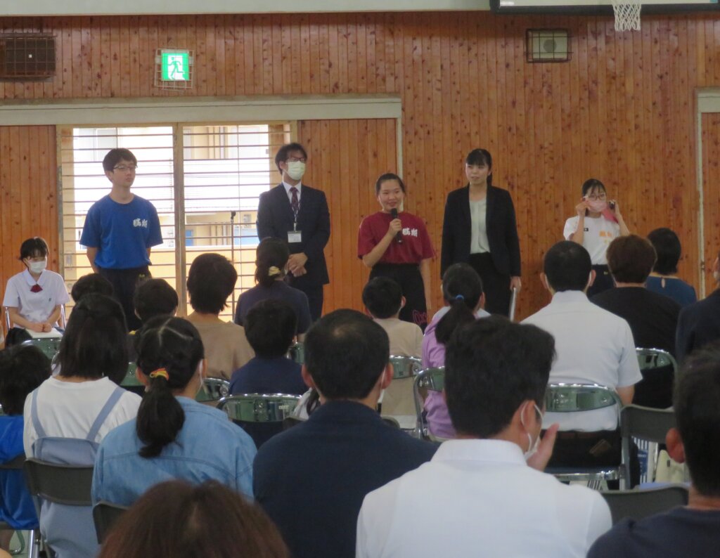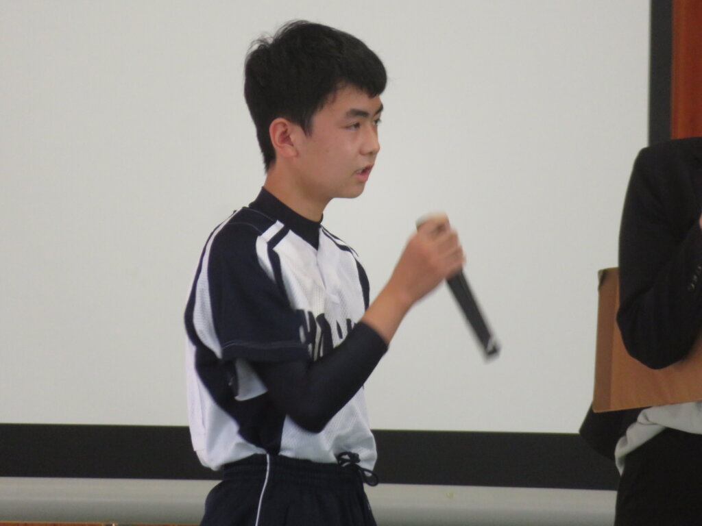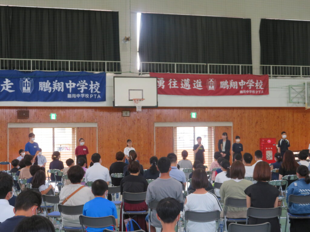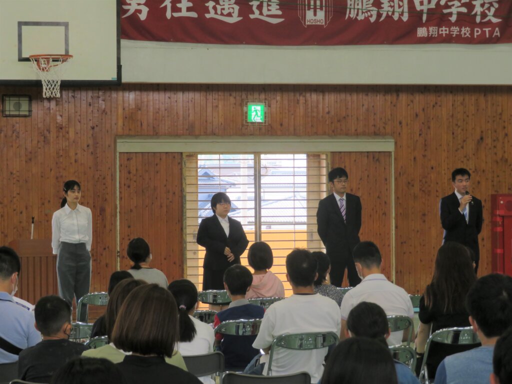 本日は、学校説明会と公開授業の2部構成。1部目は、川﨑基宏校長先生が挨拶を行った後、部活動紹介、ALT・HOSHOサポーターの紹介を行い、10月10日(日)に行う「特待生チャレンジテスト」の出題方針説明と本年度入試概要説明を実施しました。