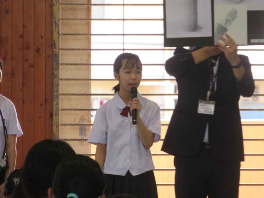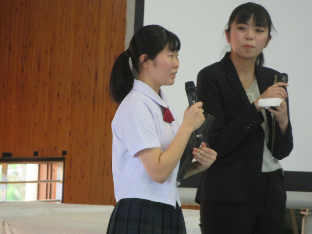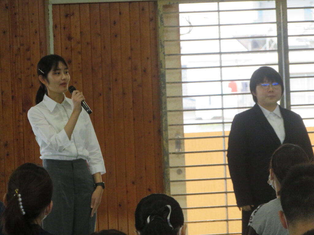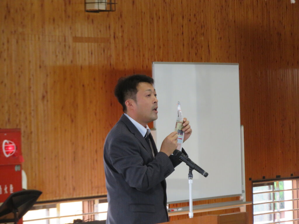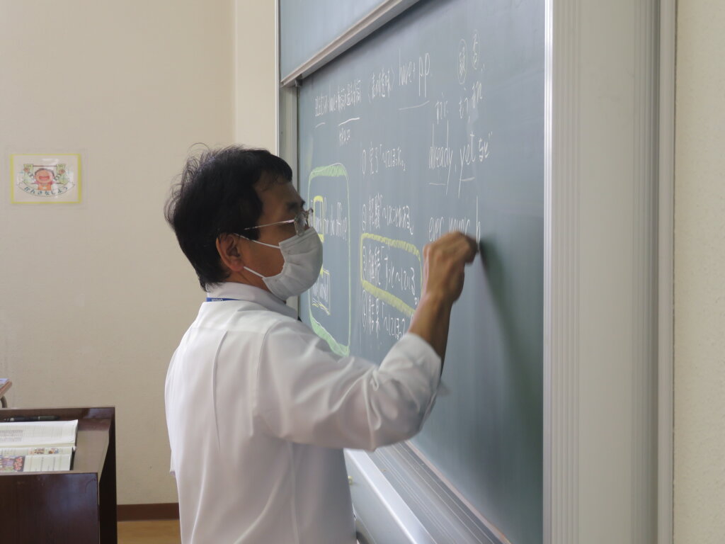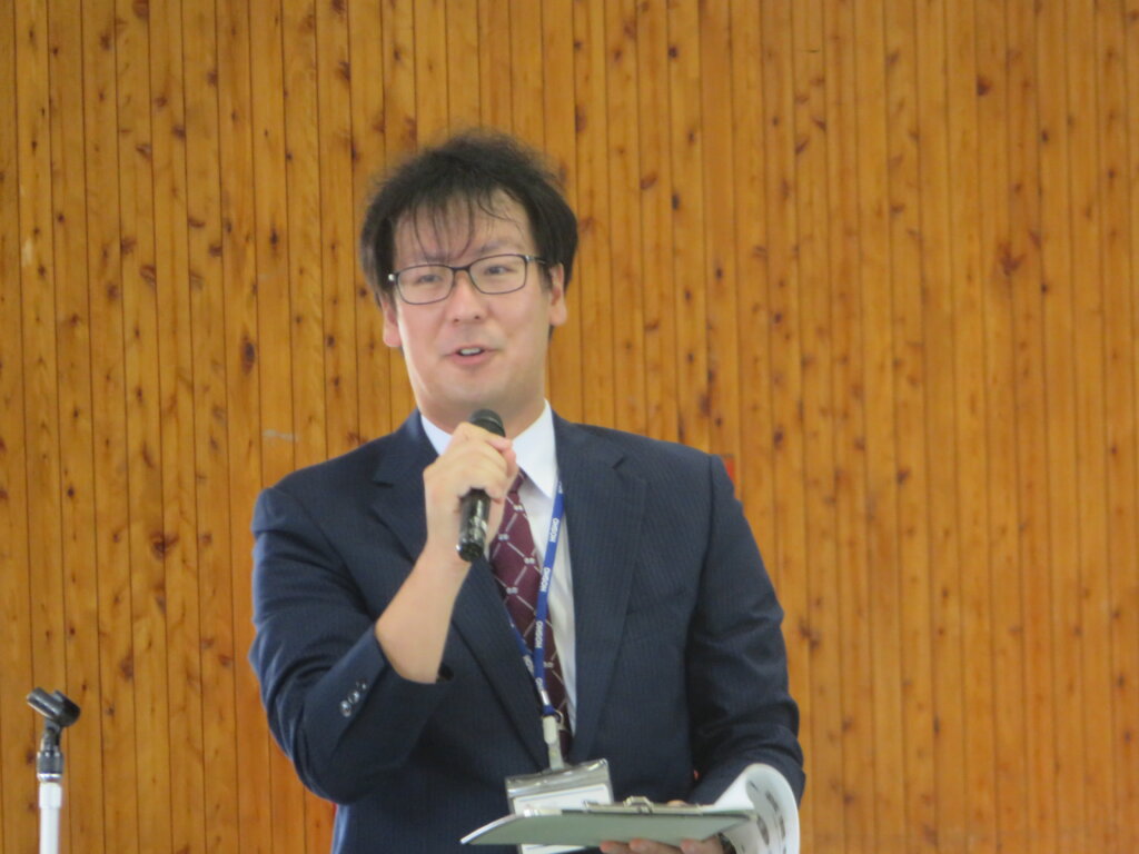 本日は、学校説明会と公開授業の2部構成。1部目は、川﨑基宏校長先生が挨拶を行った後、部活動紹介、ALT・HOSHOサポーターの紹介を行い、10月10日(日)に行う「特待生チャレンジテスト」の出題方針説明と本年度入試概要説明を実施しました。