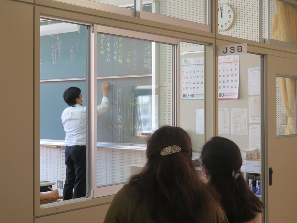説明会後は、2部目となる公開授業見学です。中学校棟で展開されている授業風景を自由に参観していただきました。