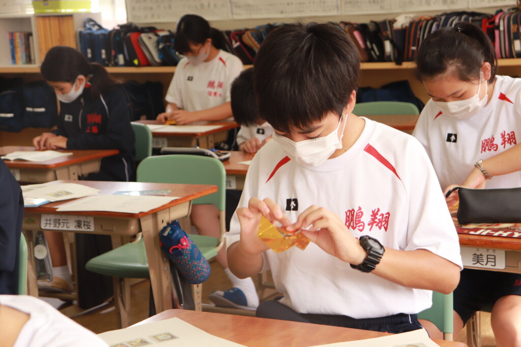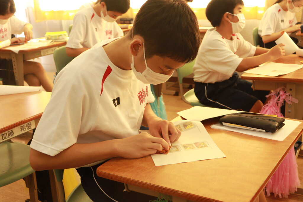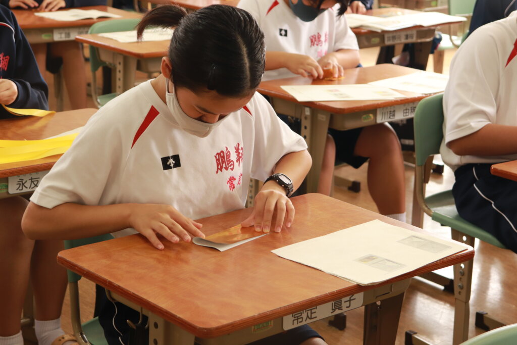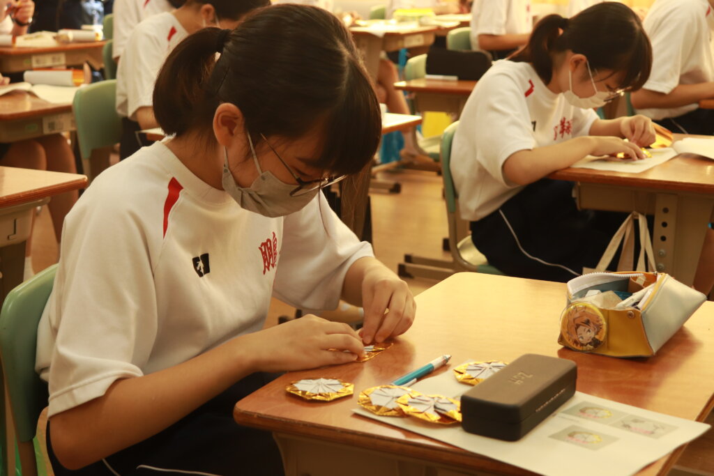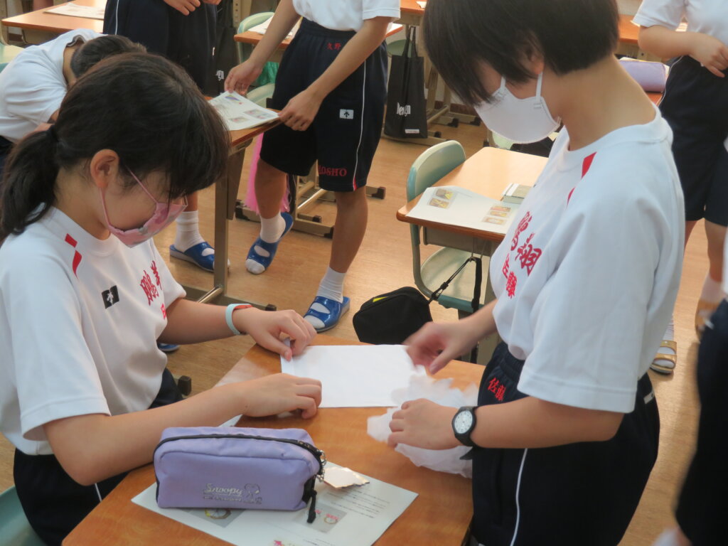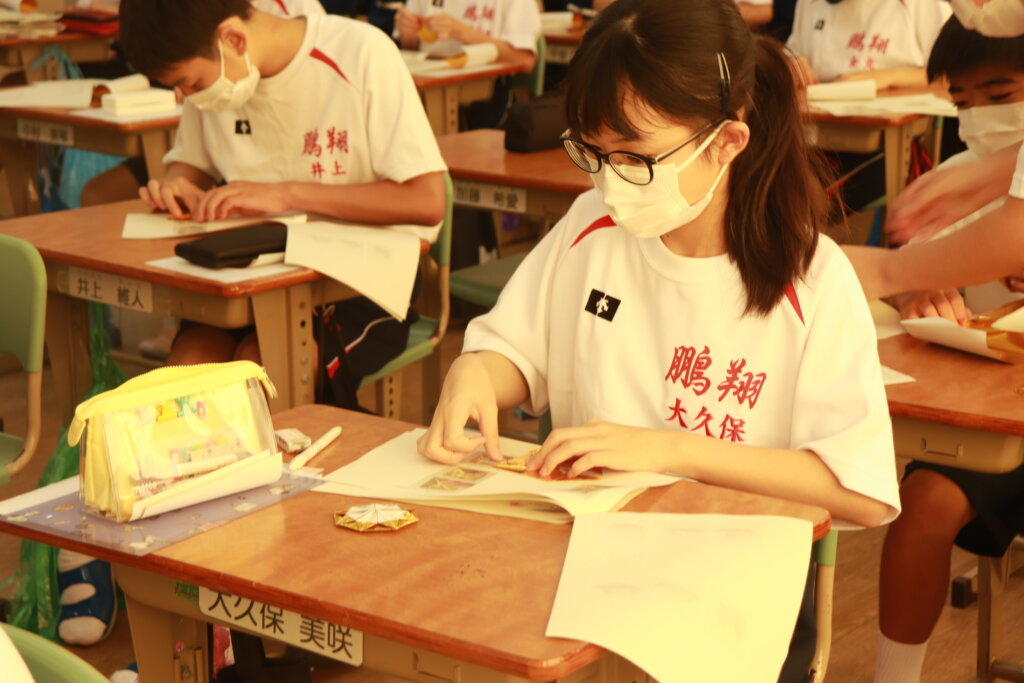 1年生は、毎年かわいいダンスと徒走を披露してくれる幼稚園生へ渡すメダル作りをしました。