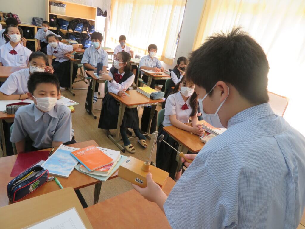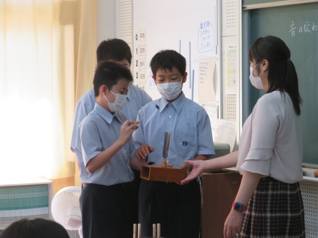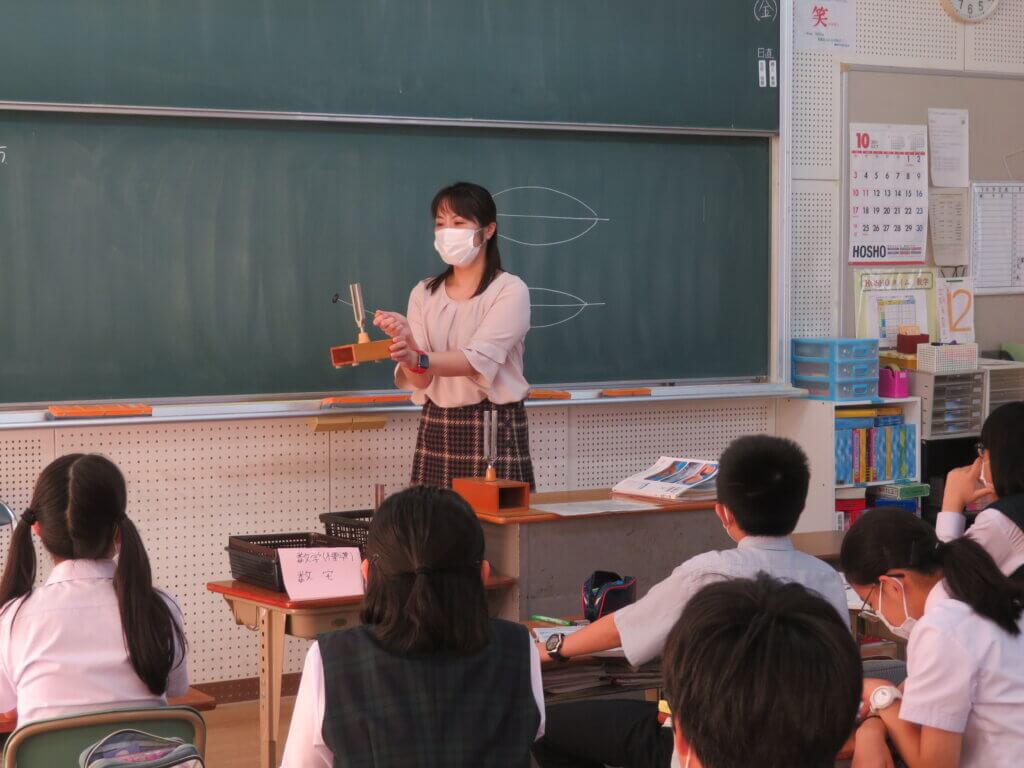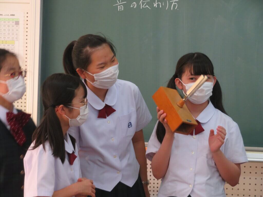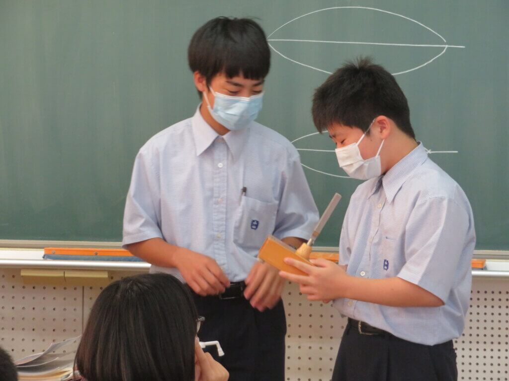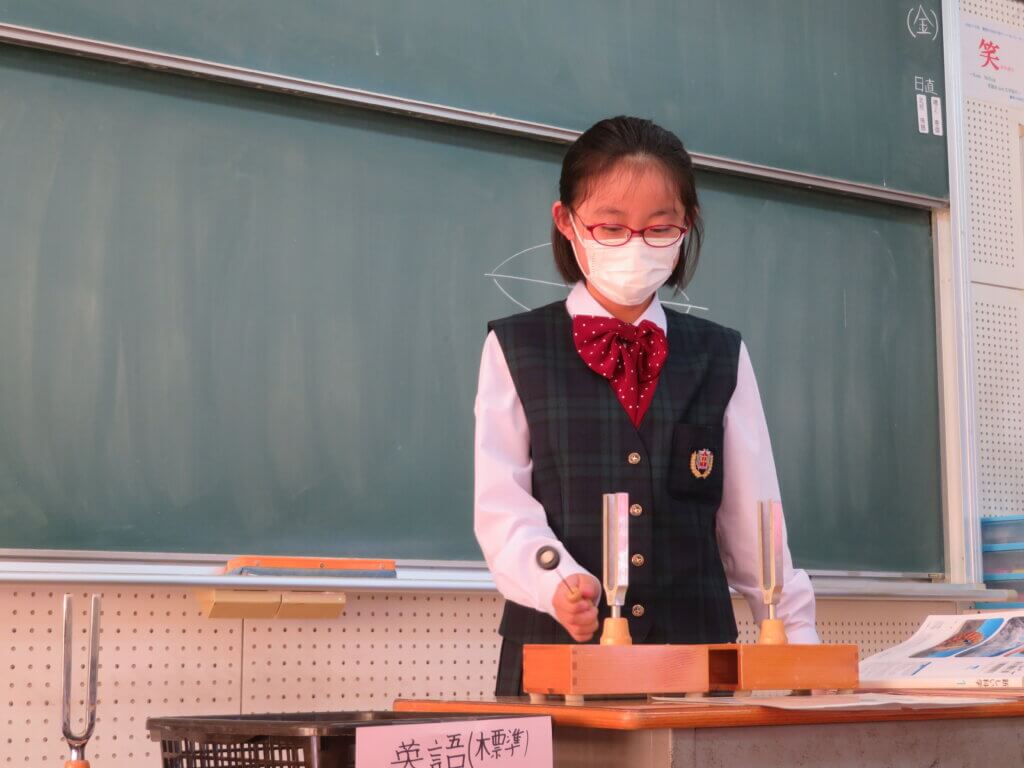 本日、J1-A理科の授業では、音の伝わり方について学習しました。 波江野先生より説明を受けた後、実際におんさを使って音を鳴らし、伝わり方聞こえ方を体験しました。