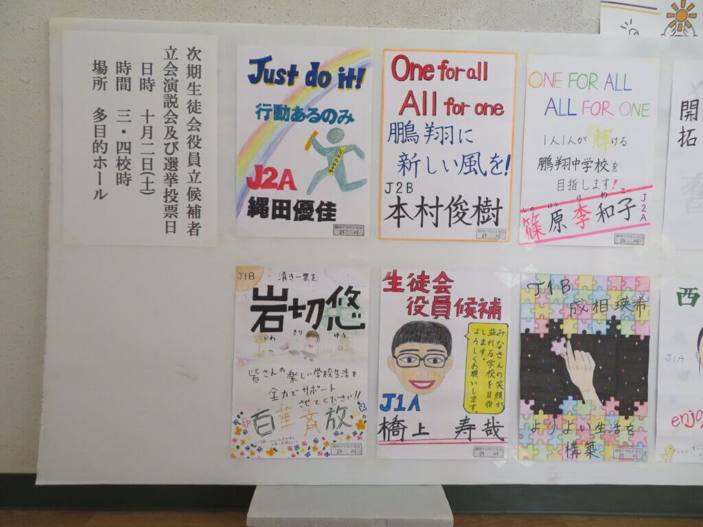 明日、次期生徒会役員立候補者立会演説会及び選挙を行います。立候補者が作成したポスターです。明日どんな演説が聞けるのか楽しみです!
