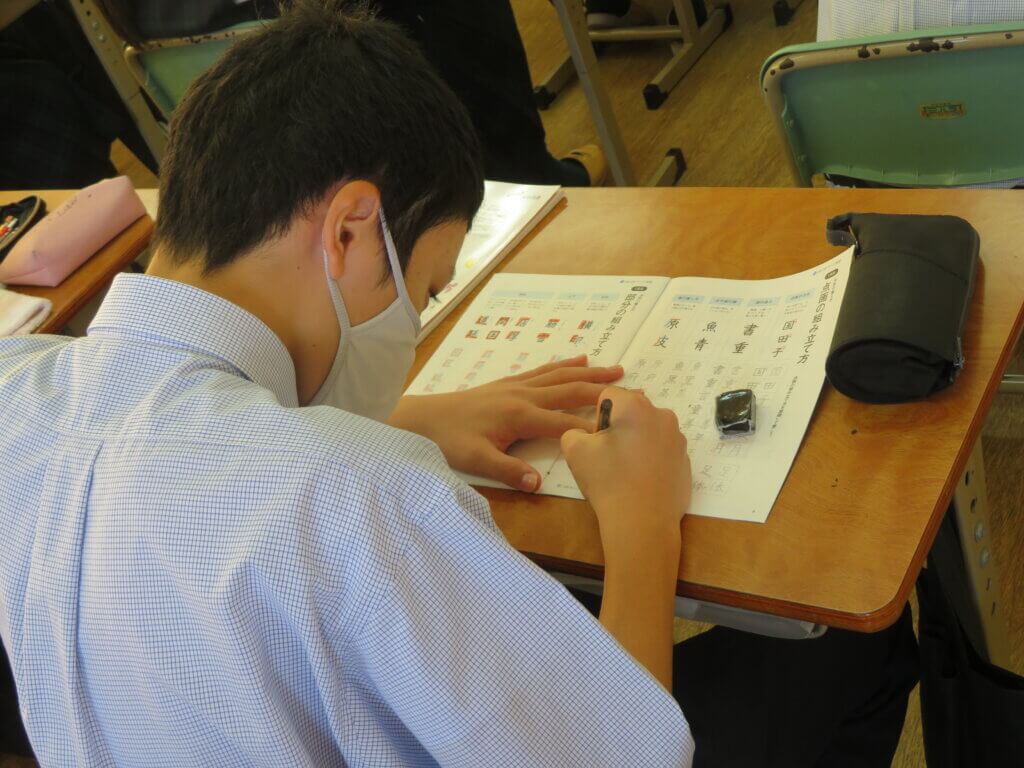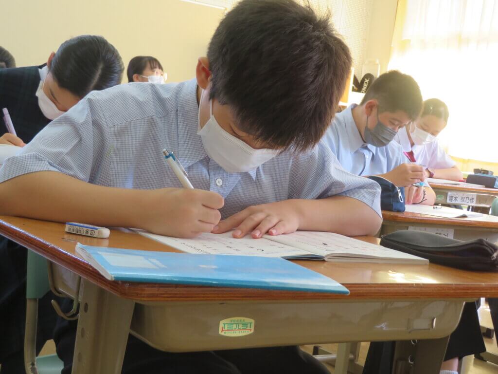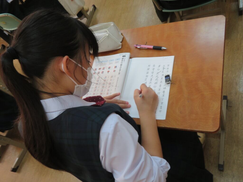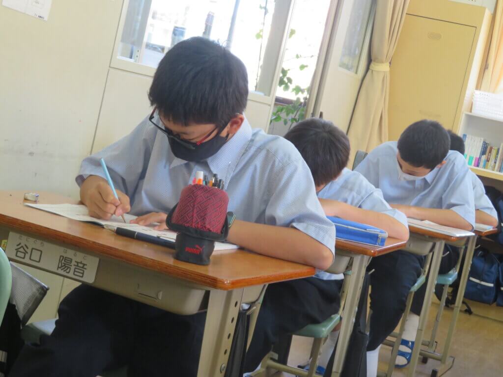 本日は、授業の様子を写真にて紹介します。1・2限目、J1生は硬筆をしていました。毛筆同様、正しい姿勢を意識して取り組んでいました。 明日から秋季中体連が行われます。中体連に参加する部活動生のみなさん、全力で頑張ってきてください!!応援しています!