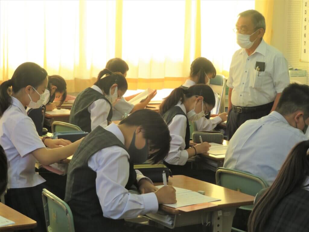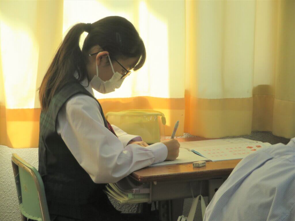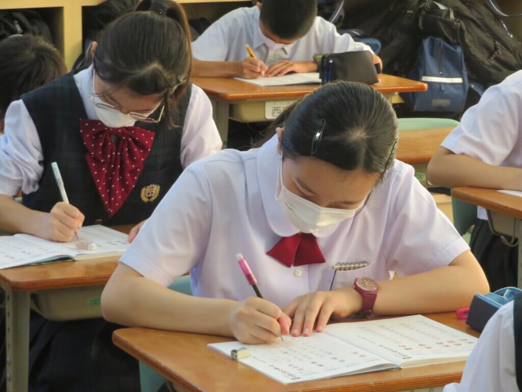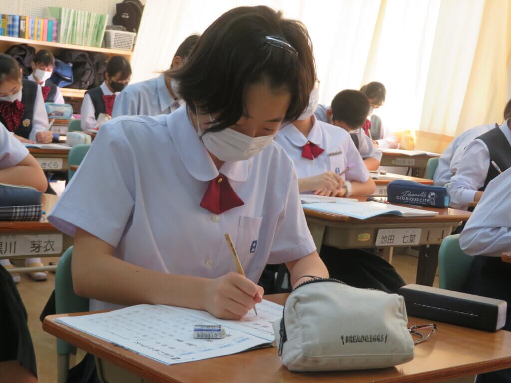 本日は、授業の様子を写真にて紹介します。1・2限目、J1生は硬筆をしていました。毛筆同様、正しい姿勢を意識して取り組んでいました。 明日から秋季中体連が行われます。中体連に参加する部活動生のみなさん、全力で頑張ってきてください!!応援しています!