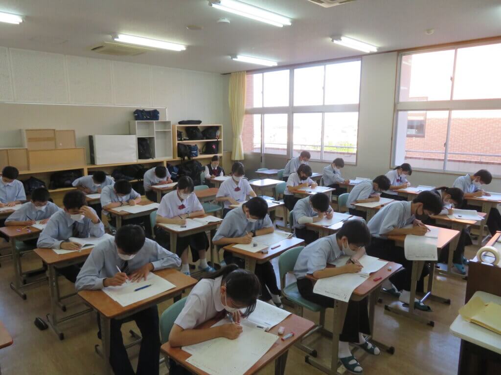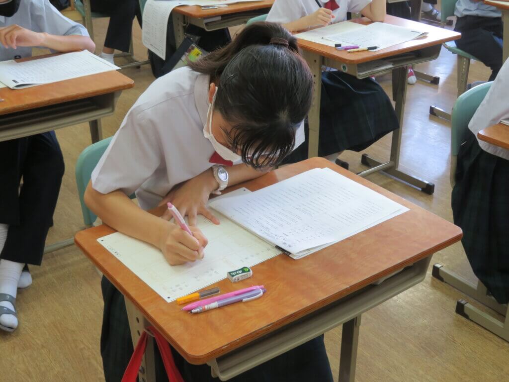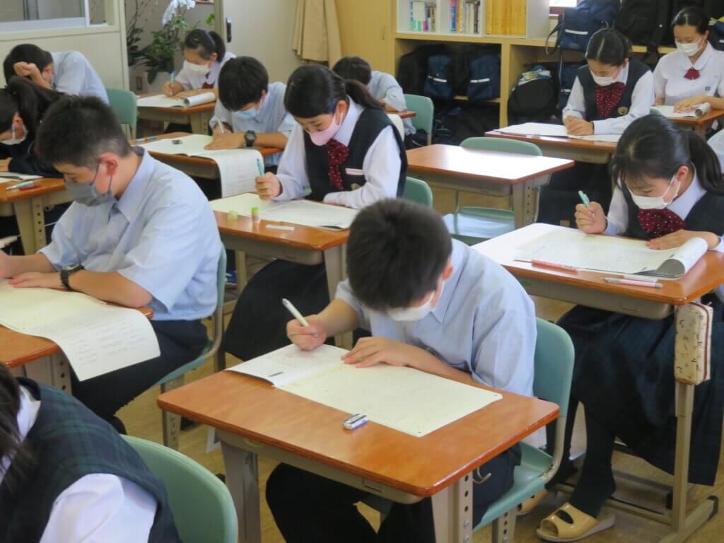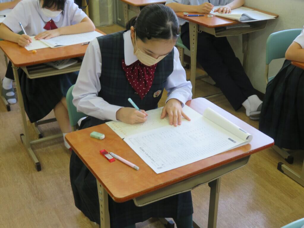 本日、第2回日本漢字能力検定試験を全員受検しました。注意事項を聞いたのち、開始の合図と同時に一斉に筆が走ります。 国語の授業や休み時間、放課後の時間を利用して、全員が合格を目指し勉強していました。結果が楽しみですね!