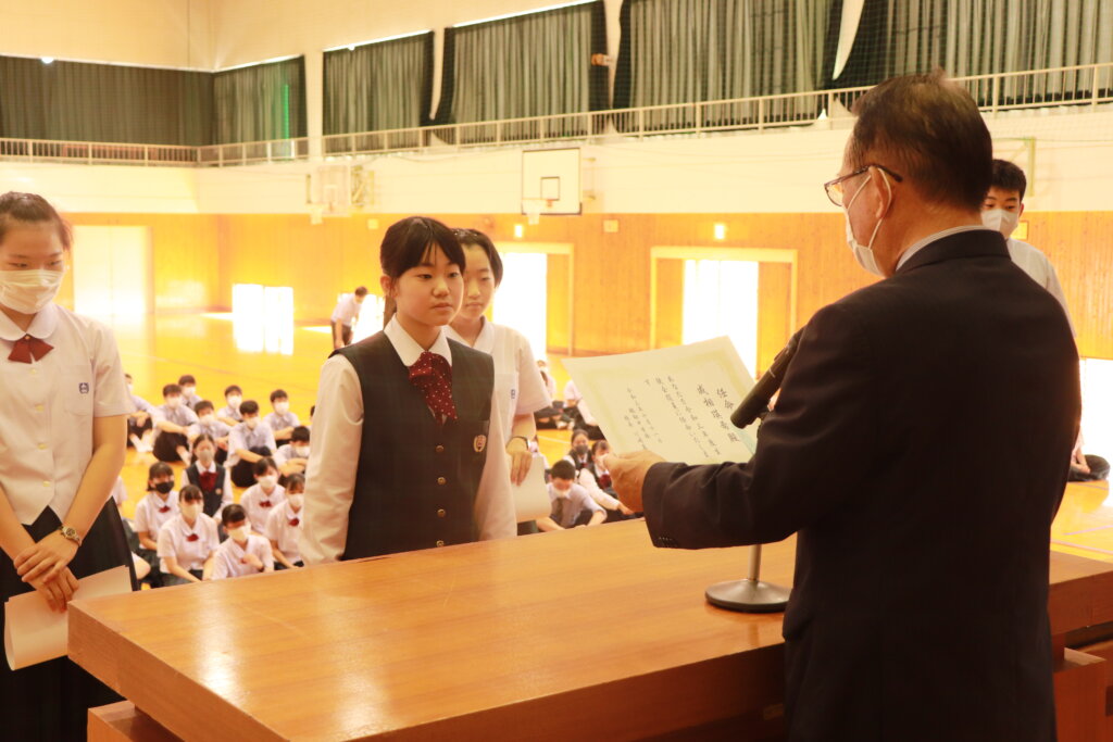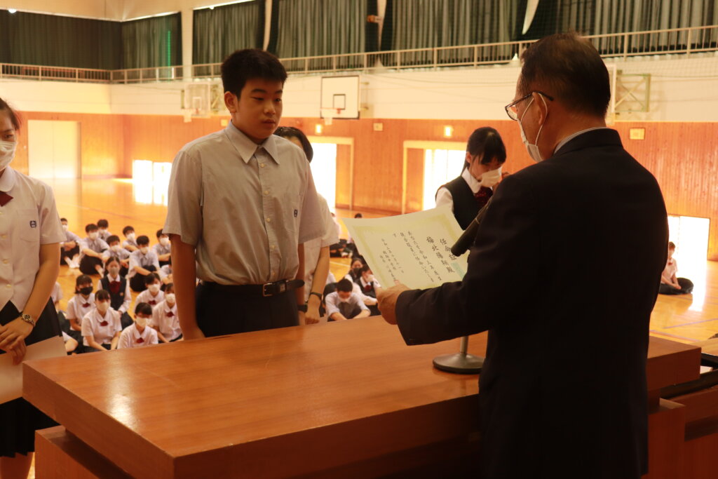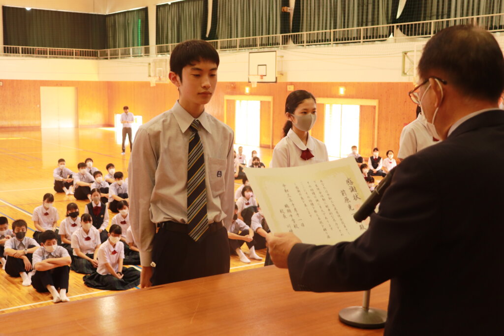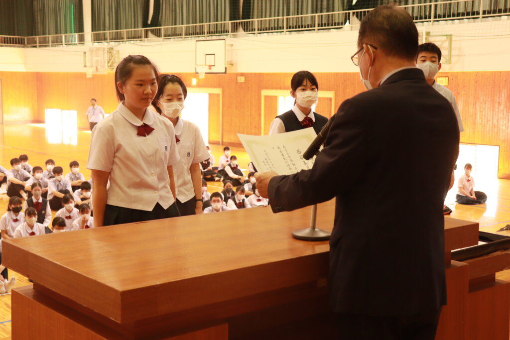 1年間学校のために頑張ってくれた旧役員への感謝状の授与が行われました。旧役員のみなさん本当にありがとうございました。生徒会での経験を活かし、今後の学校生活も頑張ってください。