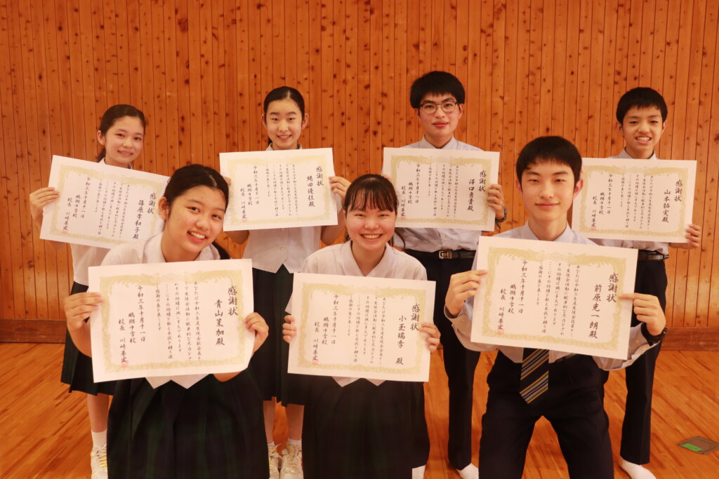 新生徒会役員のみなさん!これまで先輩方が築いてきた伝統を大切にしつつ、新しい鵬翔中学校を作ってください!!