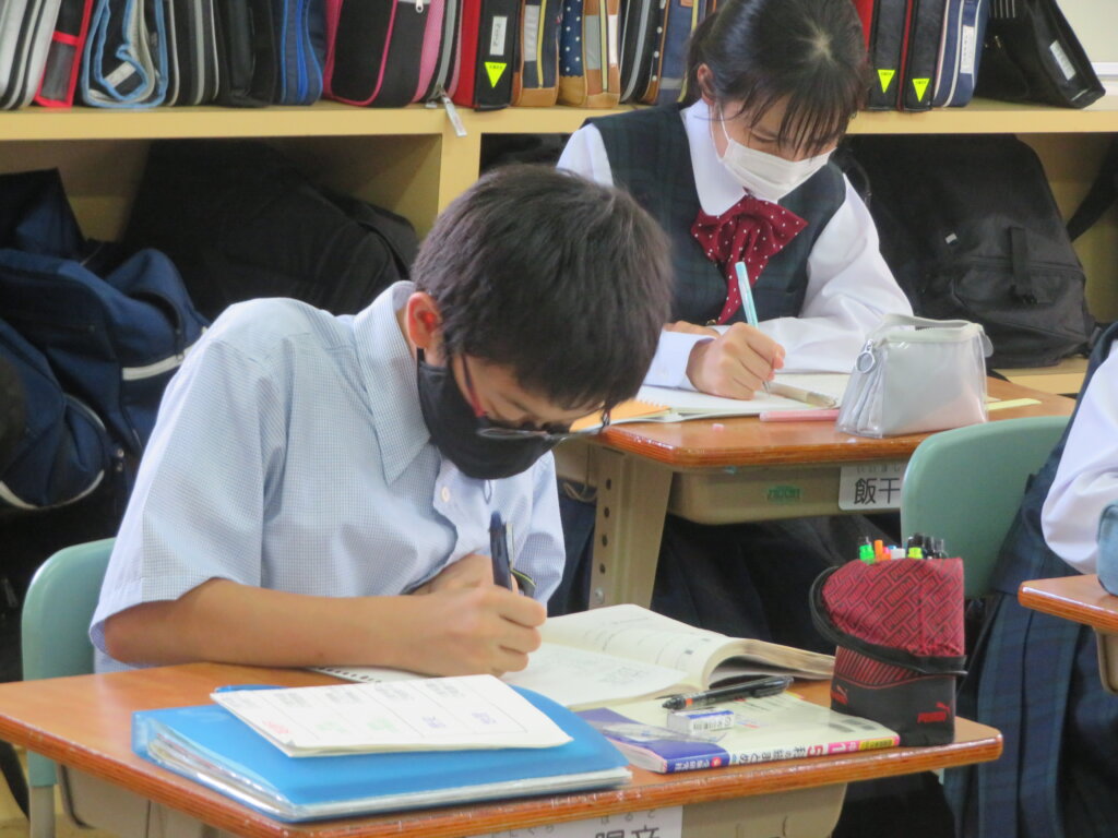 午後は、自学自習の時間です。明日のテストに向け、机いっぱいに教材をひろげ黙々と学習しています。