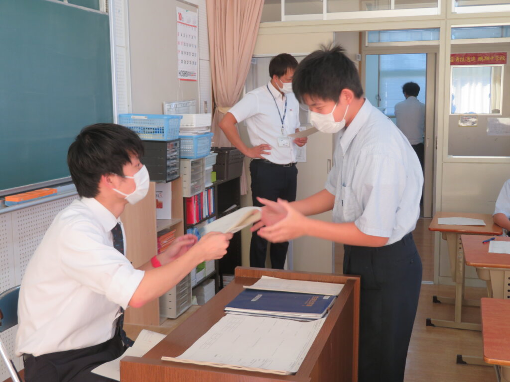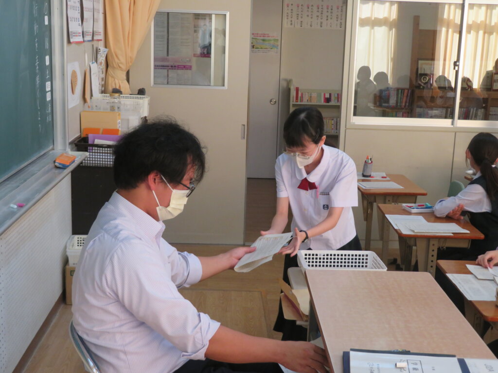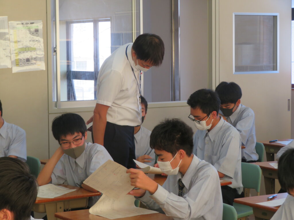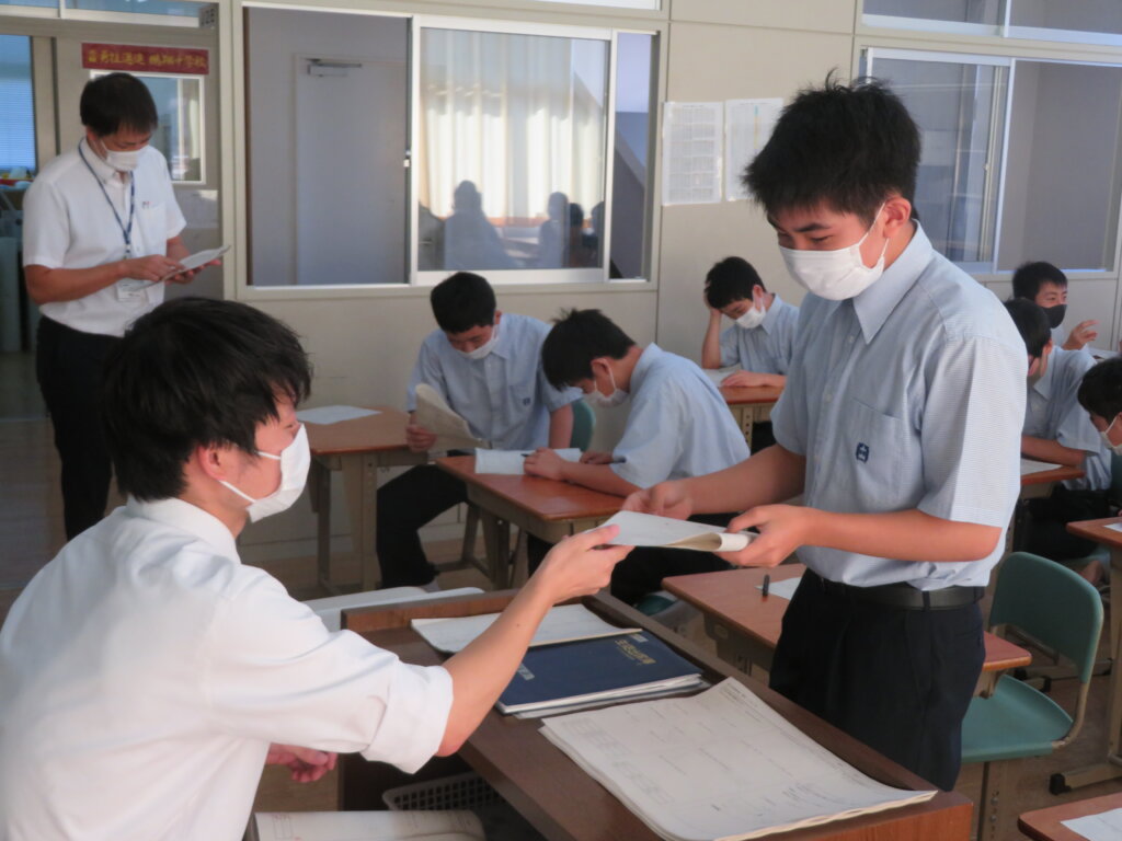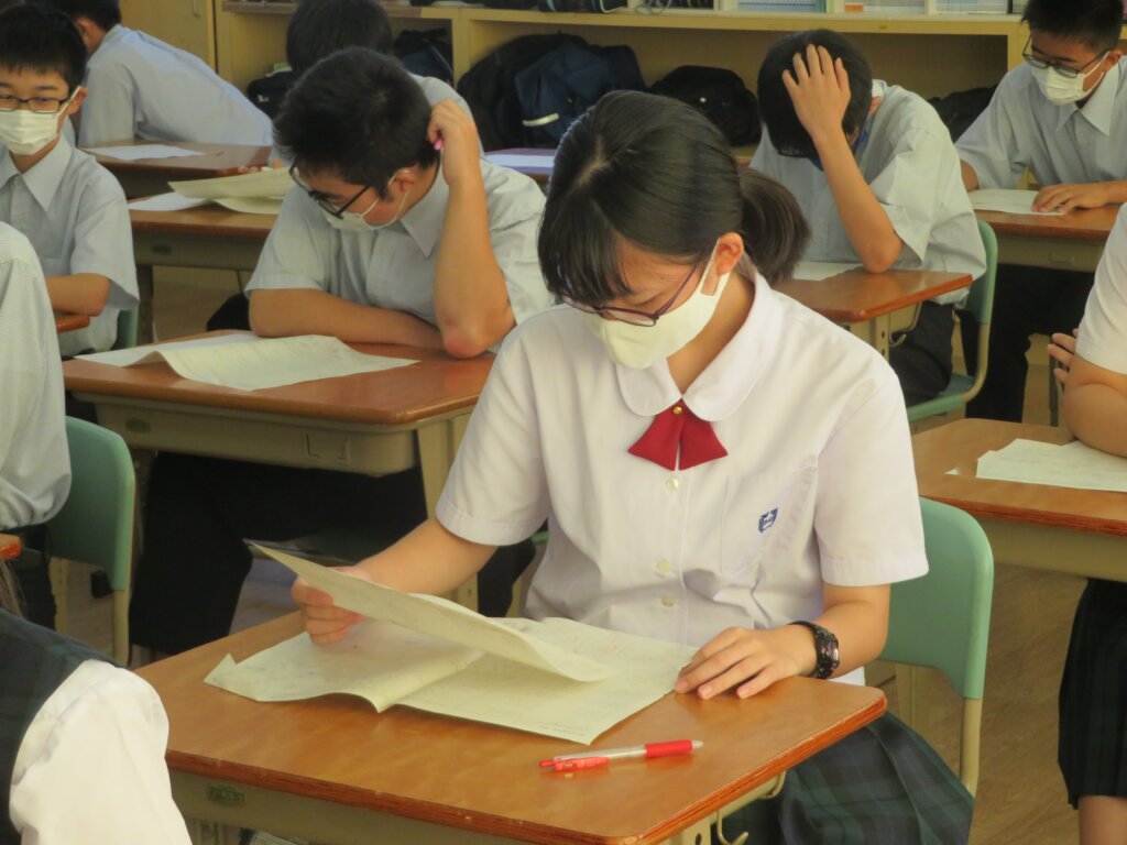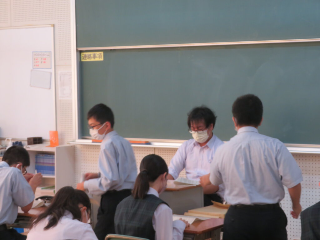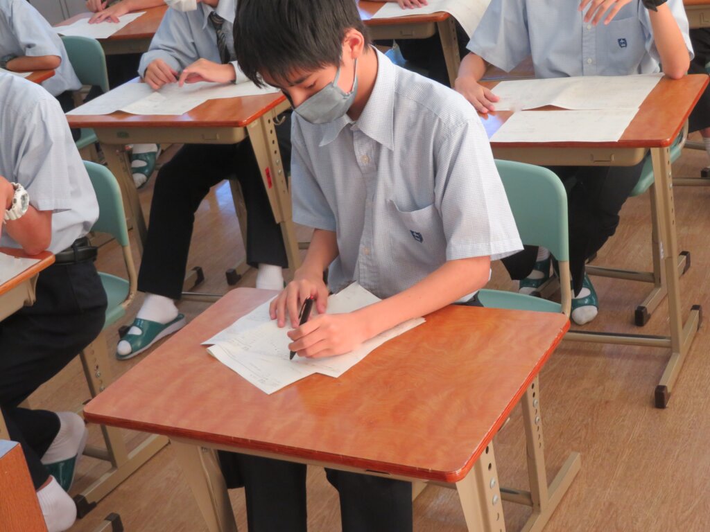 本日、さっそくテスト返却が行われていました。 解説を聞き、次は同じ間違いをしなしように解き直しをしましょう。 今週はテストがあり、疲れがたまっている生徒もいると思います。しっかり休養・リフレッシュをし、来週も元気に登校してきてください!