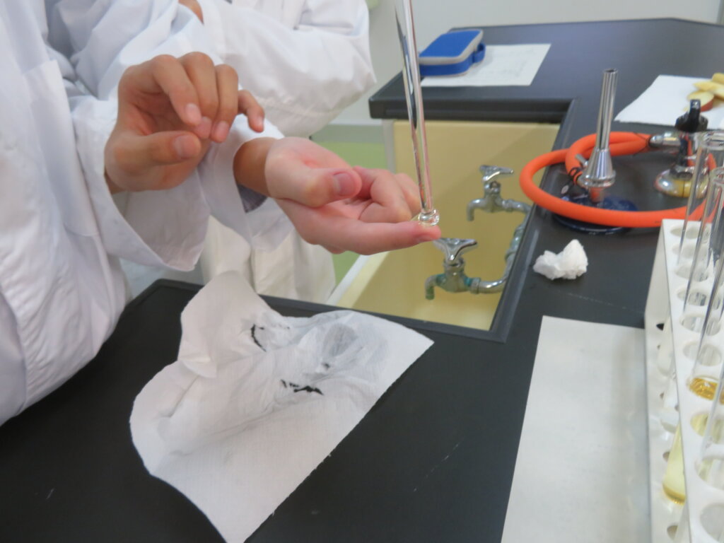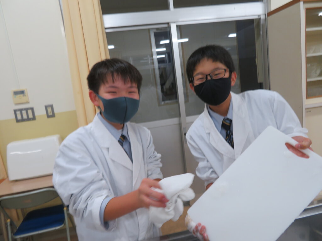 実験後は、片付けまできちんと行いました。今回も実験を通し、楽しく化学を学ぶことができました。次の実験も楽しみですね!