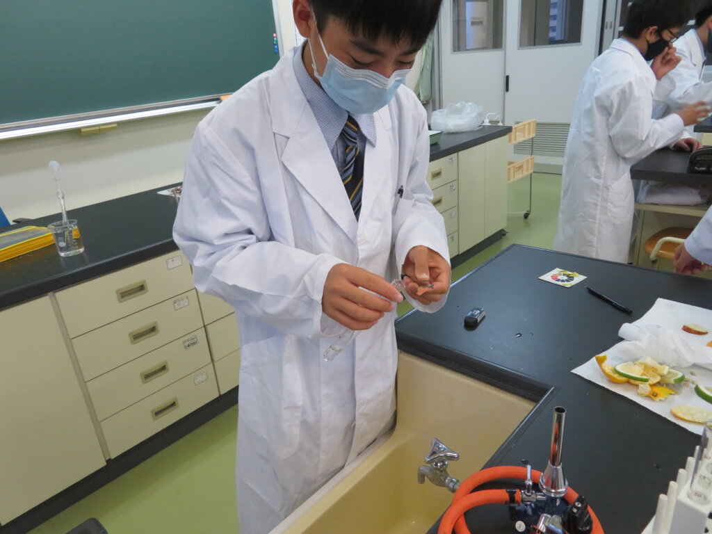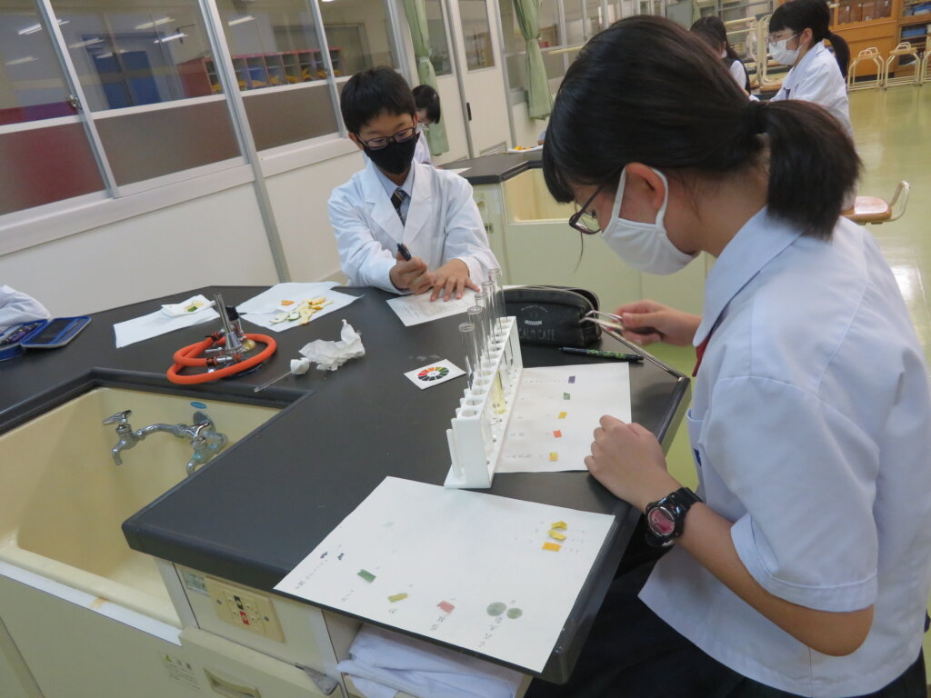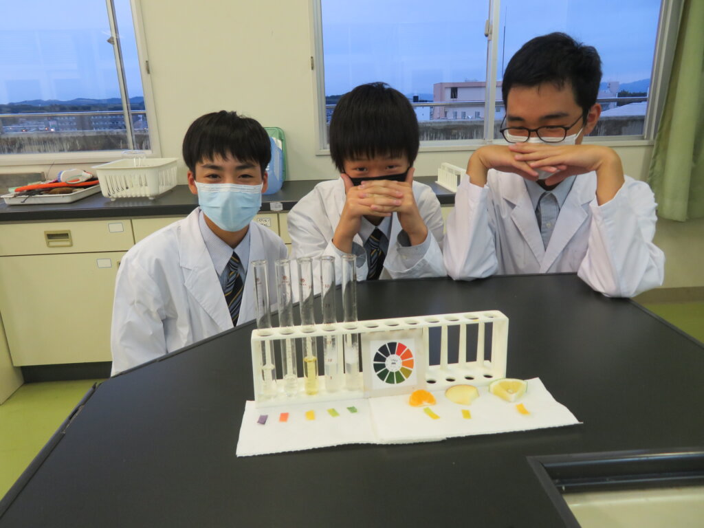 昨日サイエンス部は、酸性水溶液・アルカリ水溶液とフルーツのPH測定をしました。